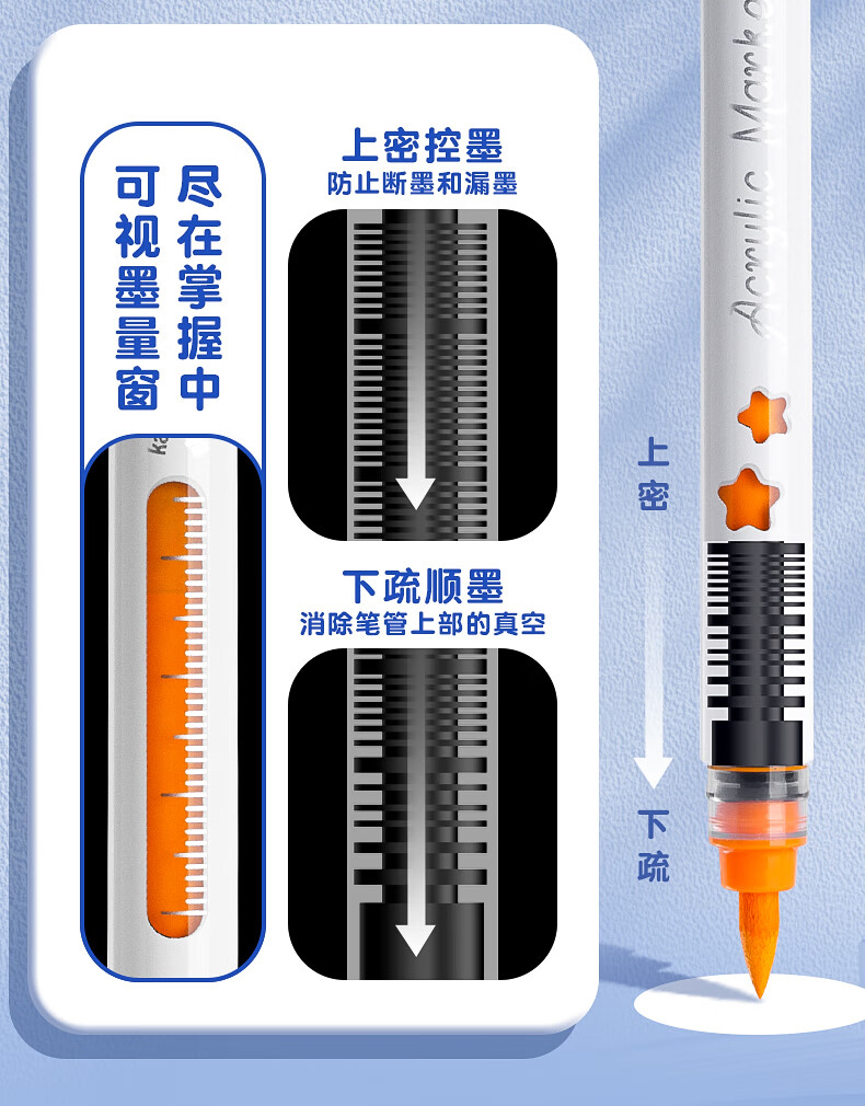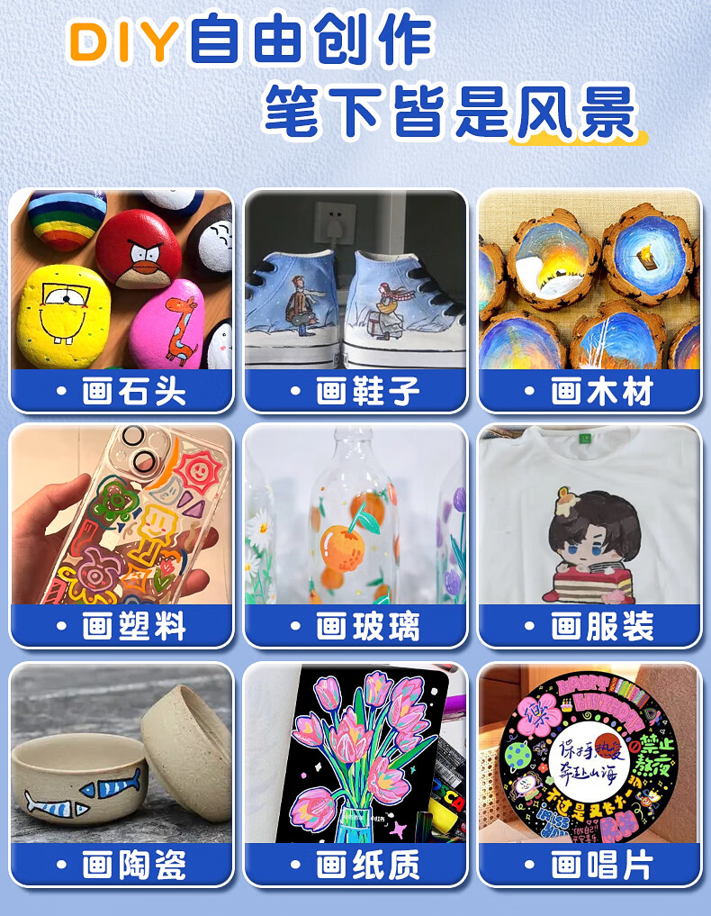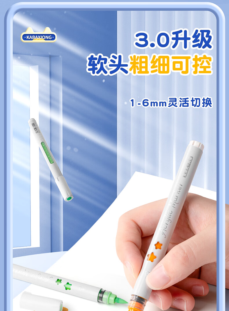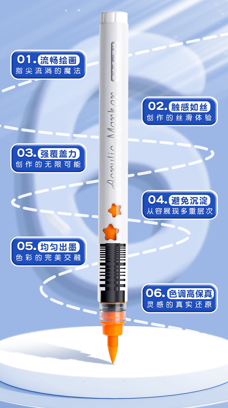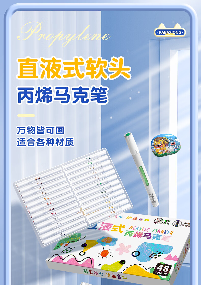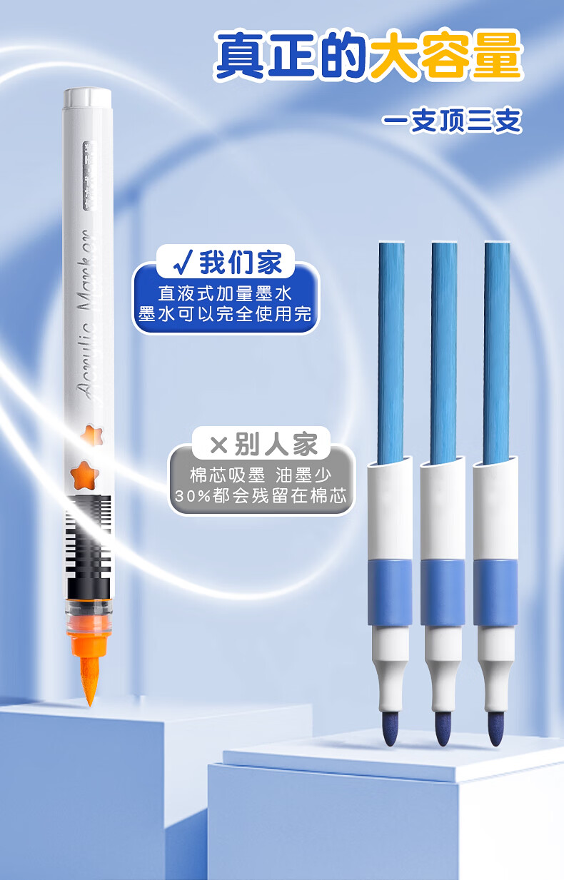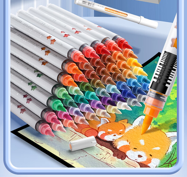 录学记24色直液式软头丙烯马克笔学生绘画美术生专用不透色可叠色儿童彩色笔芯笔六一儿童节礼物送男女孩