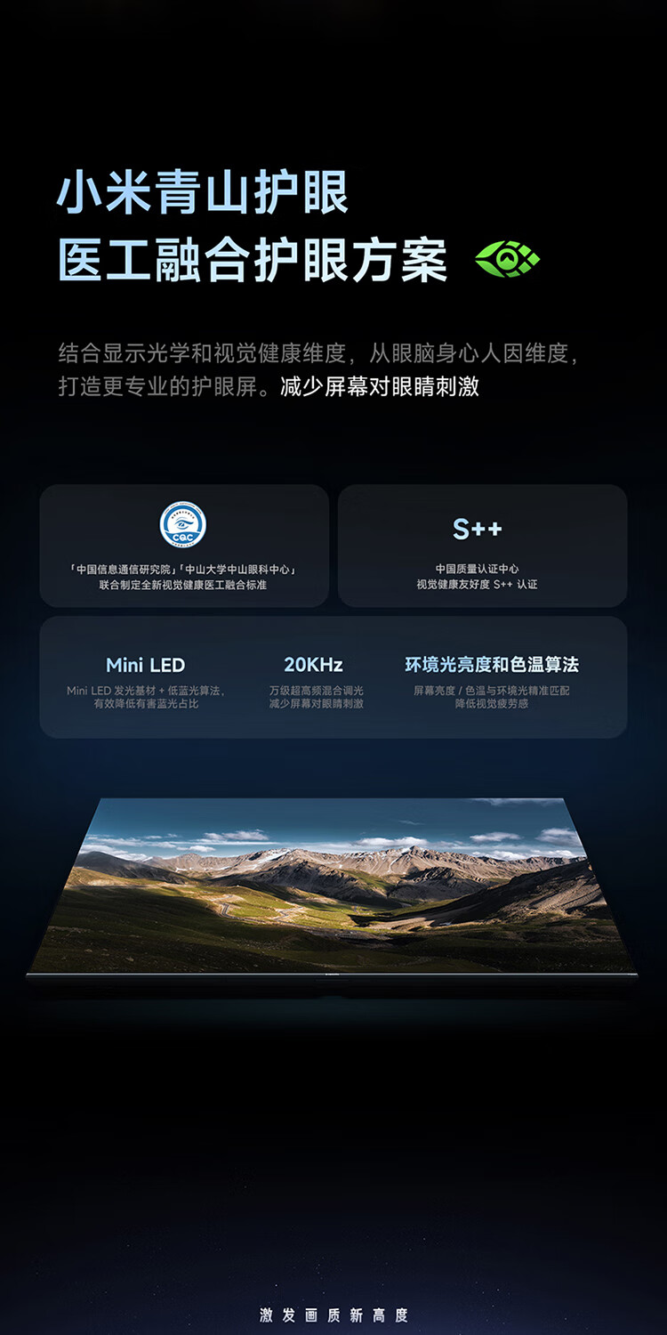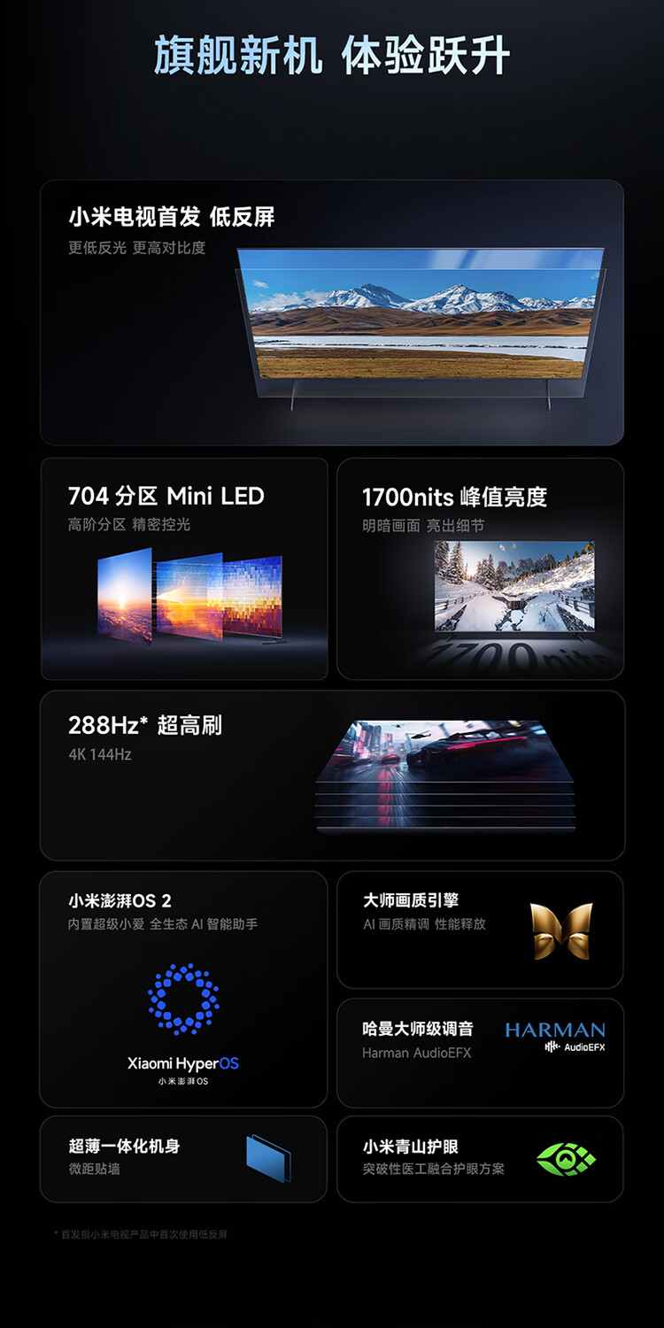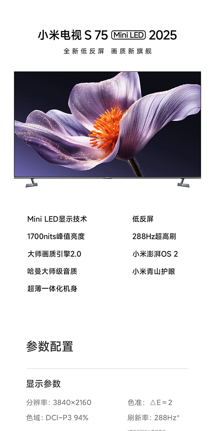 小米(MI)电视 S75 Mini LED 2025 75英寸 低反屏 704分区 1700nits288HZ 澎湃OS L75MB-S一级能效 国家补贴 75英寸