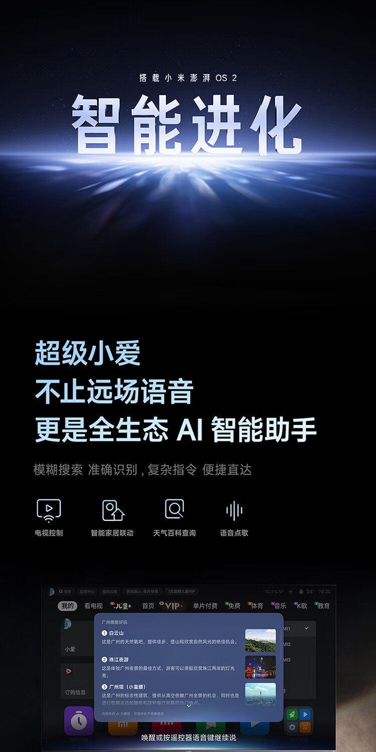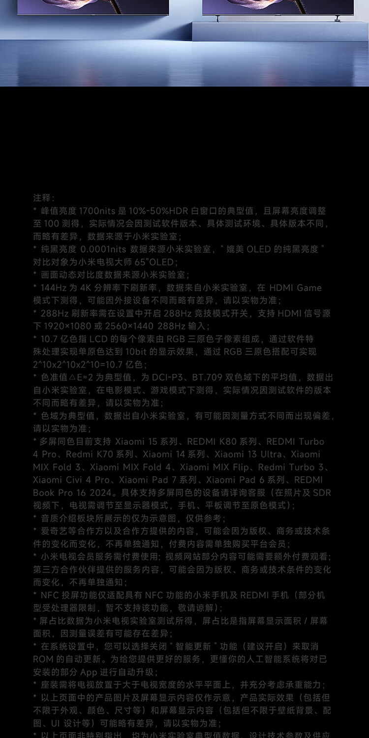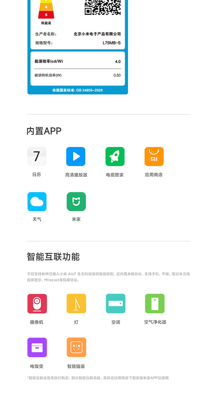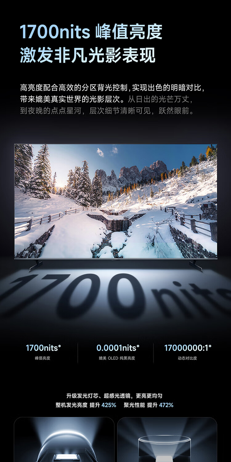 小米(MI)电视 S75 Mini LED 2025 75英寸 低反屏 704分区 1700nits288HZ 澎湃OS L75MB-S一级能效 国家补贴 75英寸