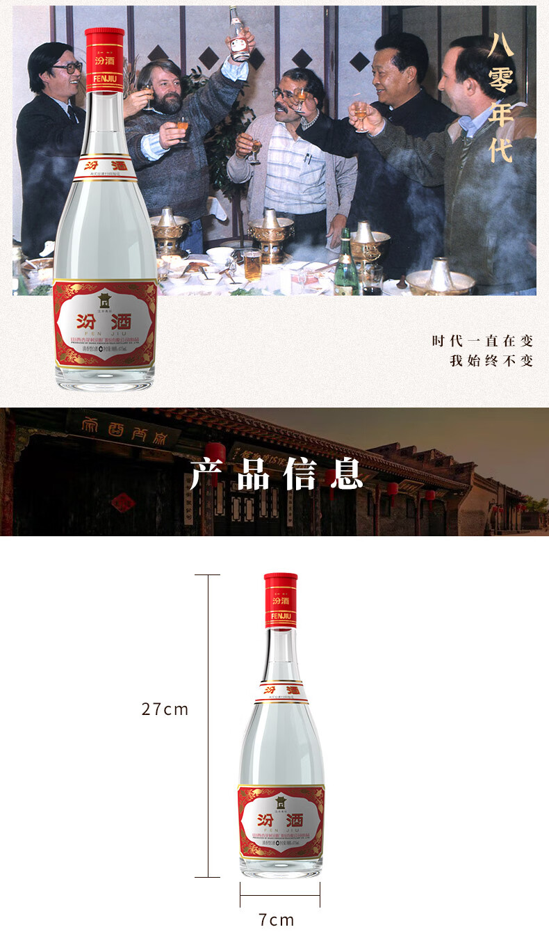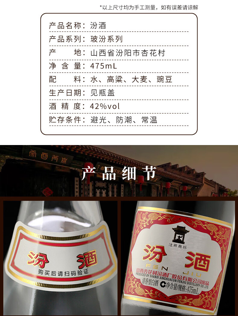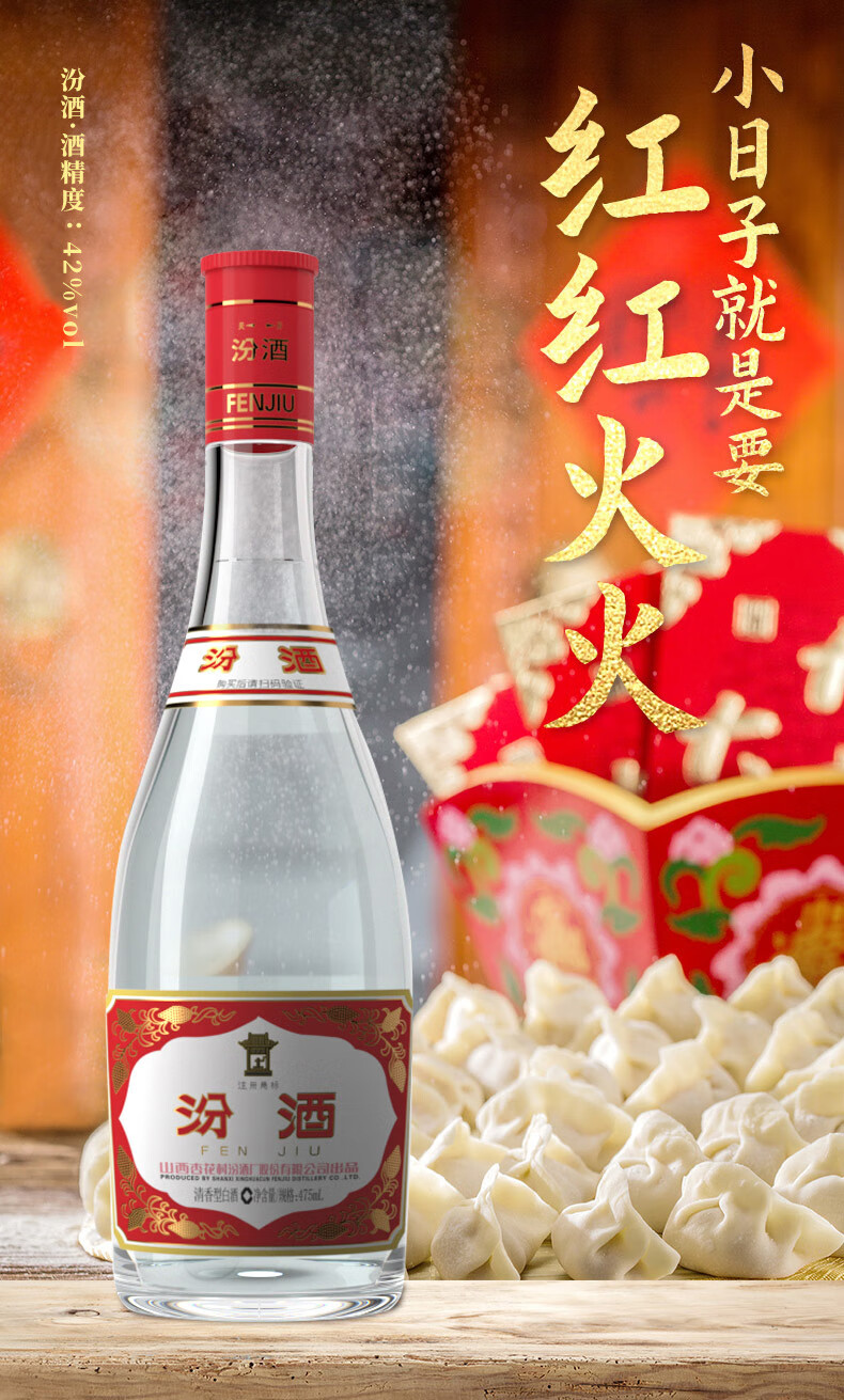 汾酒【厂方运营】山西杏花村 红盖玻汾42度475mL*6瓶装清香型白酒 42%vol 475mL 6瓶 六瓶装