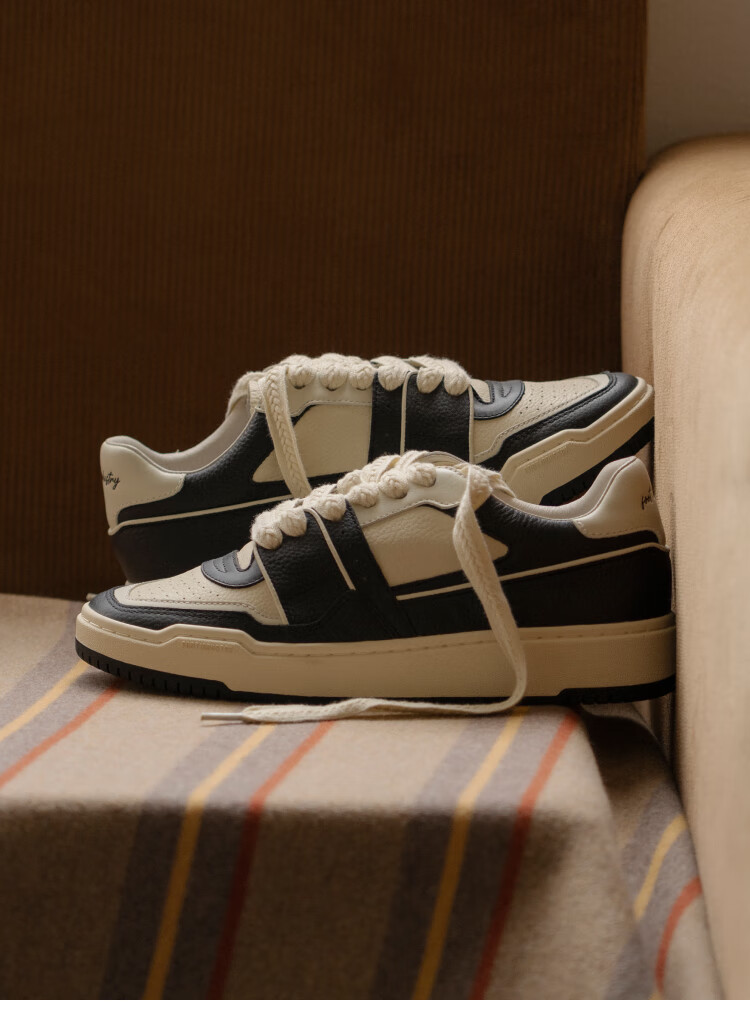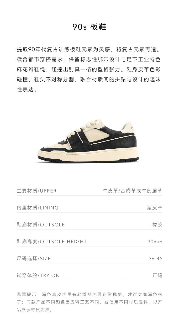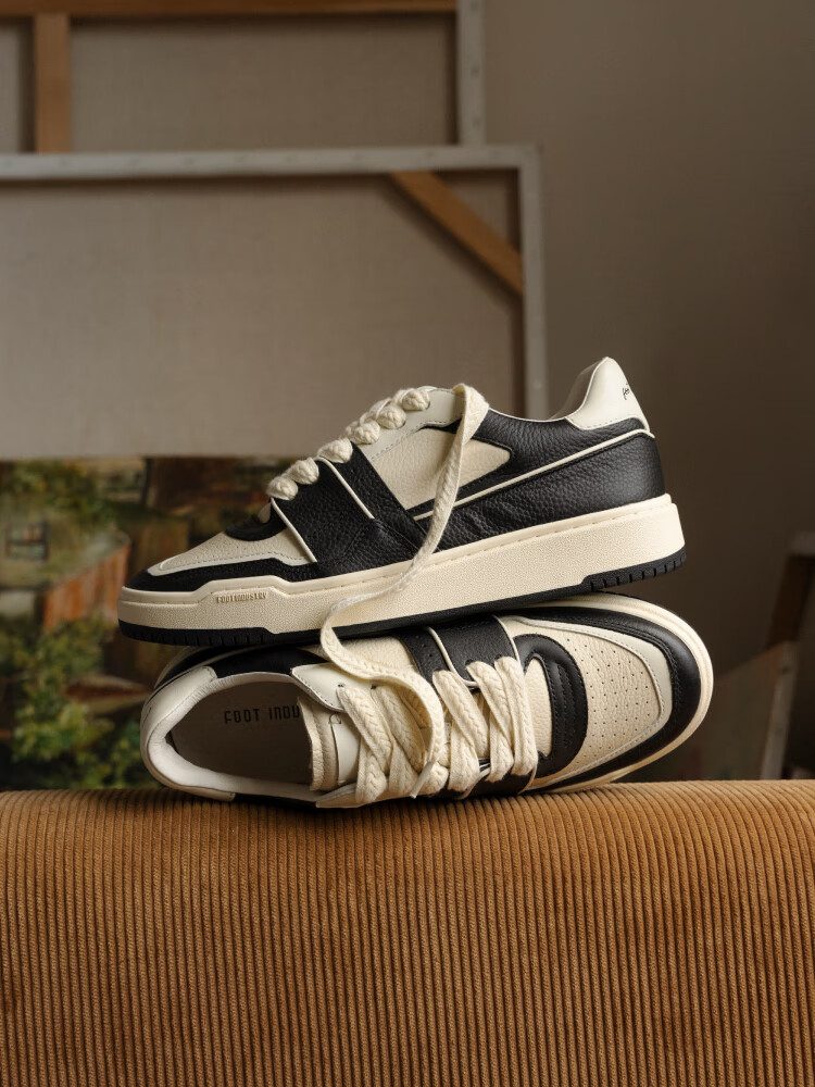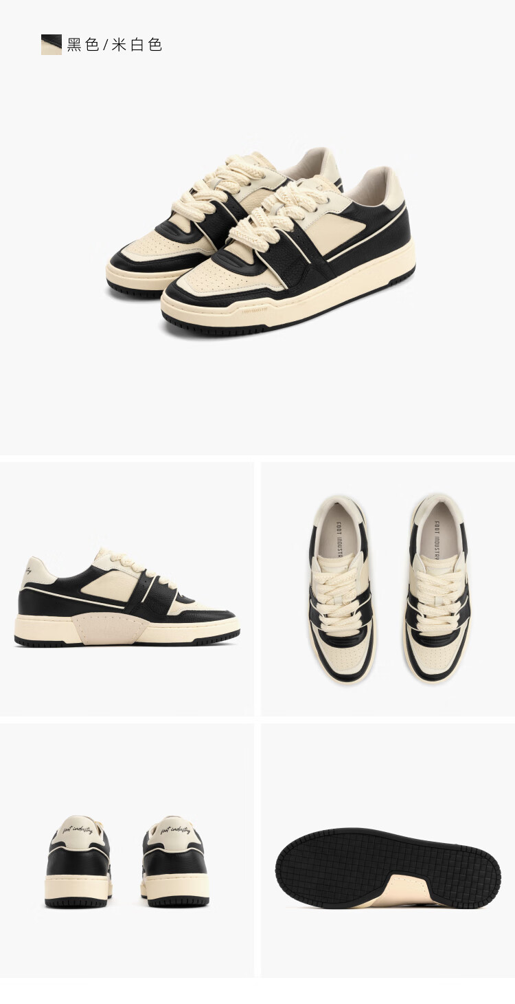 FOOT INDUSTRY 足下工业「品牌经典」90s滑板鞋运动休闲复古训练板鞋男女百搭 黑色/米白 42