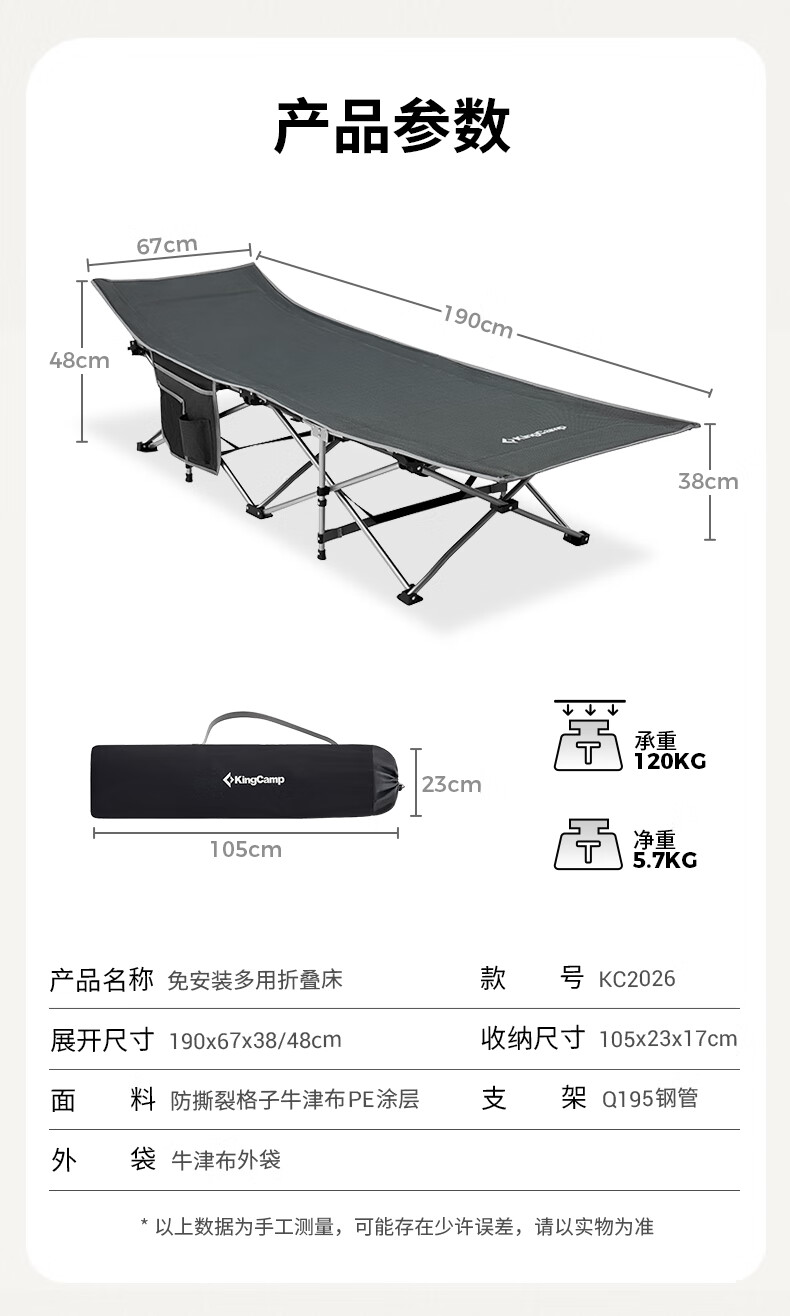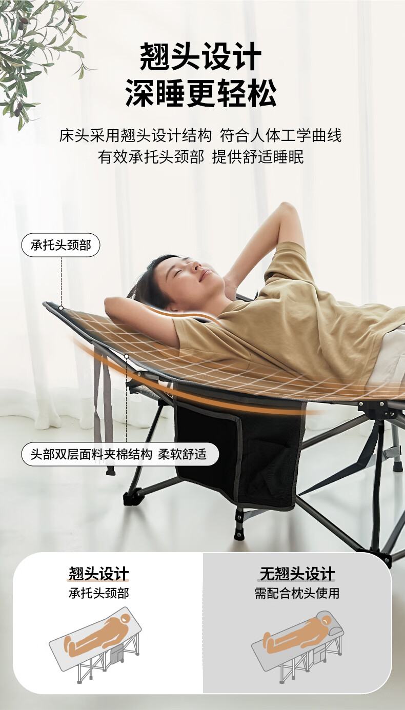 KingCamp折叠床单人午休床办公室行军床陪护简易床便携行军床多功能午睡床