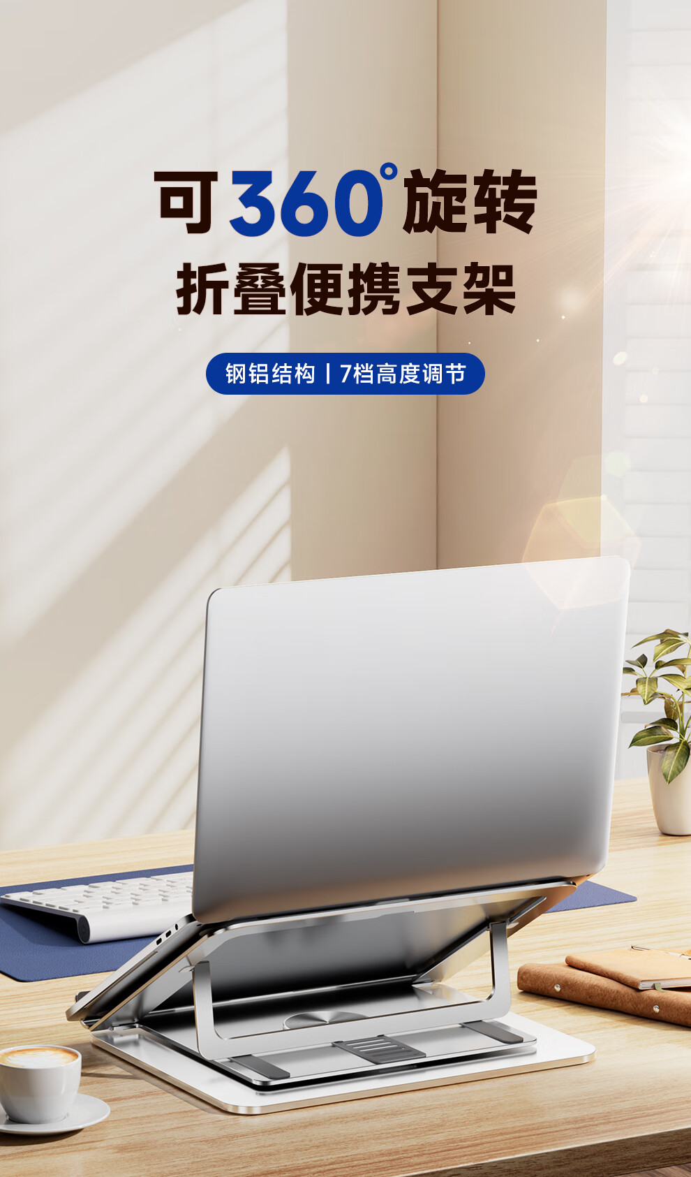 极川 360度旋转笔记本电脑支架散热架便携折叠桌面立式升降悬空增高架Apple苹果华为联想铝合金托架子