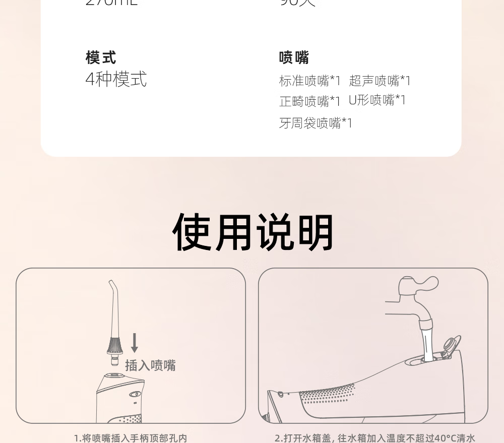 博皓(prooral)冲牙器/洗牙器/水牙线/洁牙器 立式设计 5025Plus原5002升级版象牙白【中秋送礼】