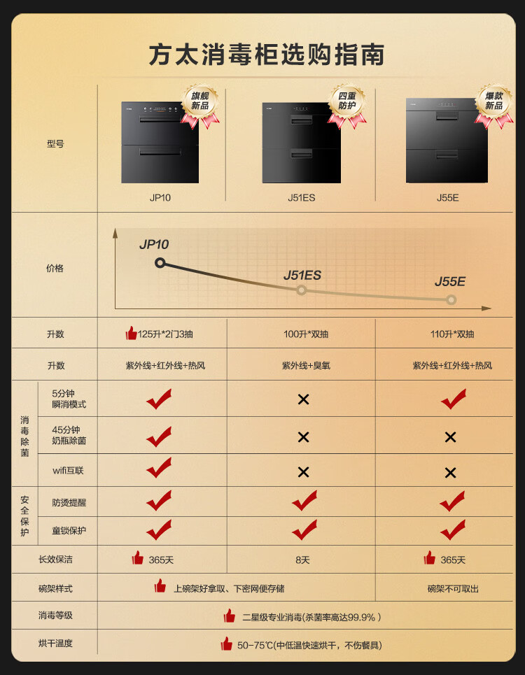 方太光刃消毒柜嵌入式家用 125升2门3抽专区专放 5min瞬消 45min奶瓶除菌 消毒碗筷柜【国家补贴】JP10