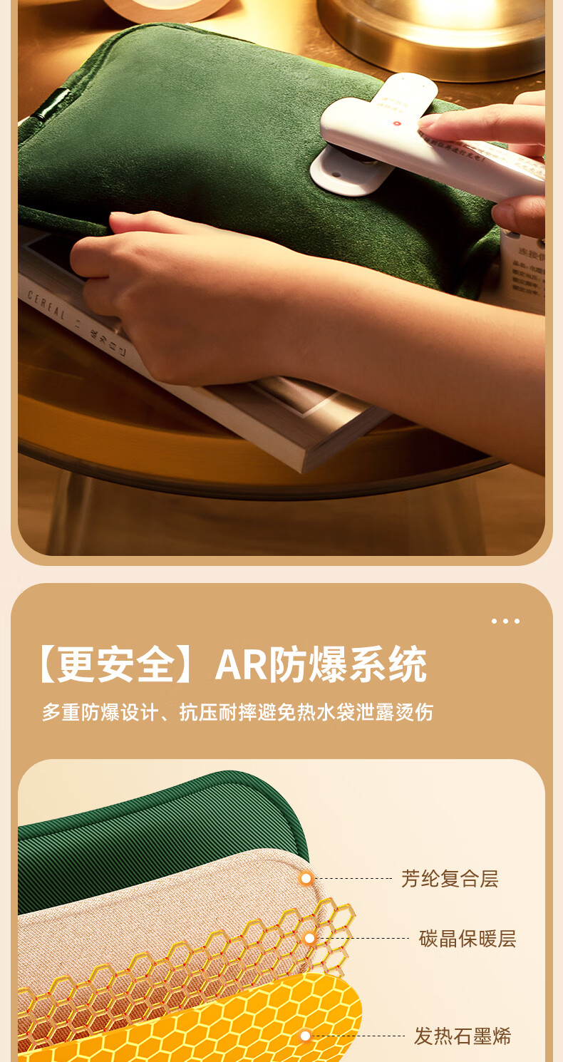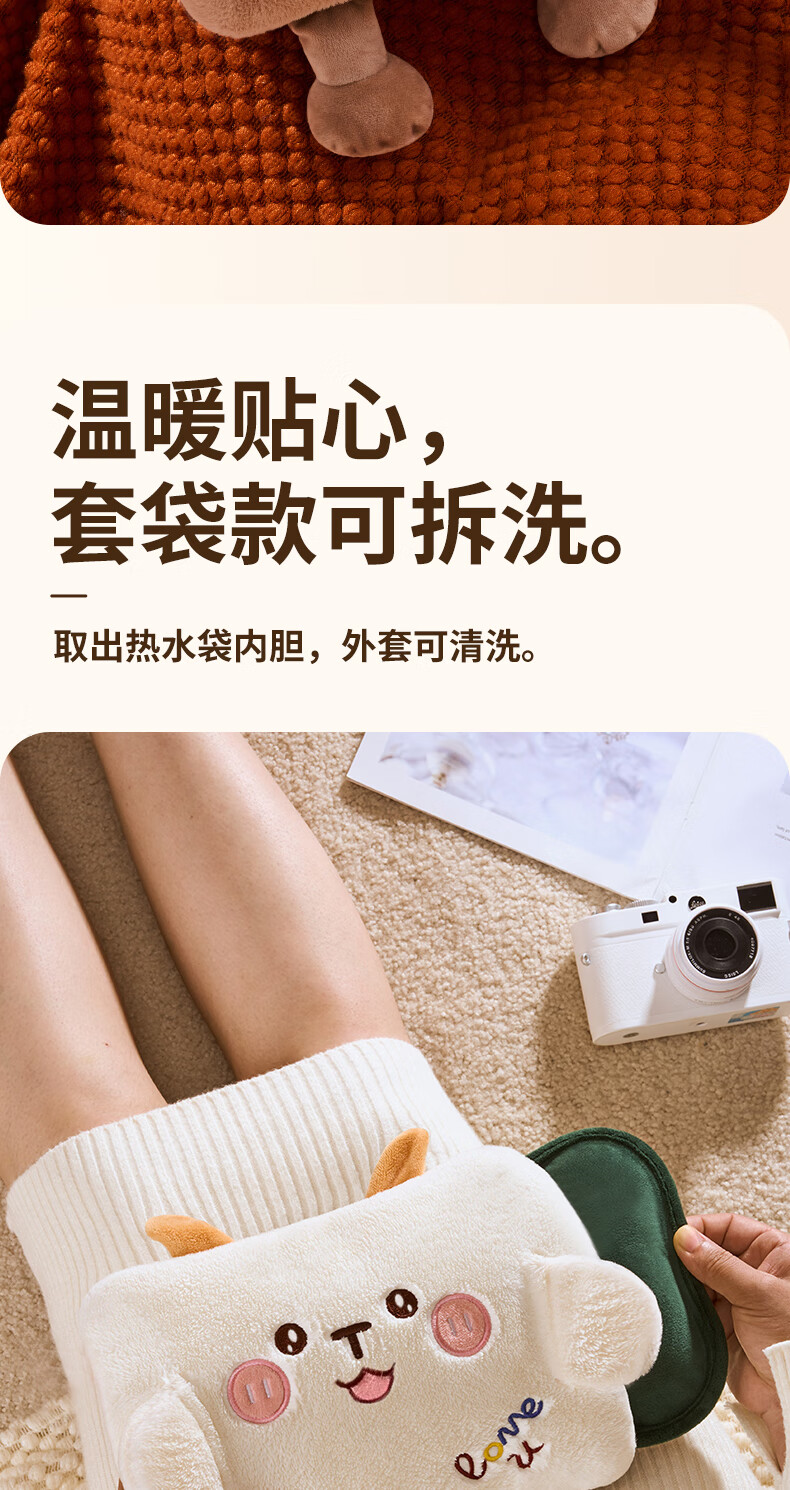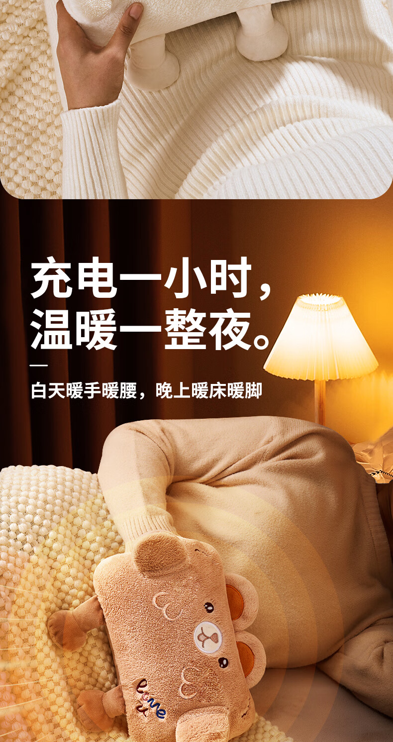 SZTAA热水袋充电暖手宝电热暖水袋暖手袋暖宝宝热敷肚子暖宫大姨妈神器 【安全防爆】可拆洗+恒温双插手