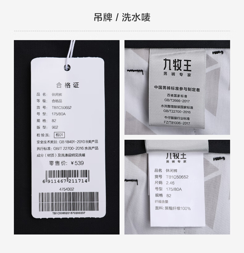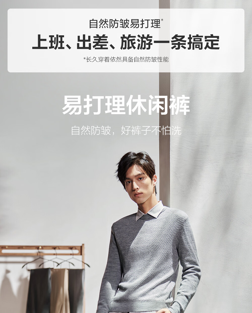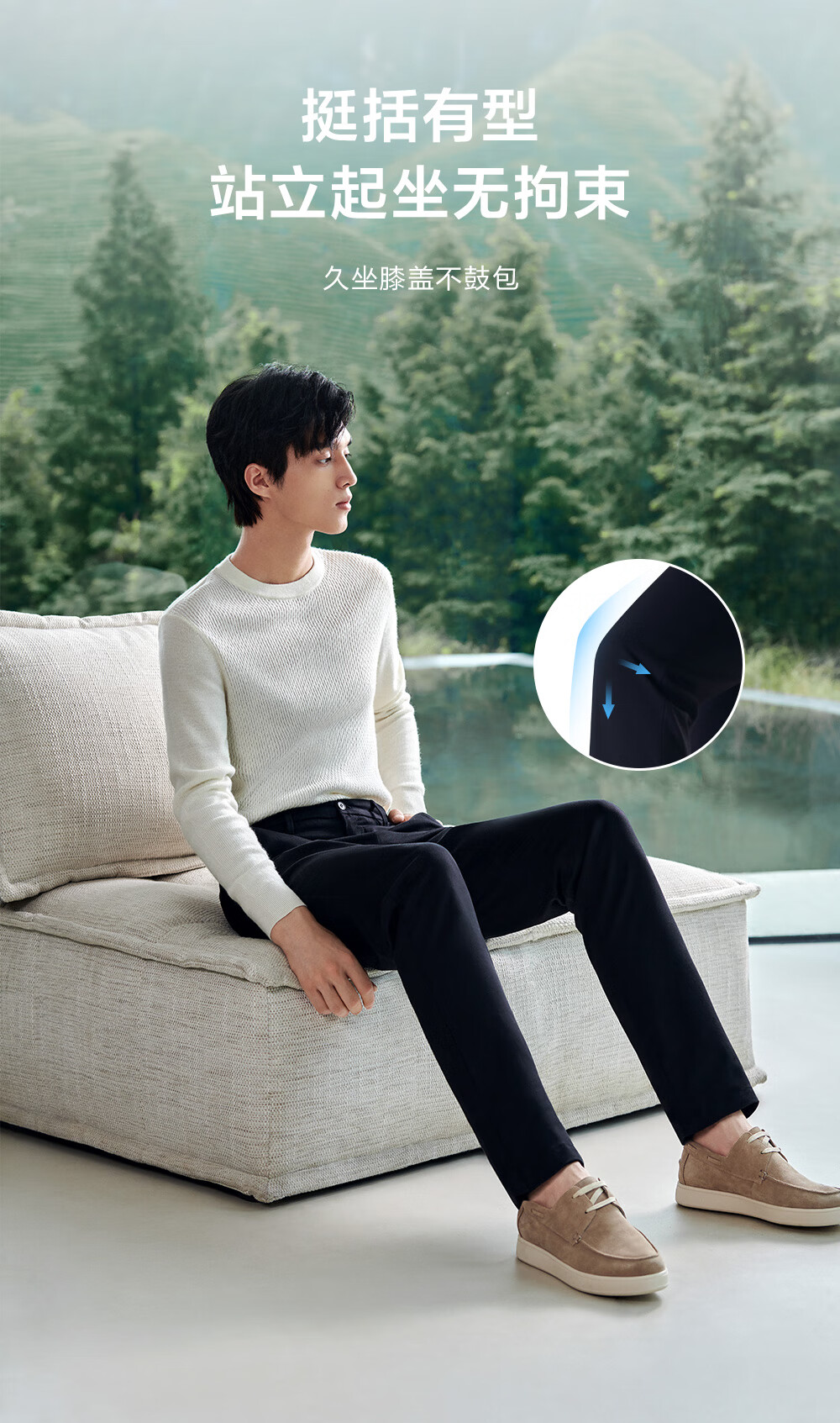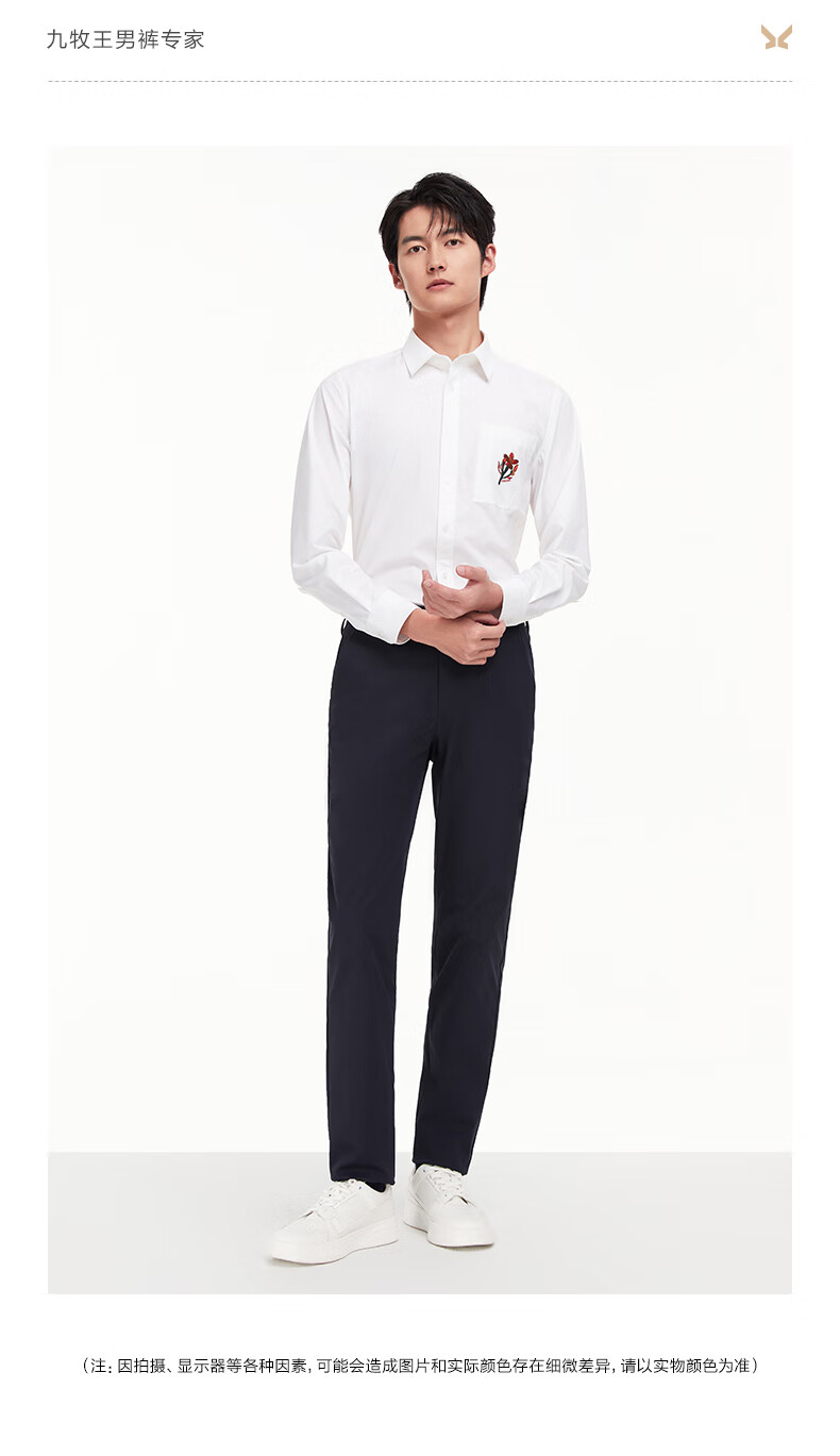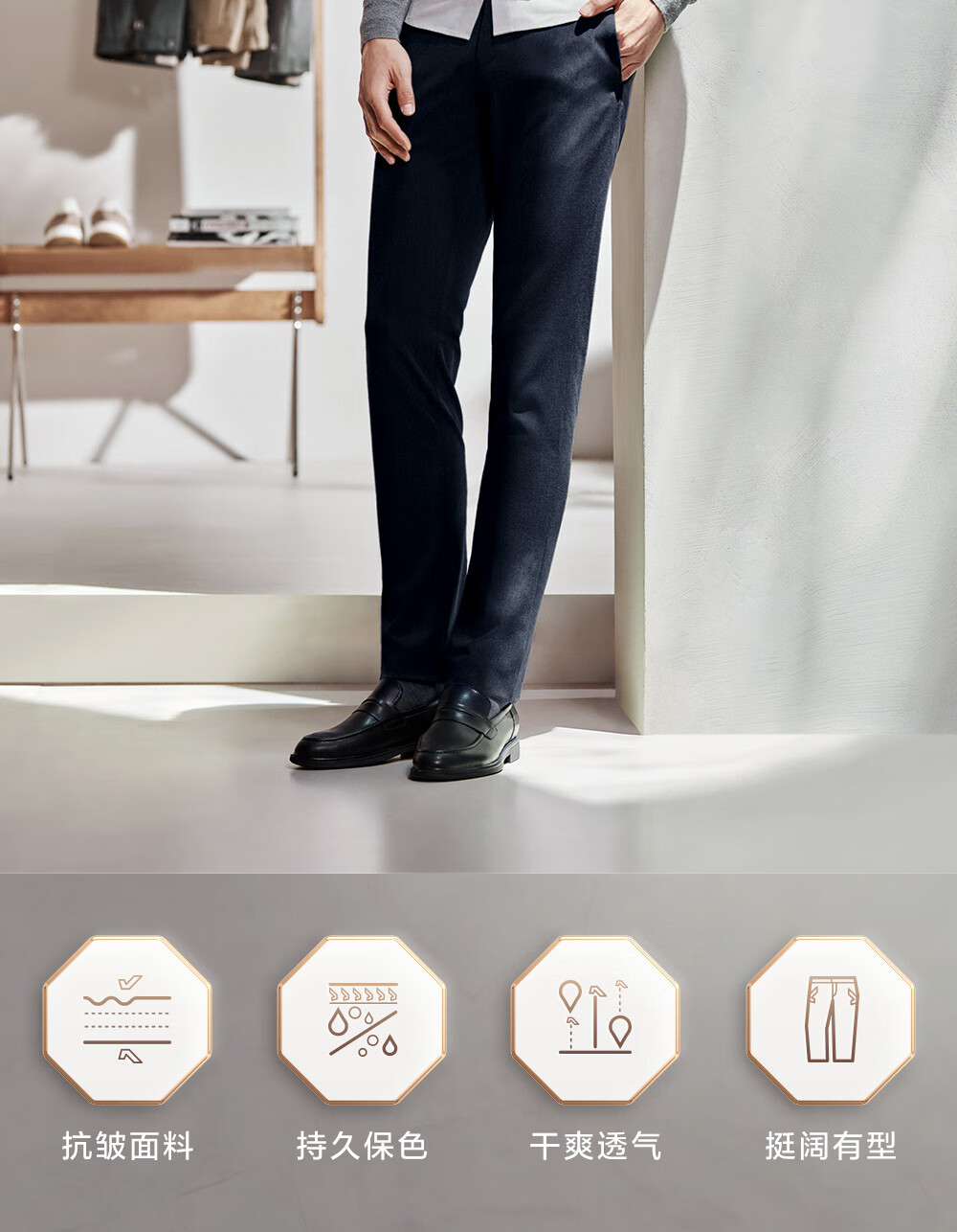 九牧王男裤休闲裤男【防皱 易打理】四季款修身弹力直筒长裤子男
