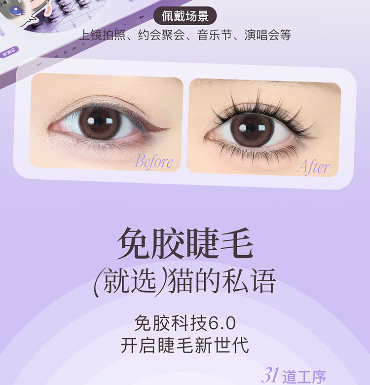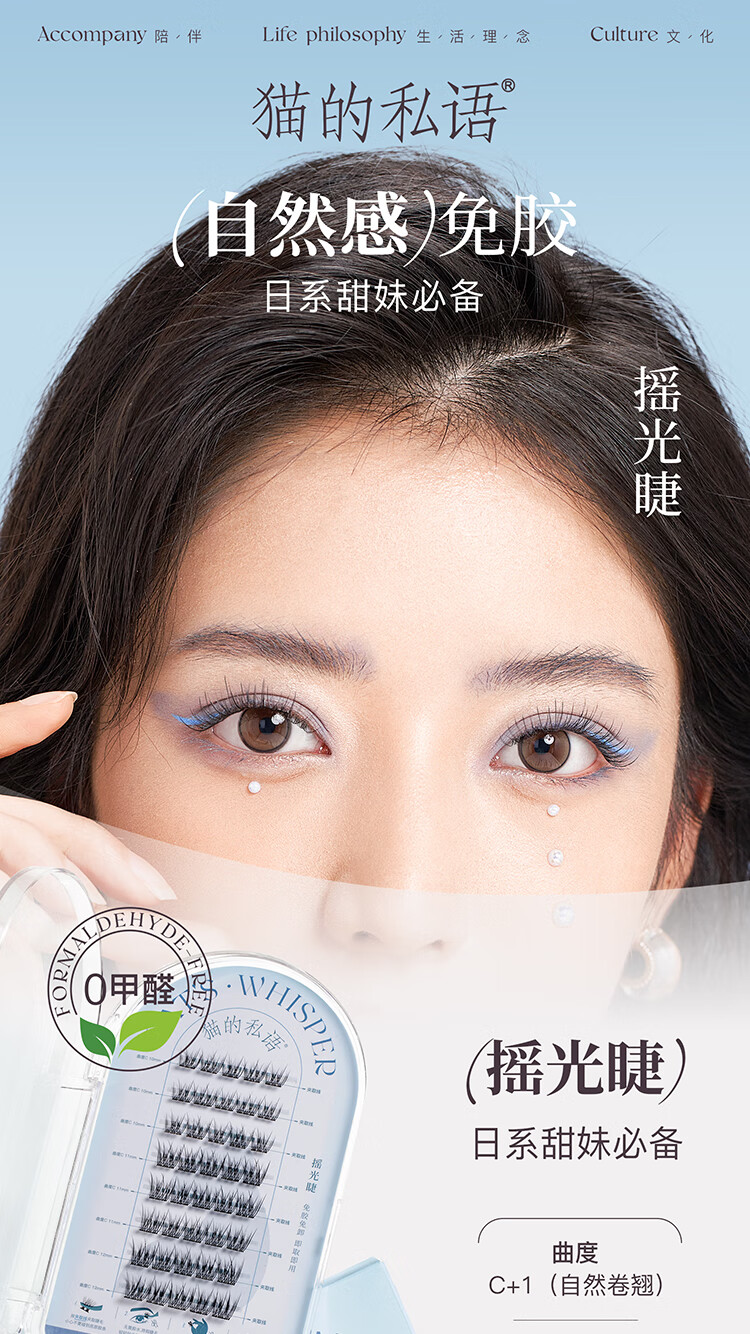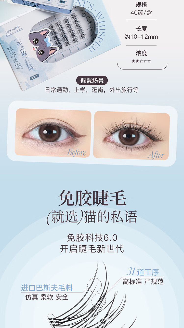 屈臣氏猫的私语 免胶假睫毛自粘懒人芊羽睫毛女浓密自然仿真分簇 晓见芊羽睫