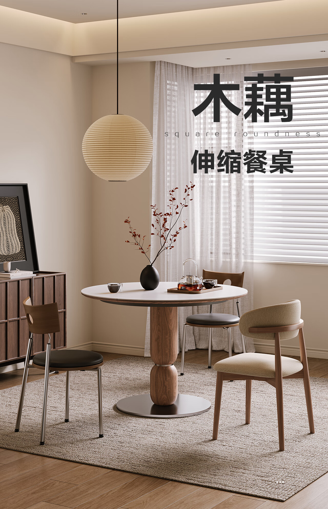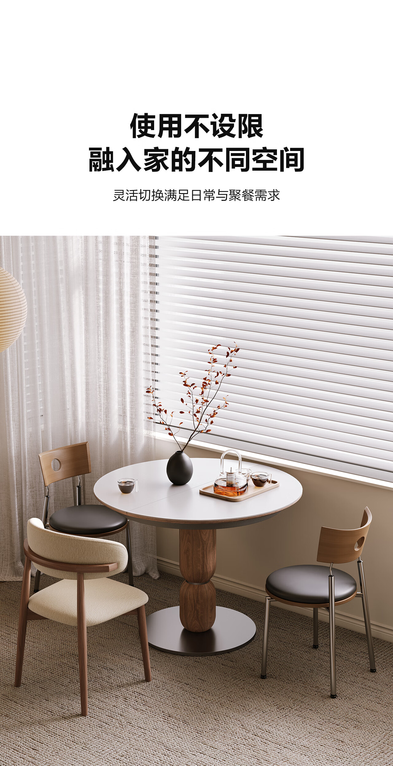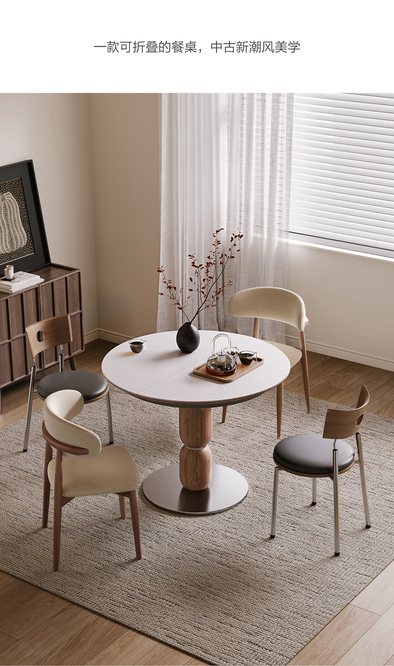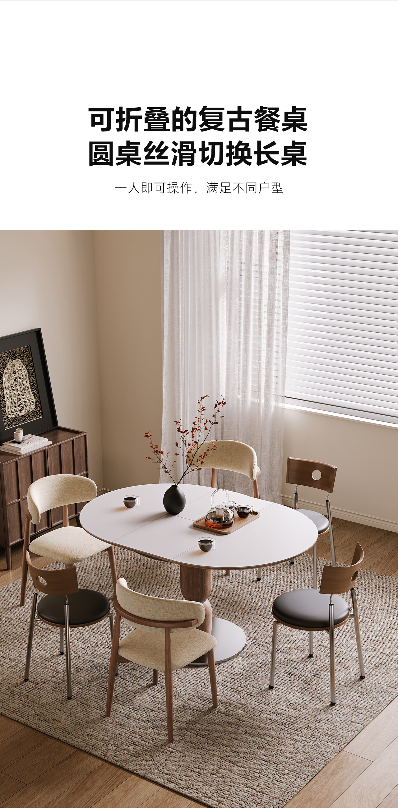 全慕(QUANMU)实木餐桌椅组合中古风方圆两用折叠可伸缩小户型家用岩板吃饭桌子 0.9米伸缩餐桌+2把【贝歌·餐椅】