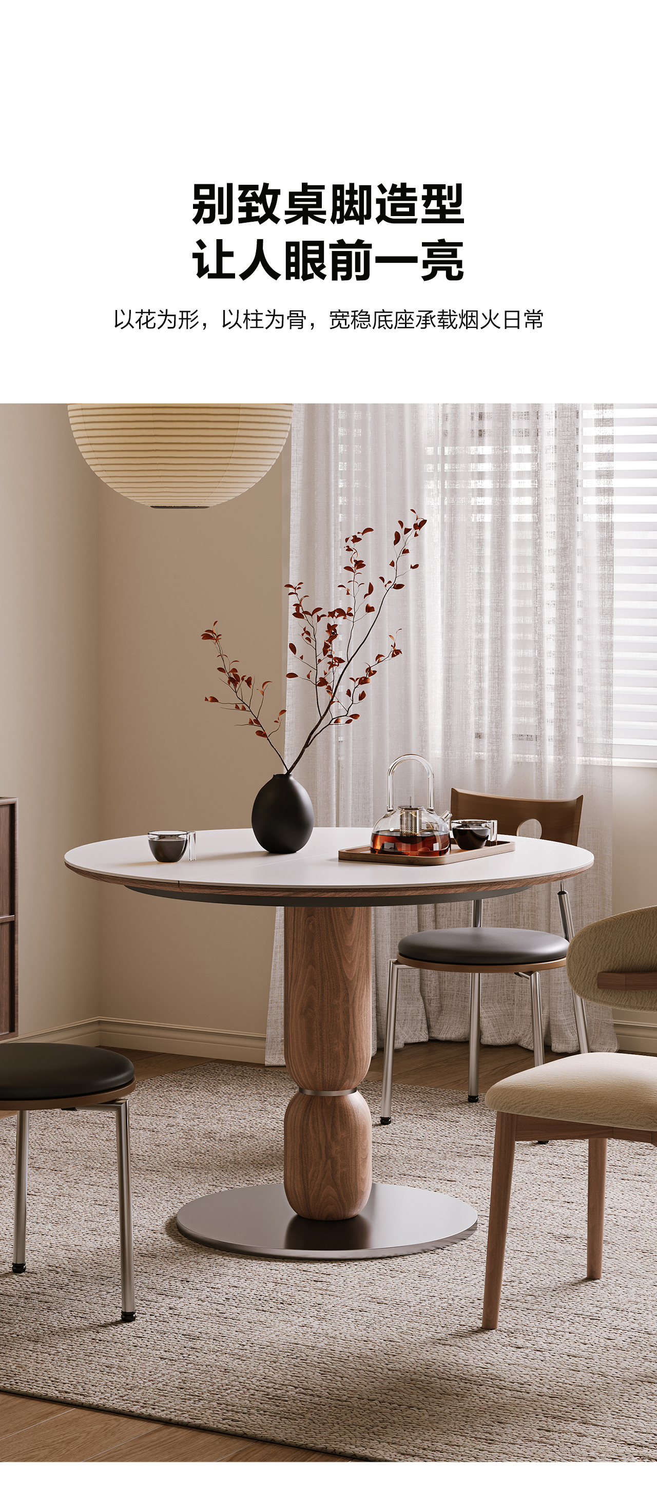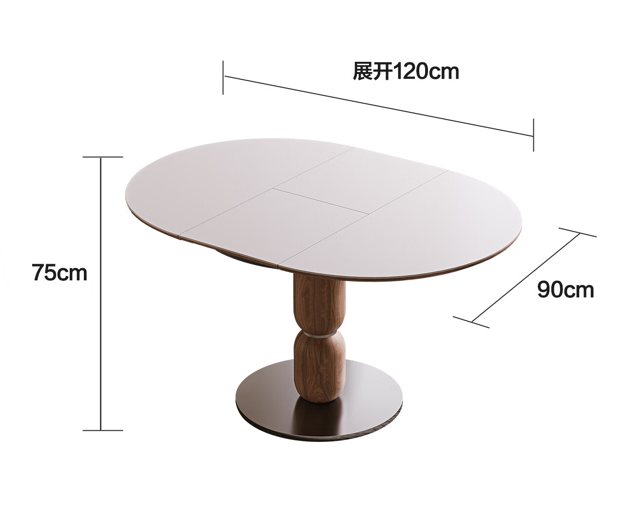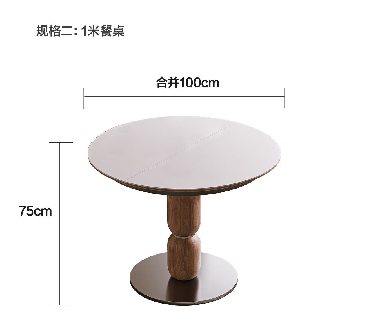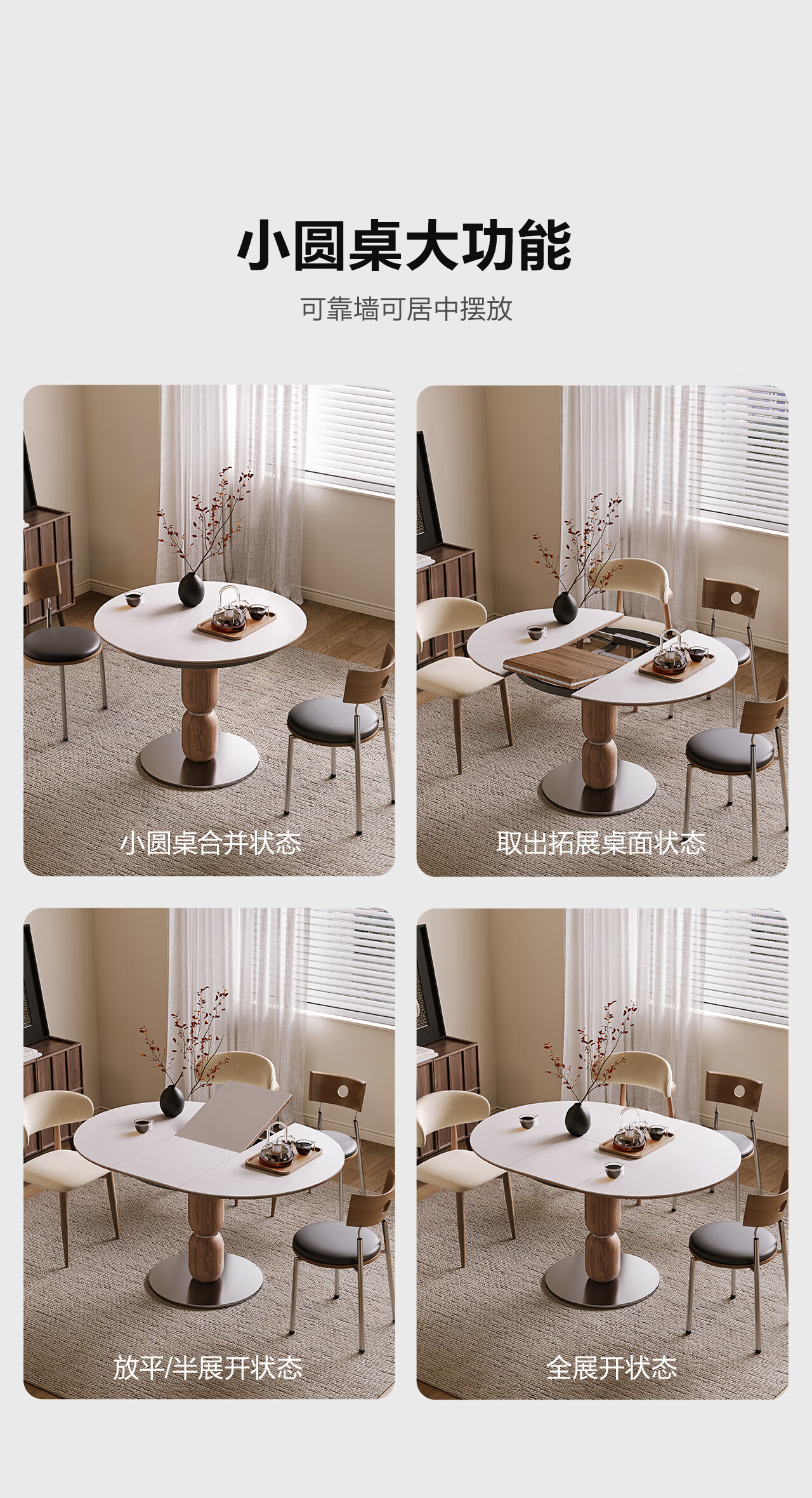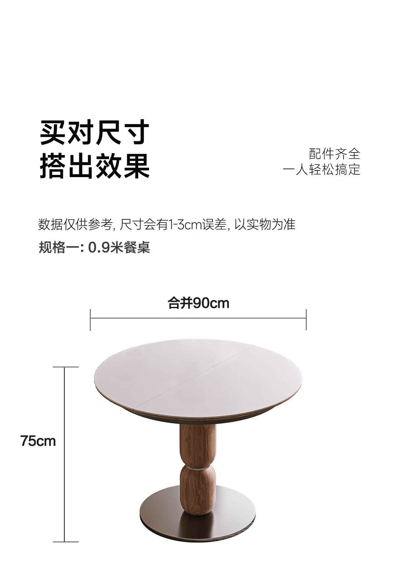 全慕(QUANMU)实木餐桌椅组合中古风方圆两用折叠可伸缩小户型家用岩板吃饭桌子 0.9米伸缩餐桌+2把【贝歌·餐椅】
