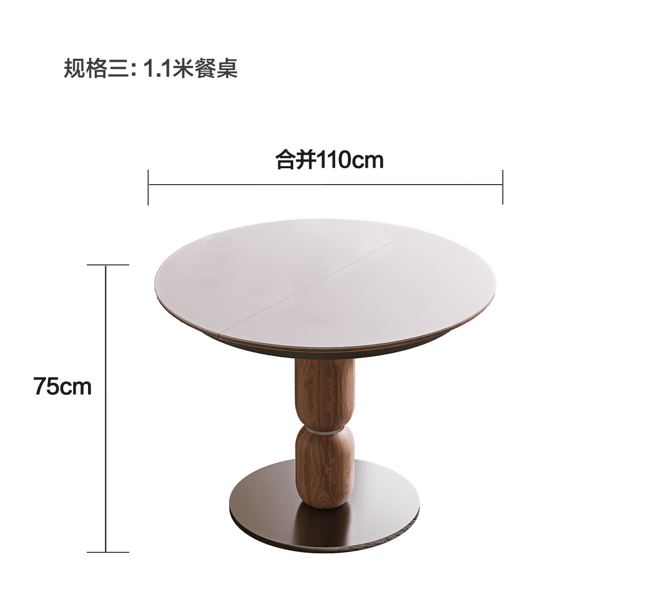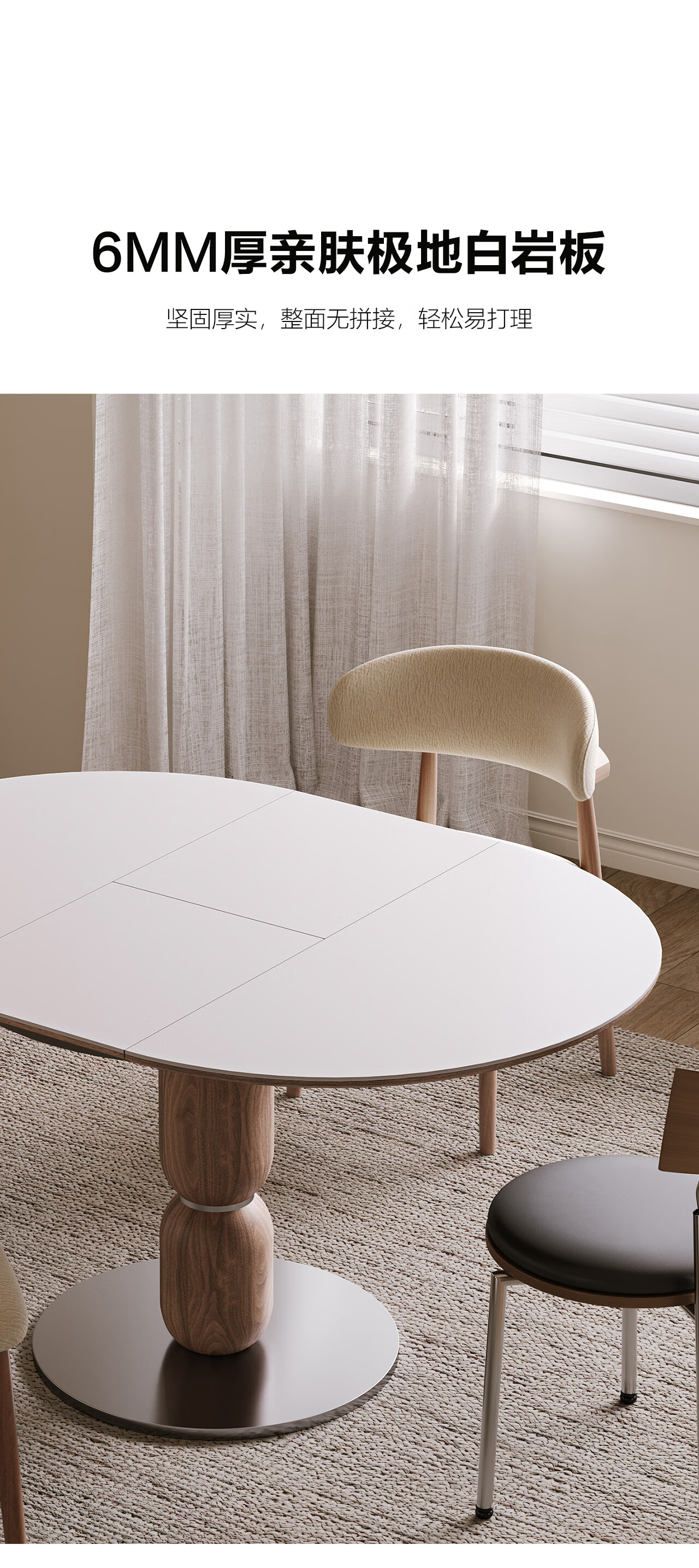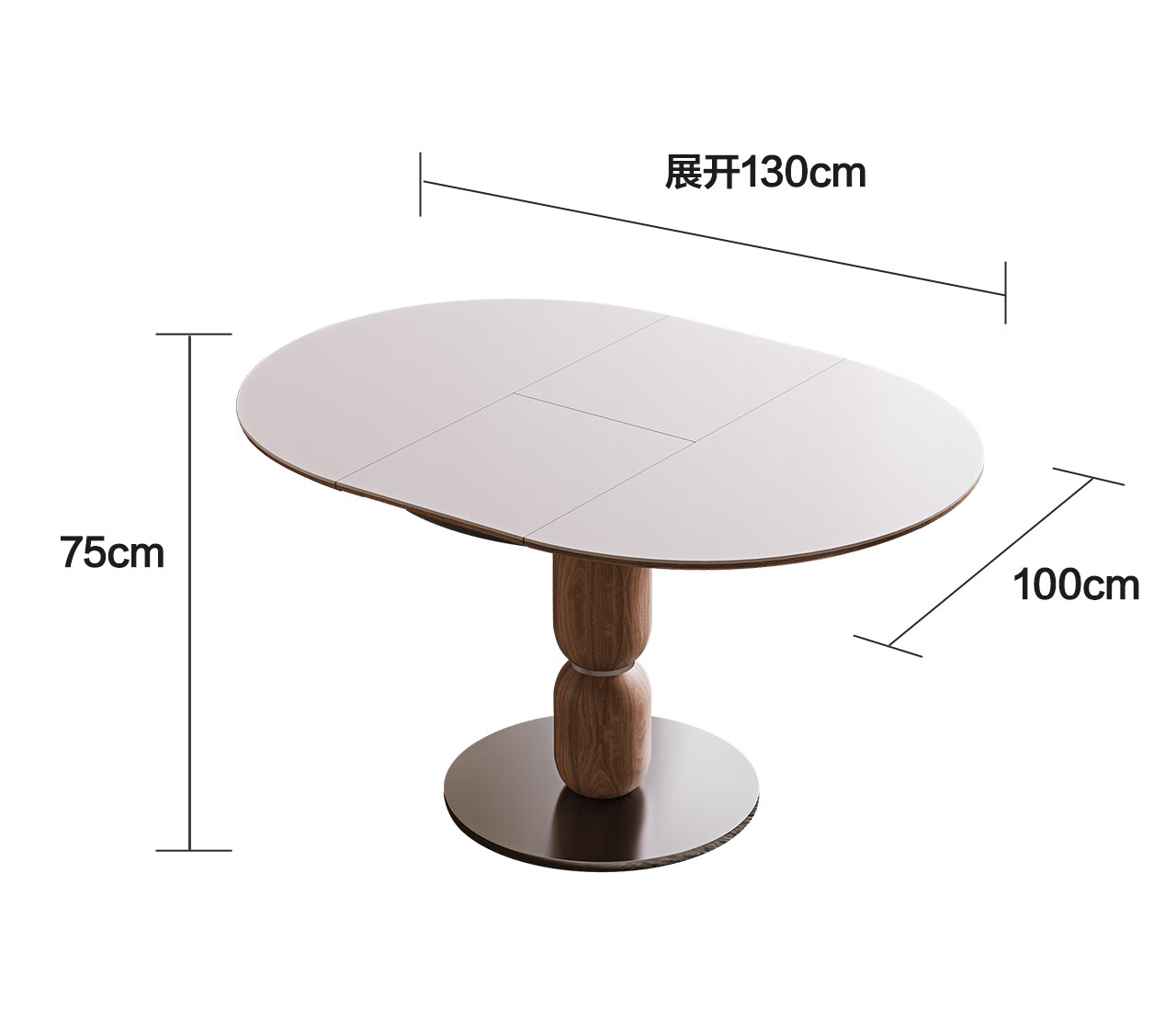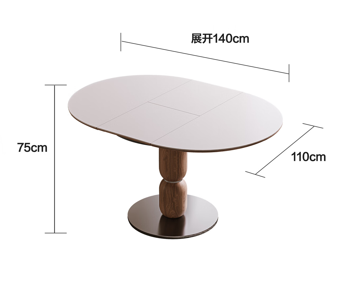 全慕(QUANMU)实木餐桌椅组合中古风方圆两用折叠可伸缩小户型家用岩板吃饭桌子 0.9米伸缩餐桌+2把【贝歌·餐椅】