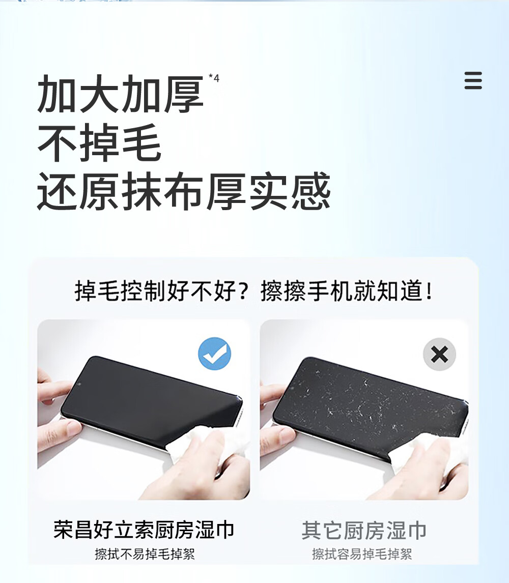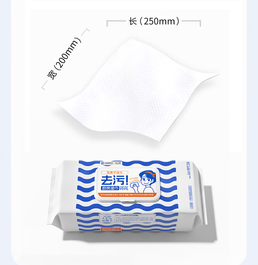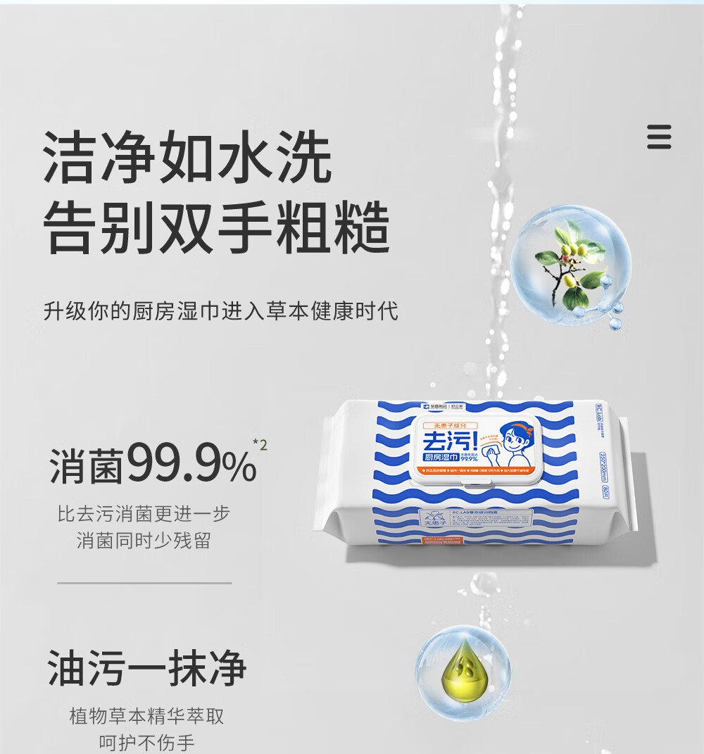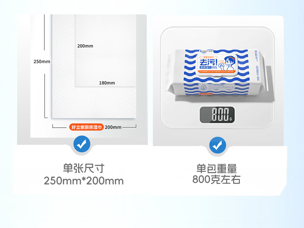 好立索厨房湿巾80抽草本配方厨房用纸懒人抹布加大加厚去油污家用湿纸巾 【超大尺寸】 1层 80抽*3包