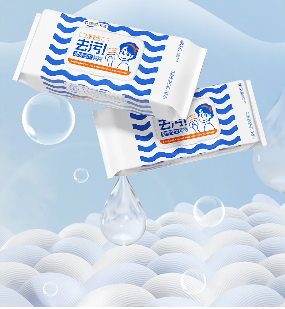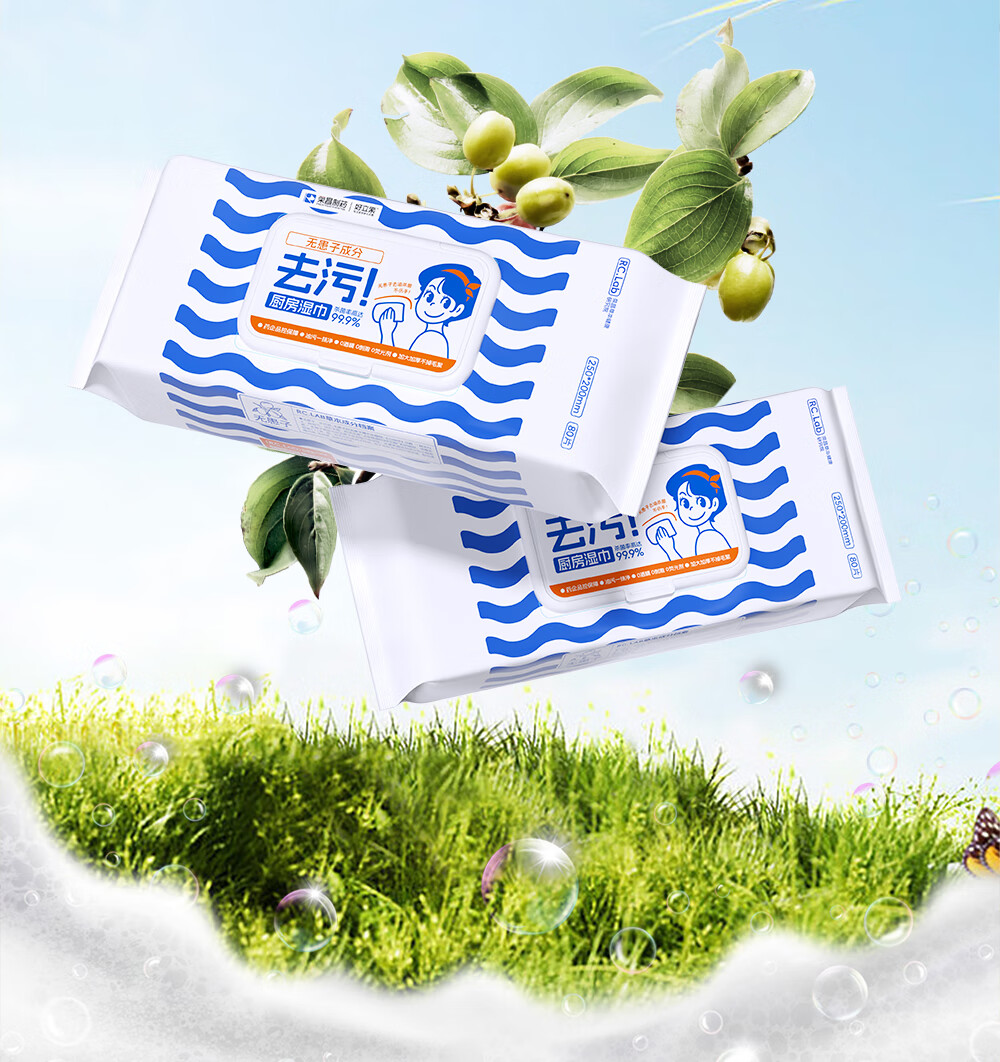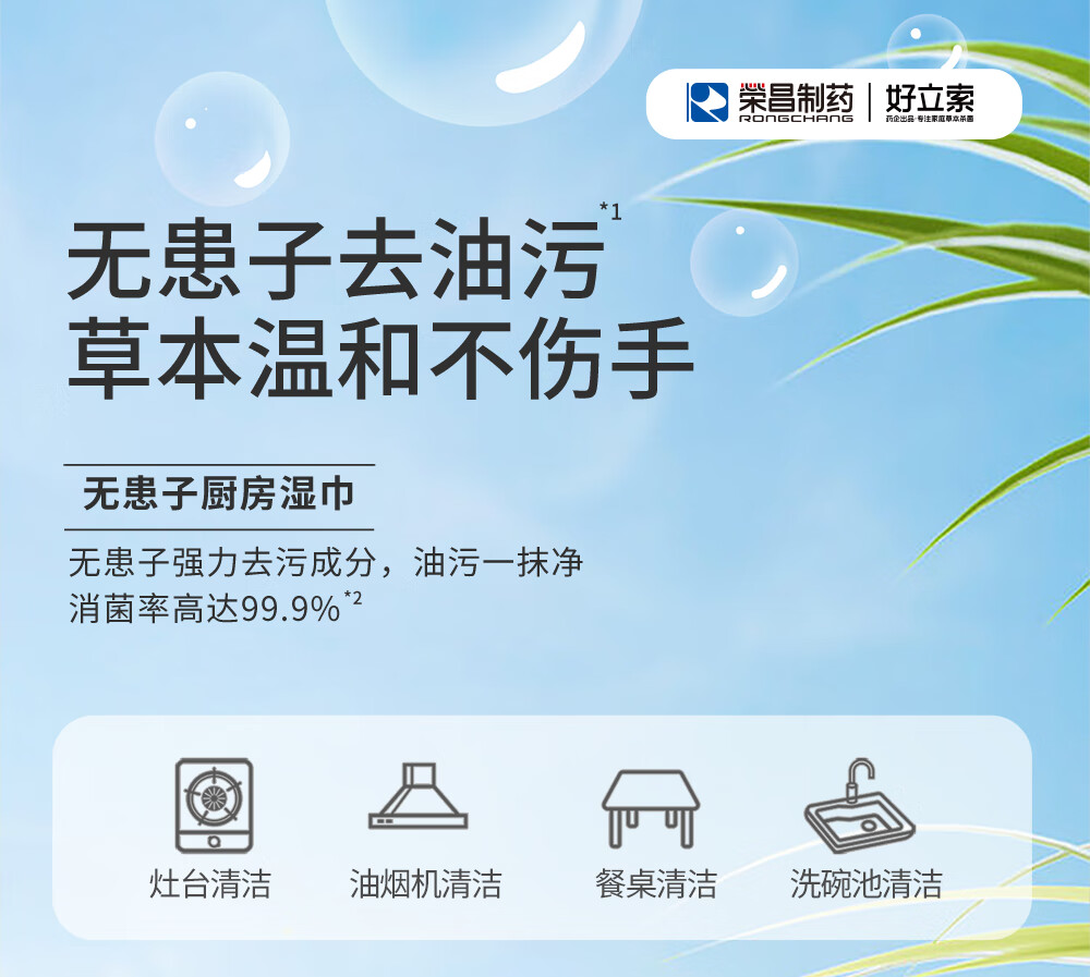 好立索厨房湿巾80抽草本配方厨房用纸懒人抹布加大加厚去油污家用湿纸巾 【超大尺寸】 1层 80抽*3包