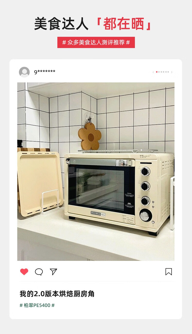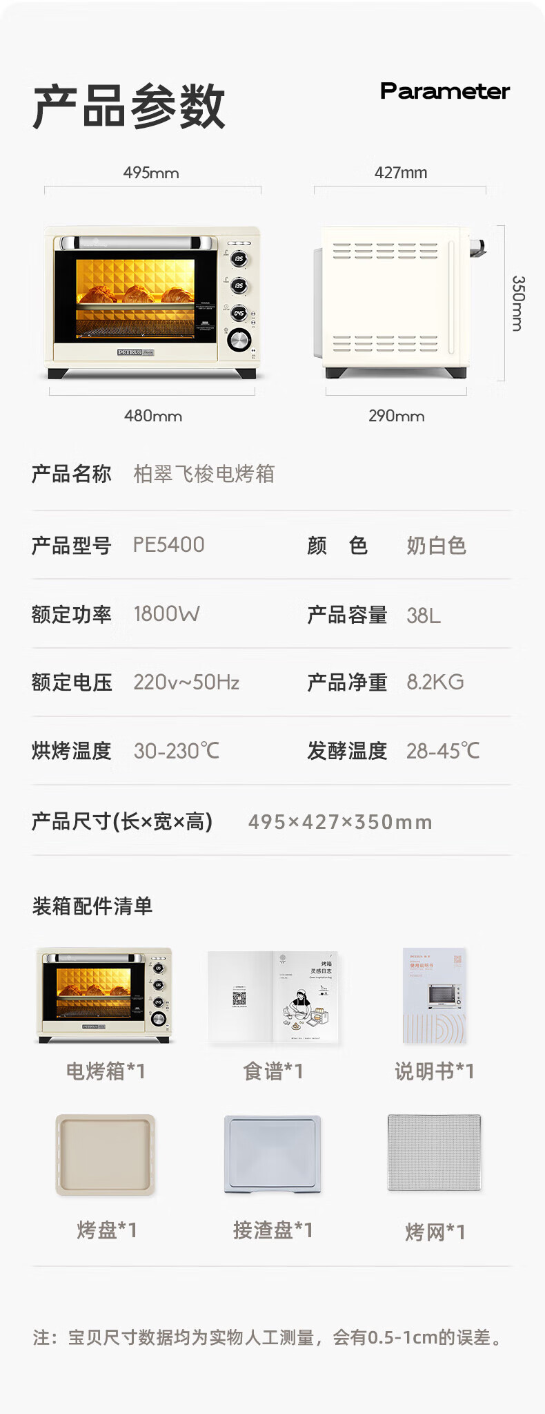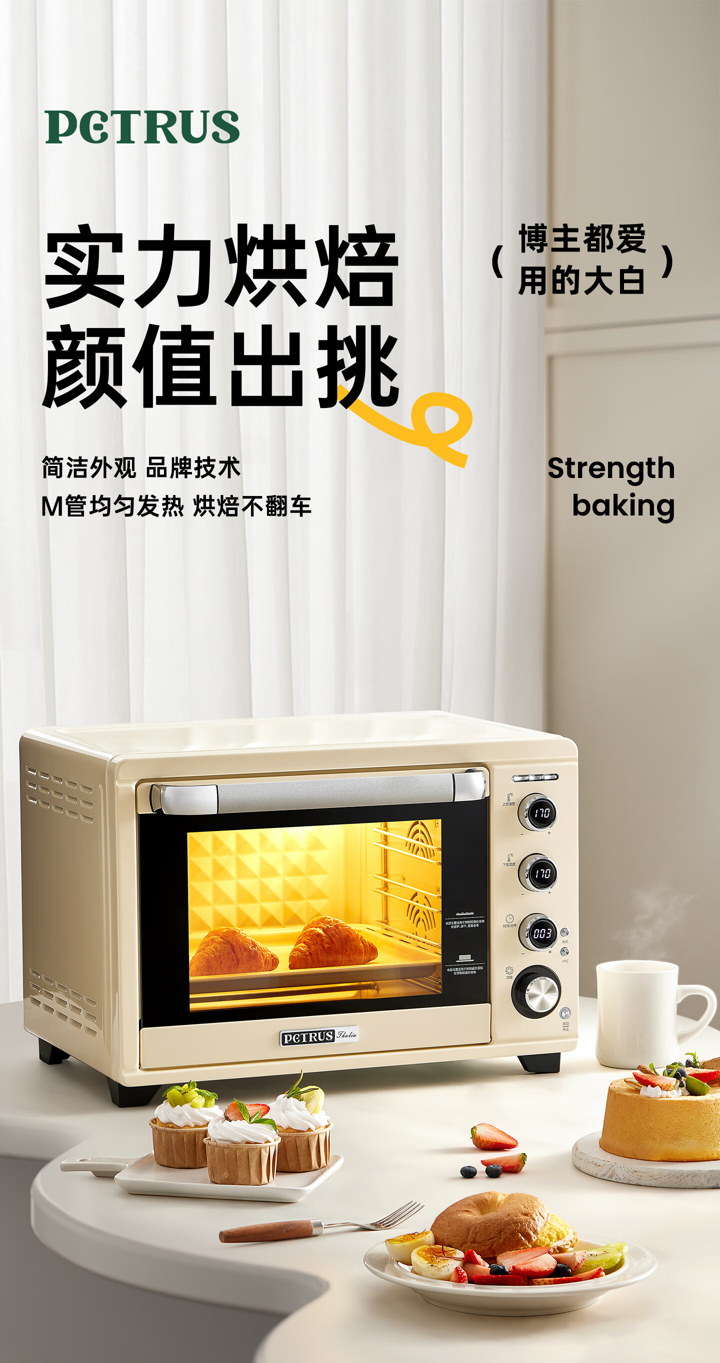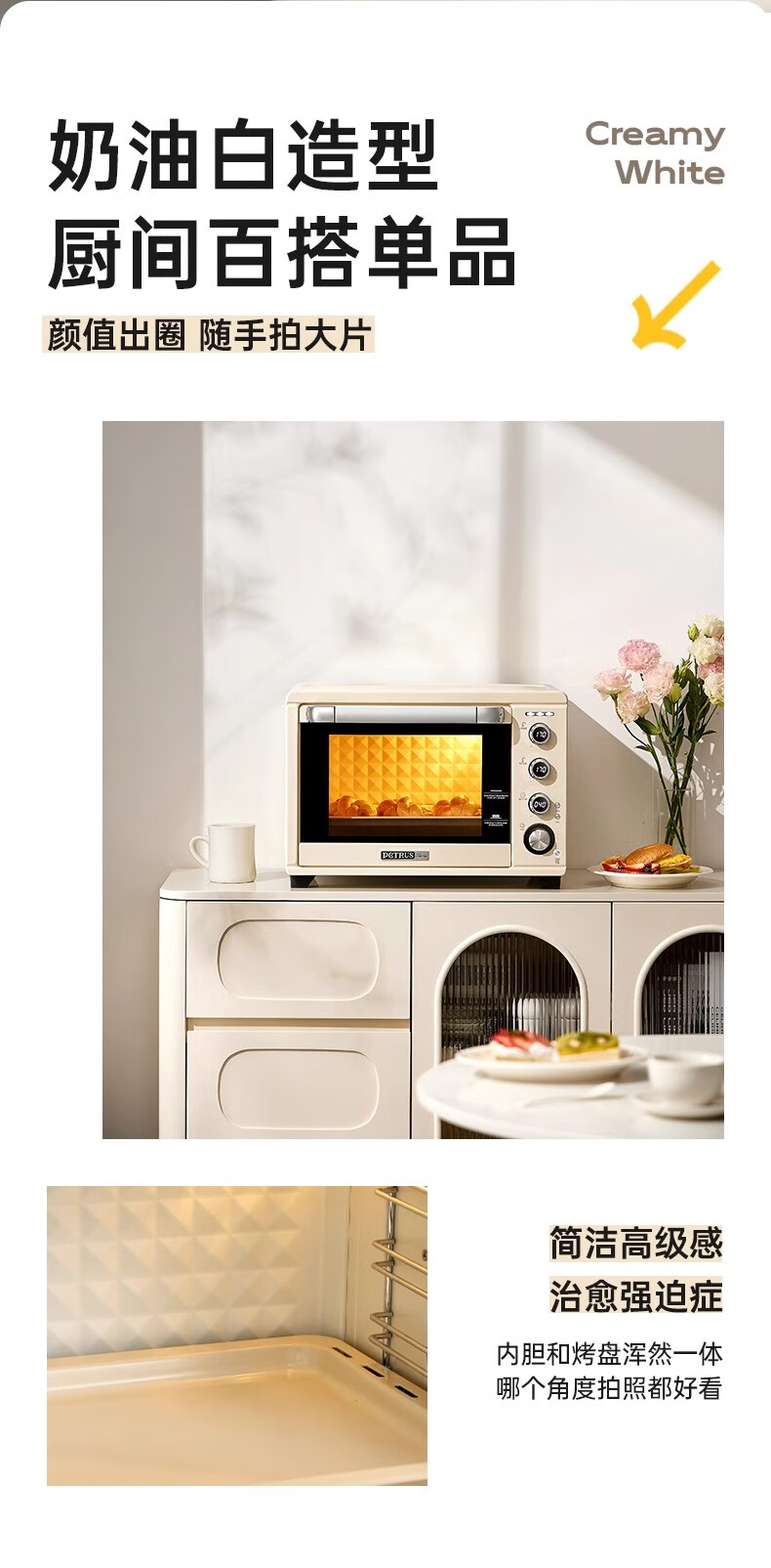 柏翠(petrus) 电烤箱家用38升大容量全自动独立控温多功能烘焙智能烧烤发酵果干机 小家电 PE5400 节日礼物 简米白 38L ( 咨询有大惊喜 )