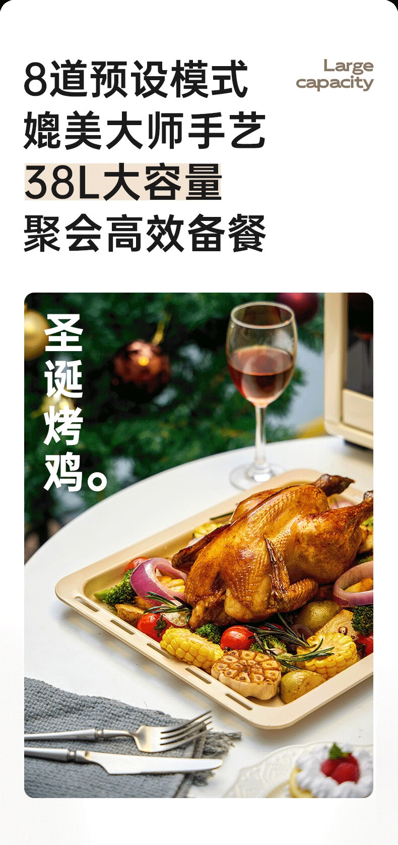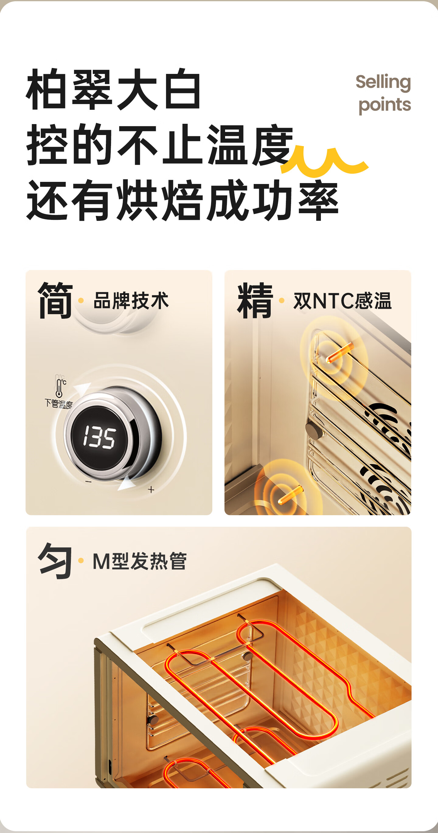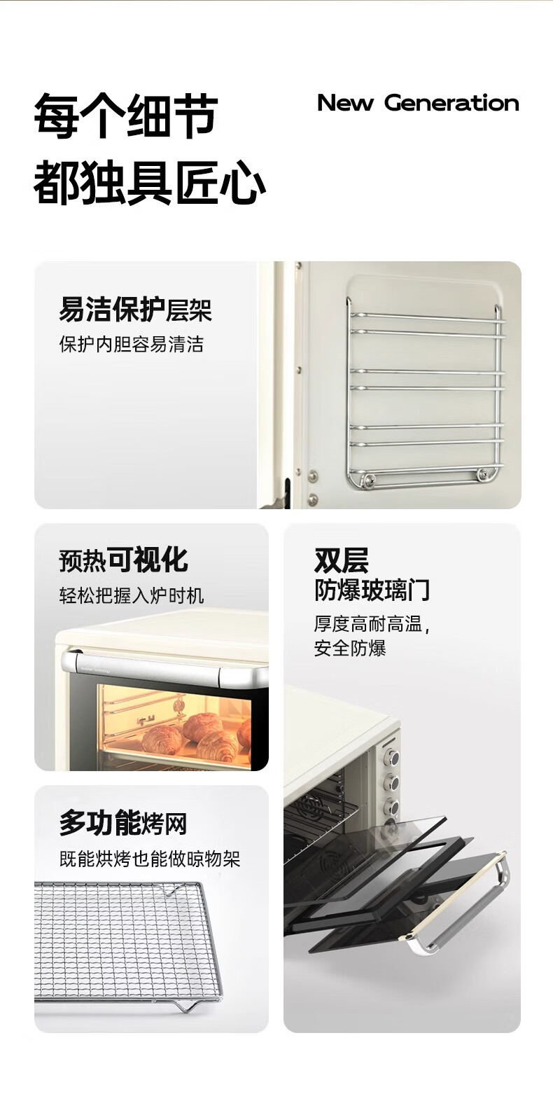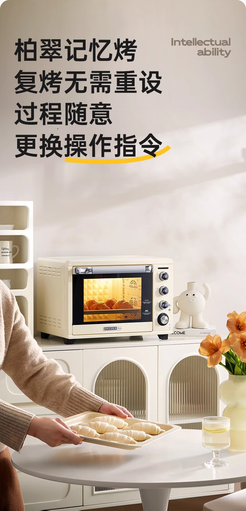 柏翠(petrus) 电烤箱家用38升大容量全自动独立控温多功能烘焙智能烧烤发酵果干机 小家电 PE5400 节日礼物 简米白 38L ( 咨询有大惊喜 )