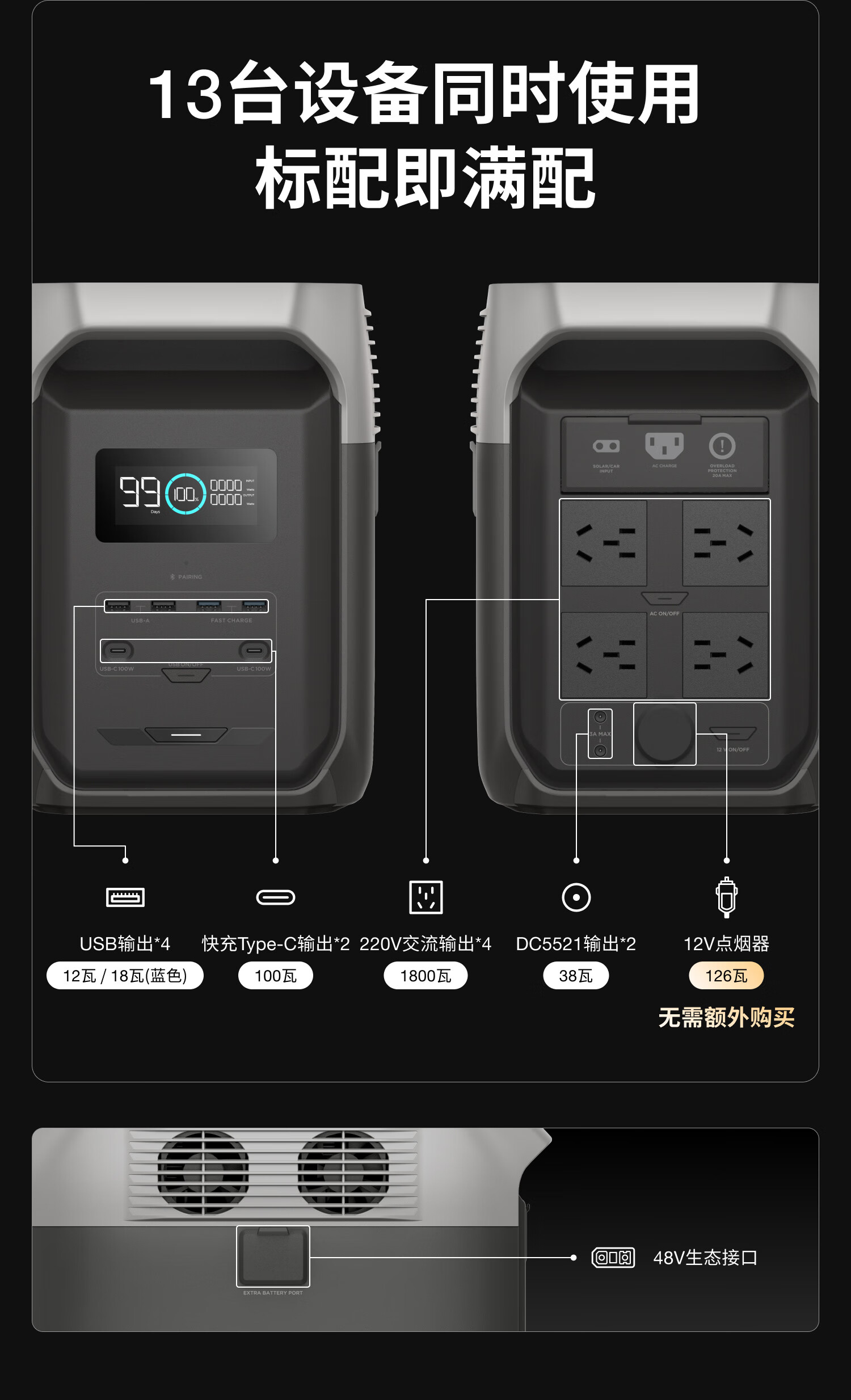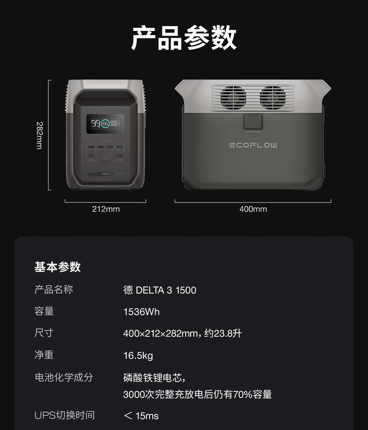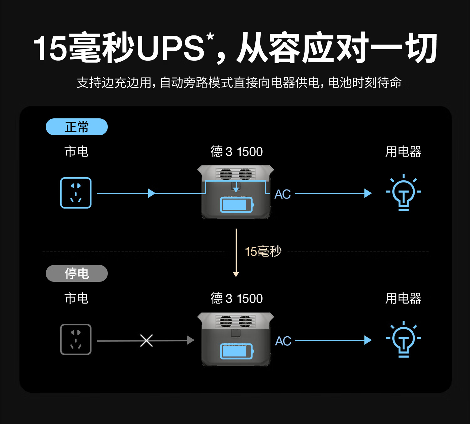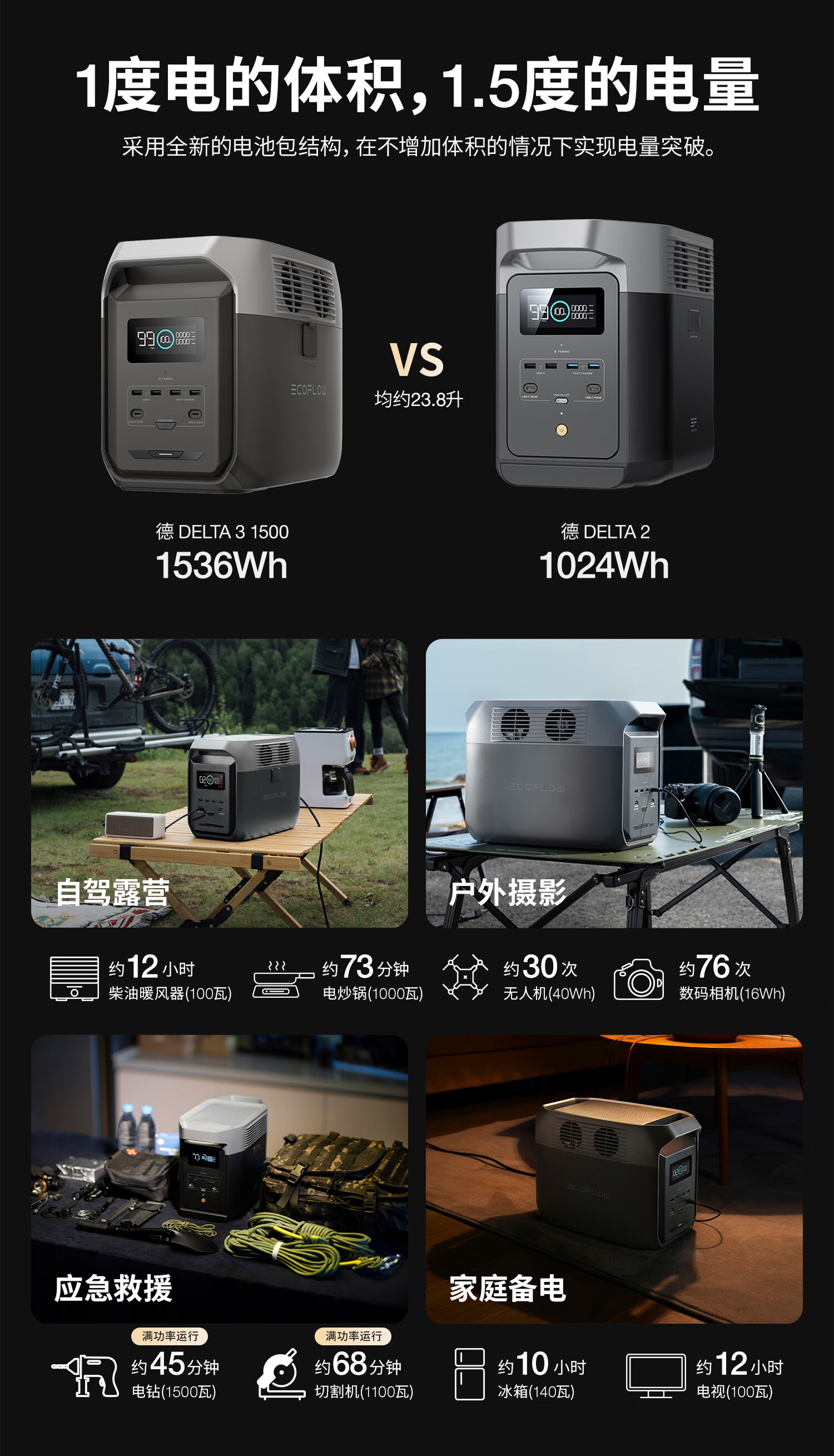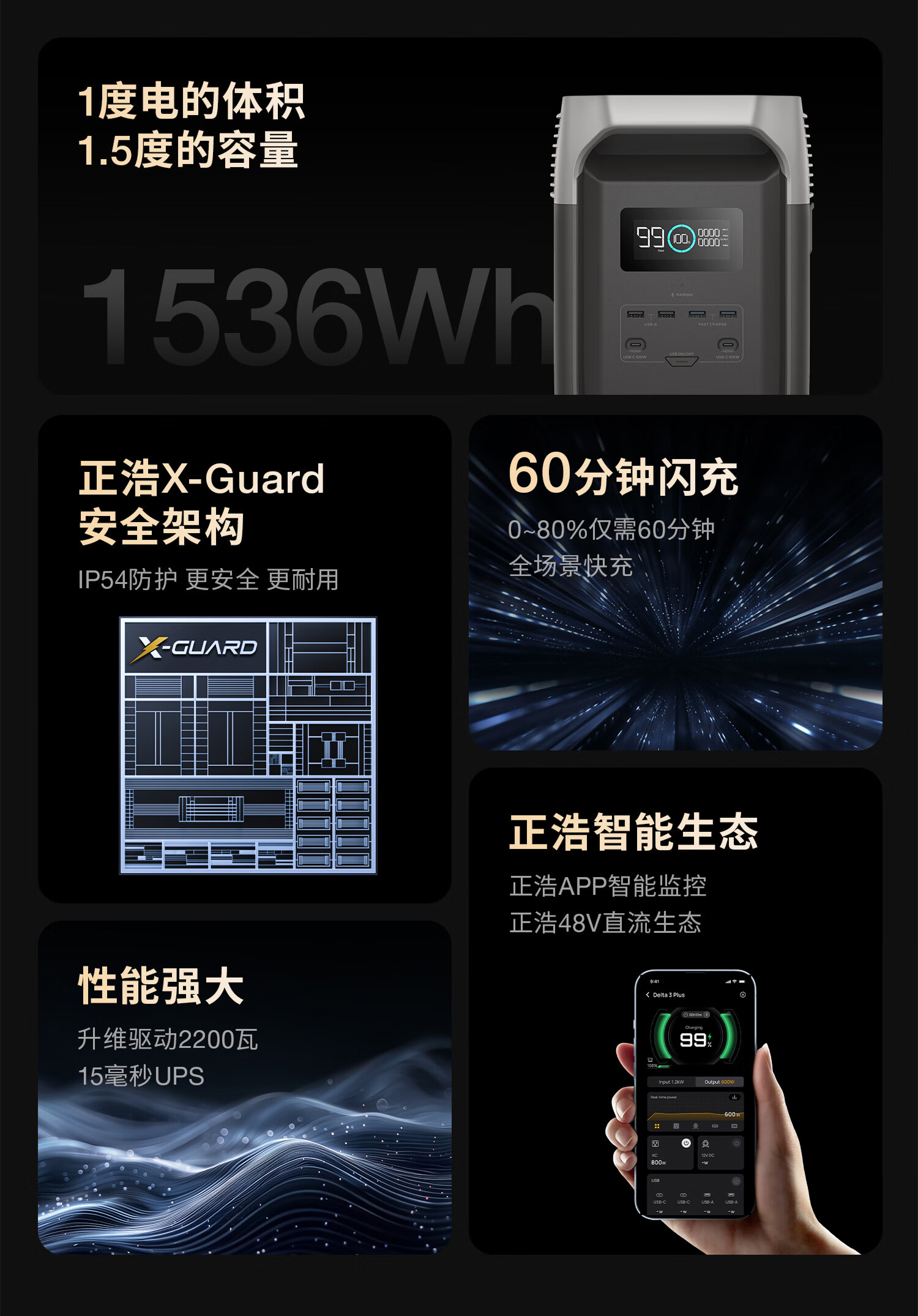 ECOFLOW正浩【1.5度电1800W大功率】德3 快充户外移动电源220V大容量便携自驾露营车载应急备用储能电池