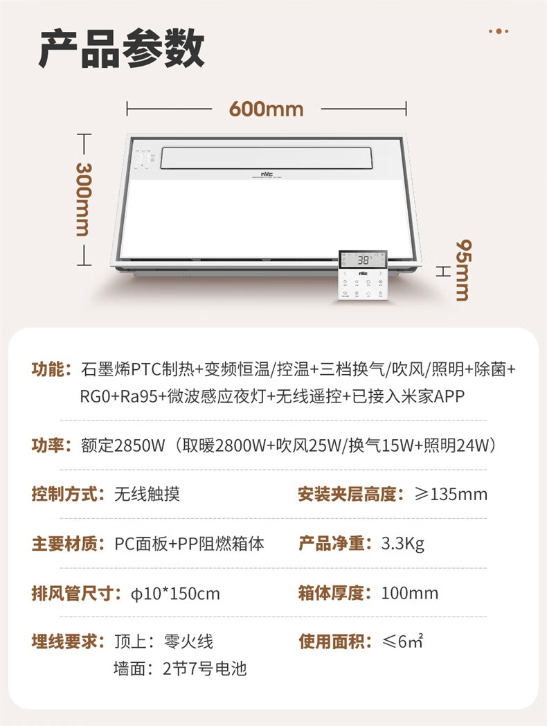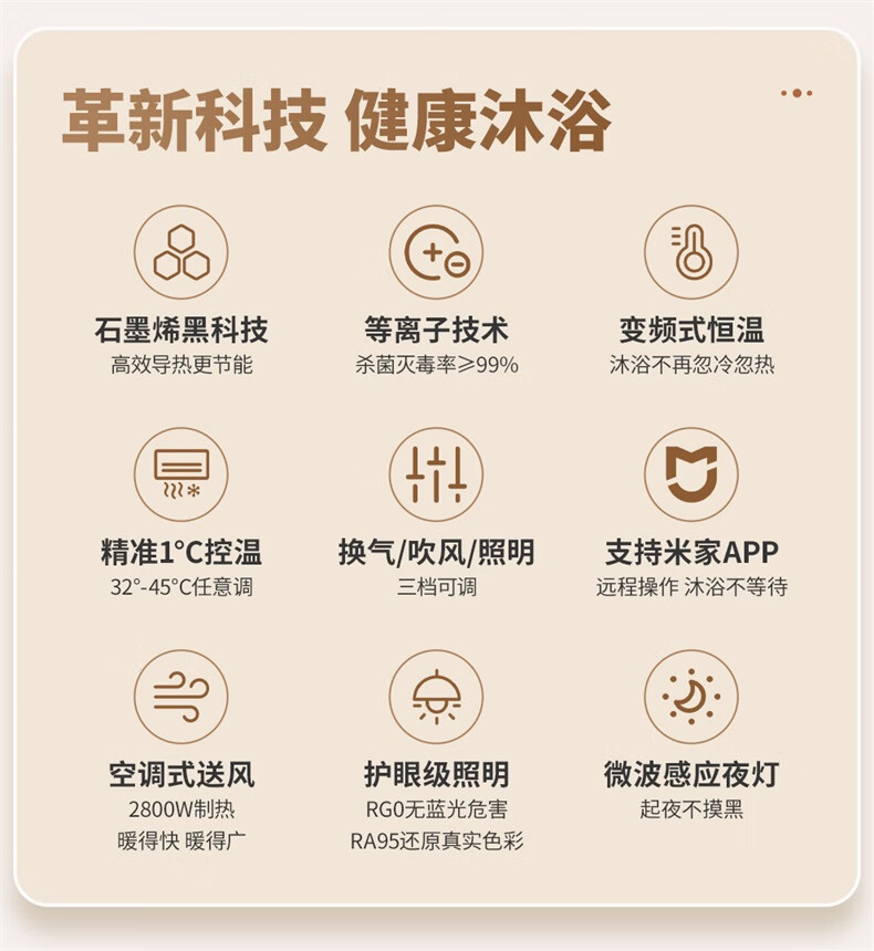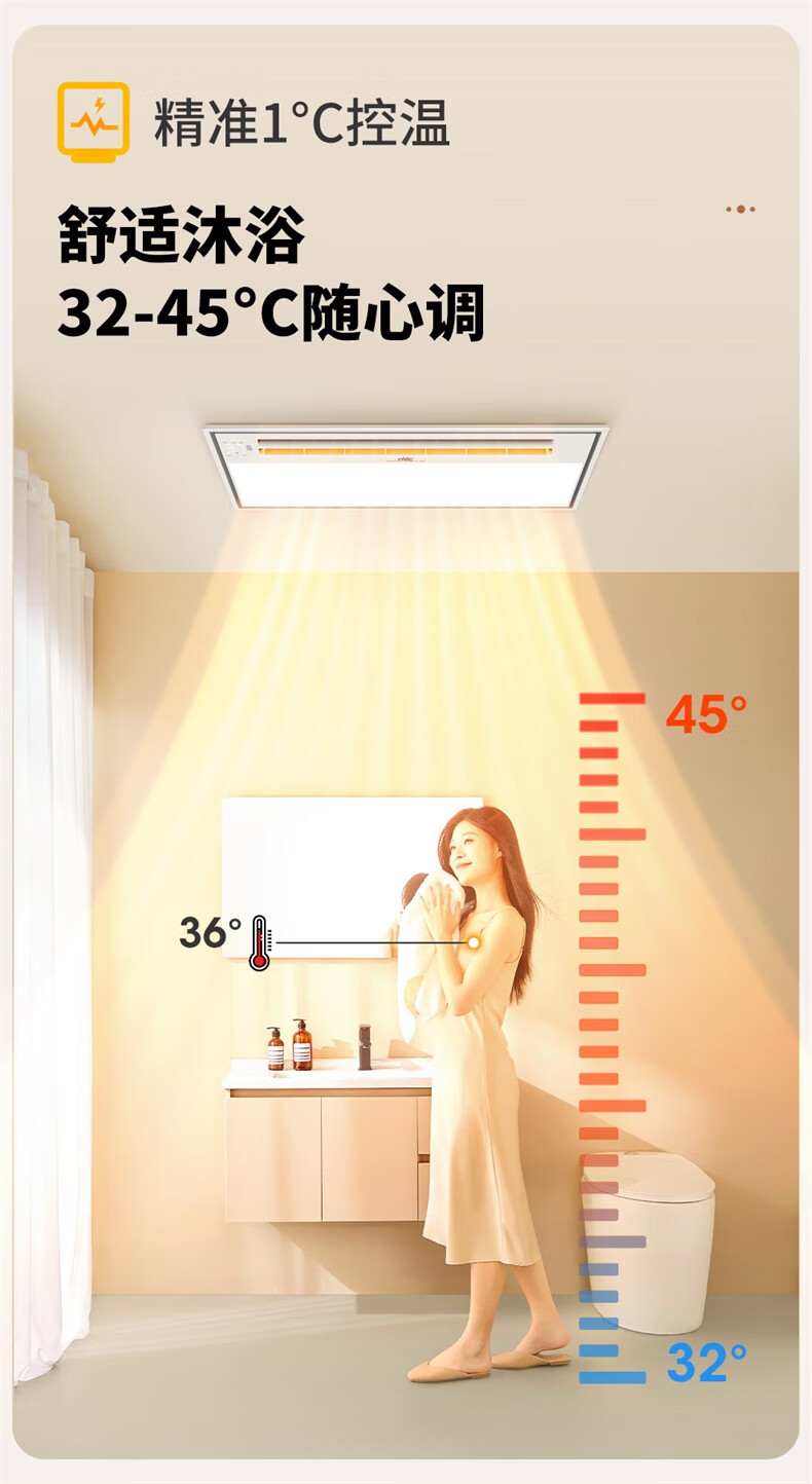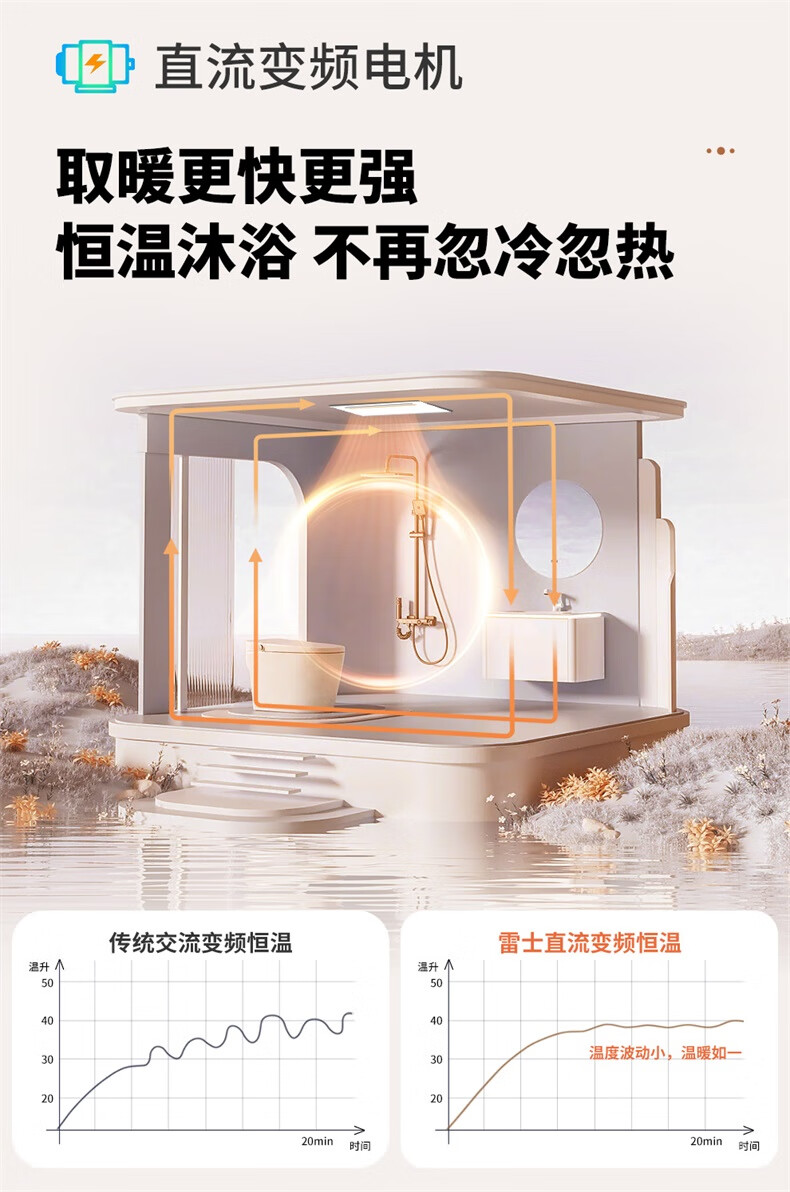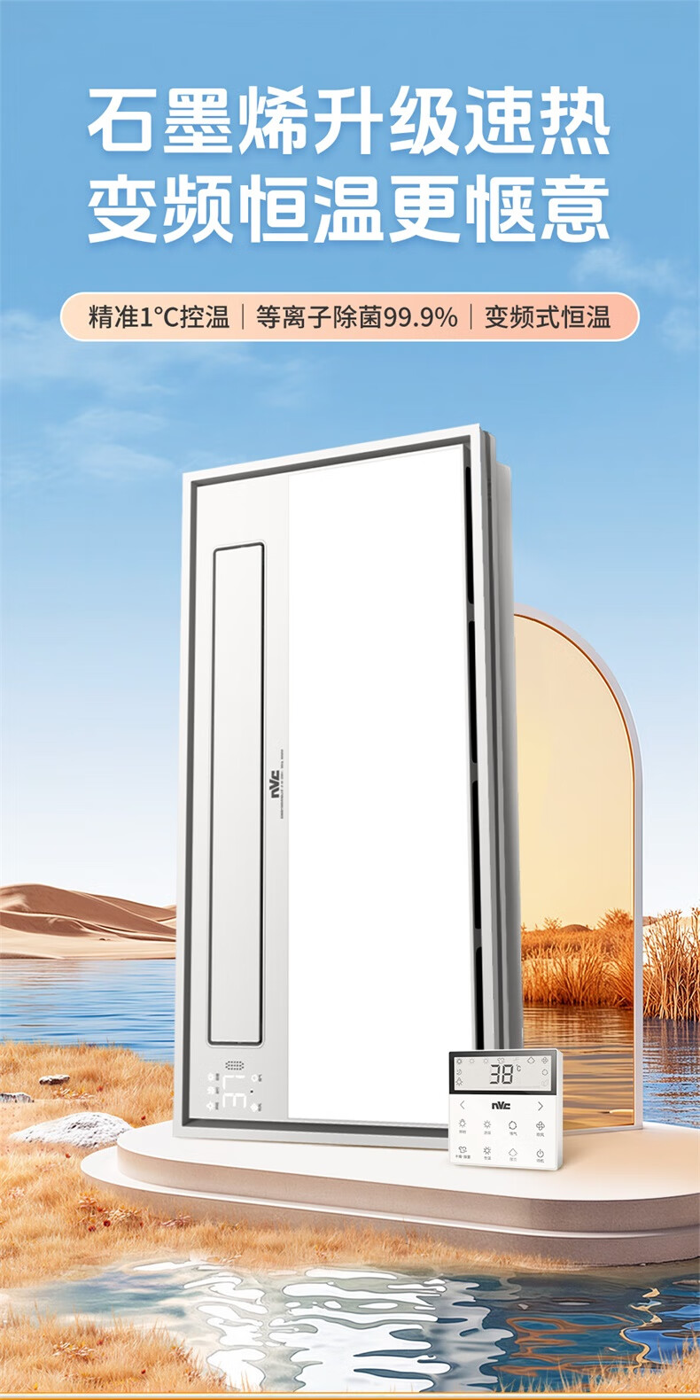 雷士(NVC)风暖浴霸暖风照明排气一体卫生间浴室大功率速热石墨烯智能浴霸 2800W|精准1°C控温|99%除菌