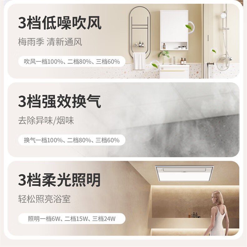 海尔风暖浴霸正方形小型暖风照明排气一体集成吊顶室内暖风机浴霸F330