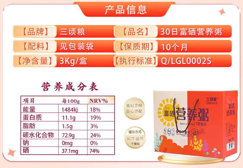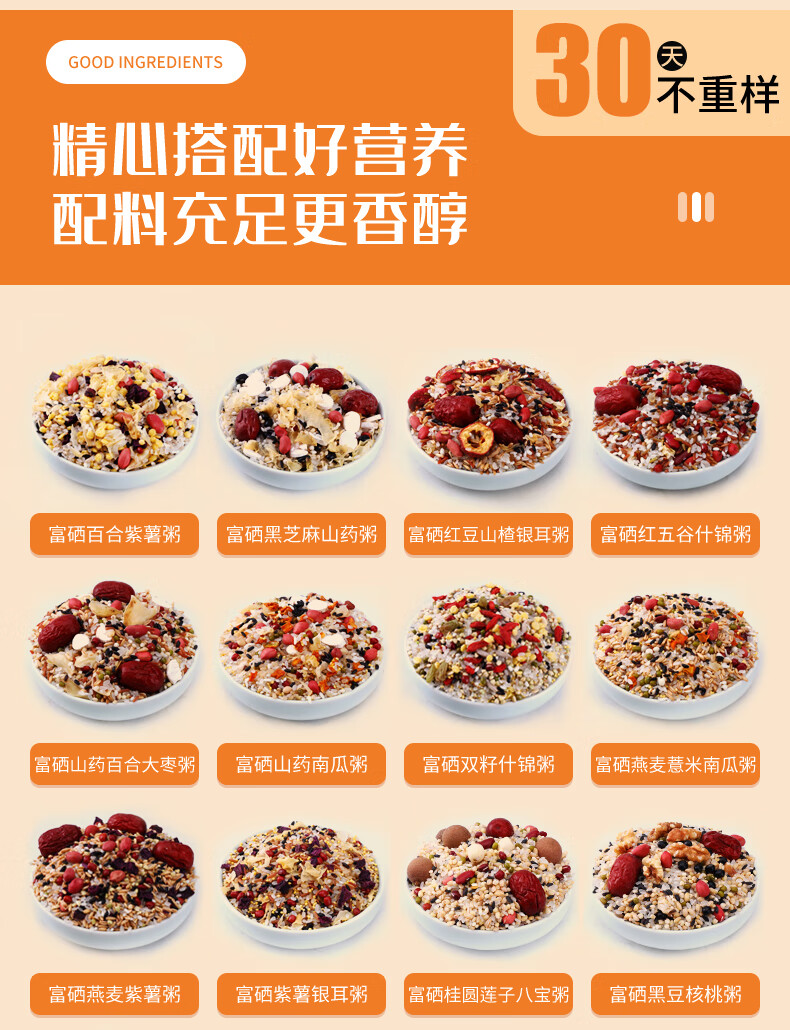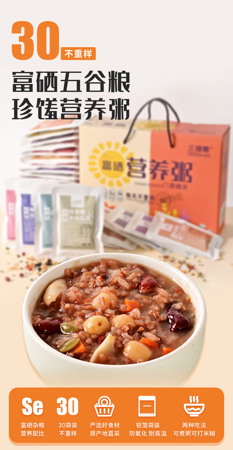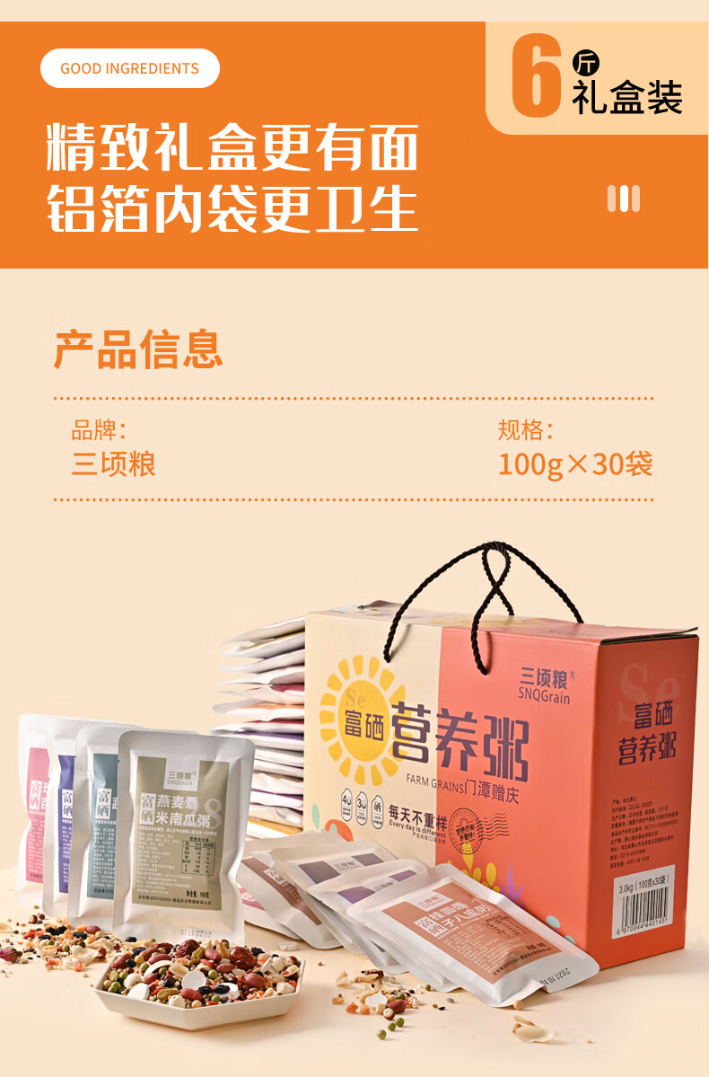 三顷粮30日富硒营养杂粮粥料 年货礼盒6斤 30袋不重样五谷早餐八宝粥米
