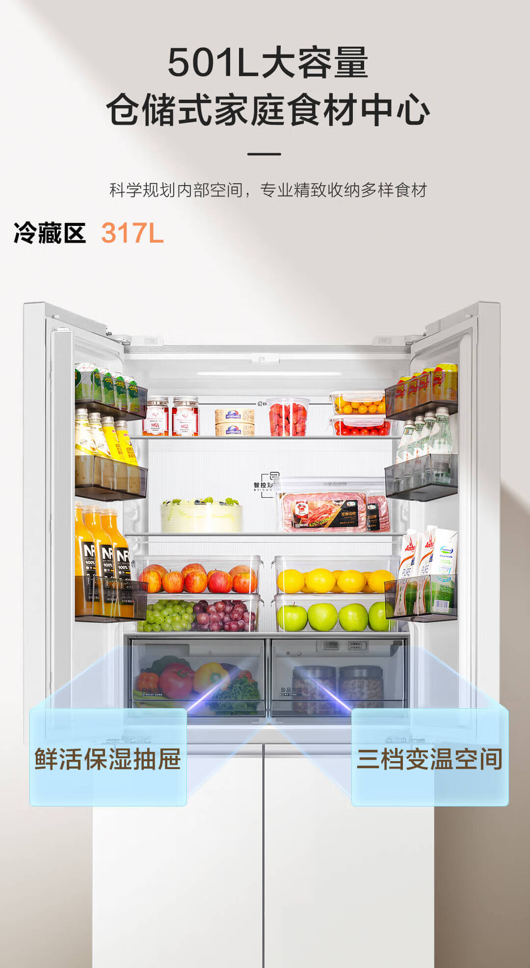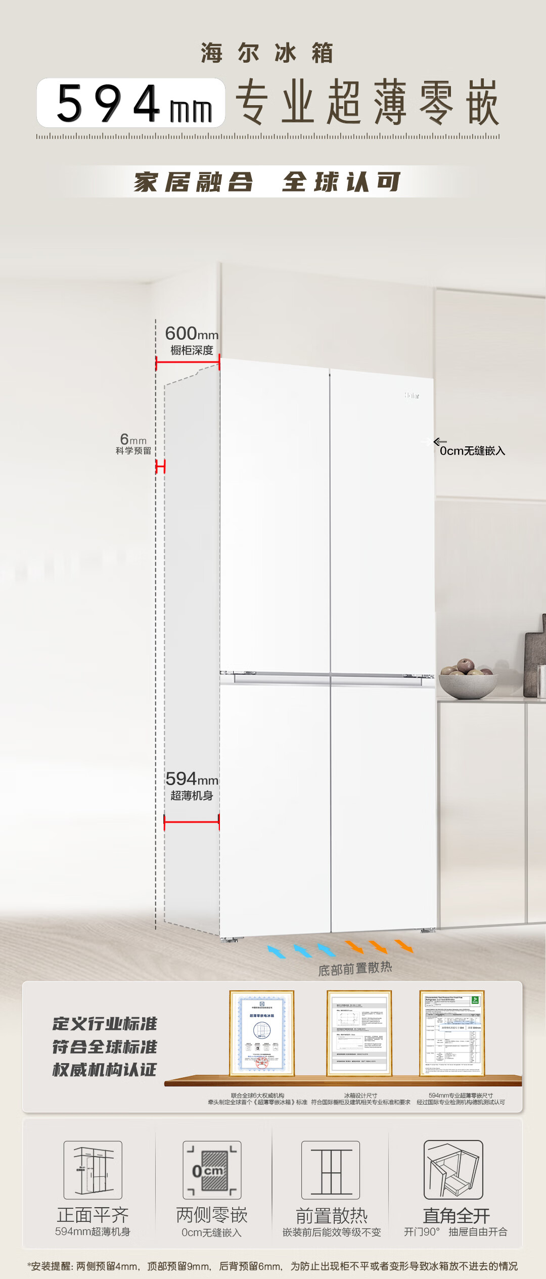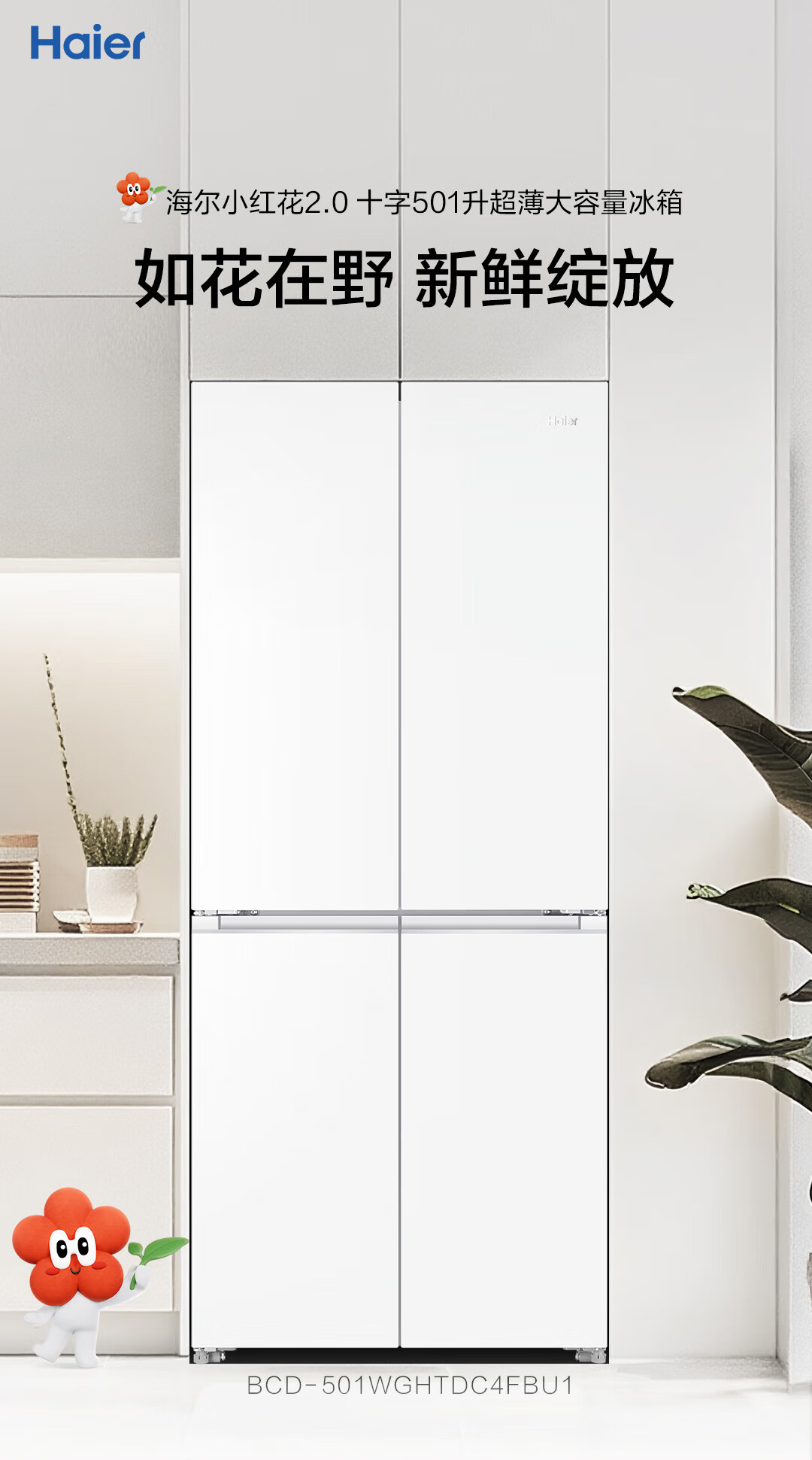 海尔(Haier)「小红花2.0」501升双系统594超薄零嵌十字门双循环家用电冰箱BCD-501WGHTDC4FBU1国家补贴20%