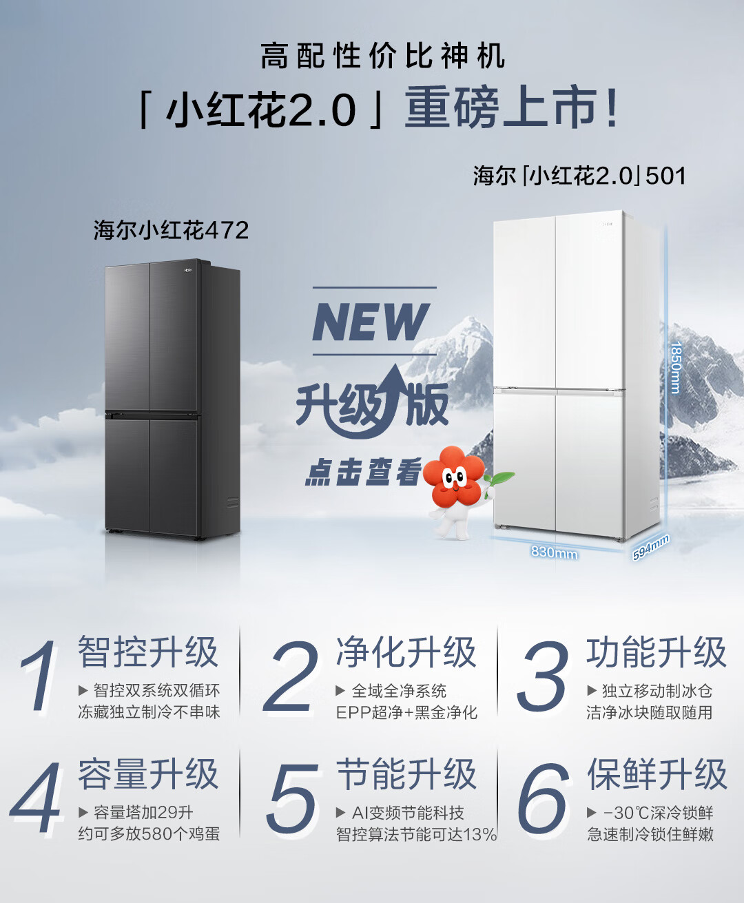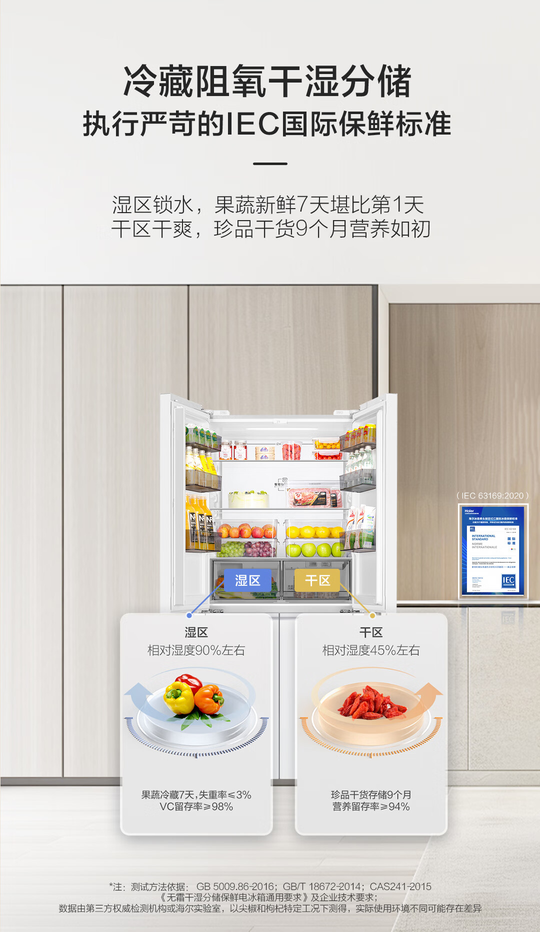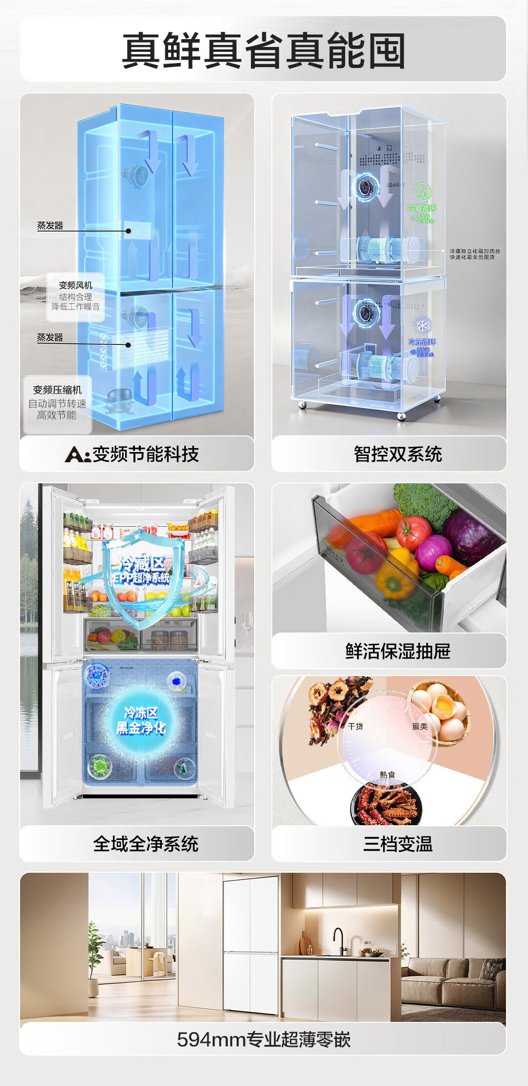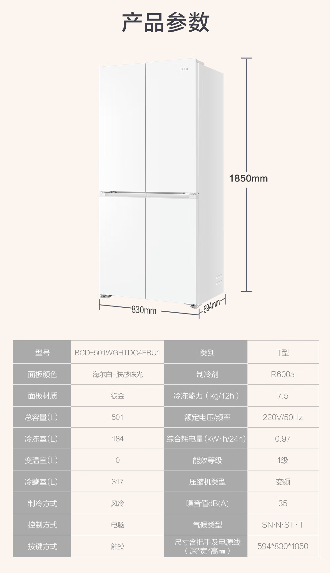 海尔(Haier)「小红花2.0」501升双系统594超薄零嵌十字门双循环家用电冰箱BCD-501WGHTDC4FBU1国家补贴20%