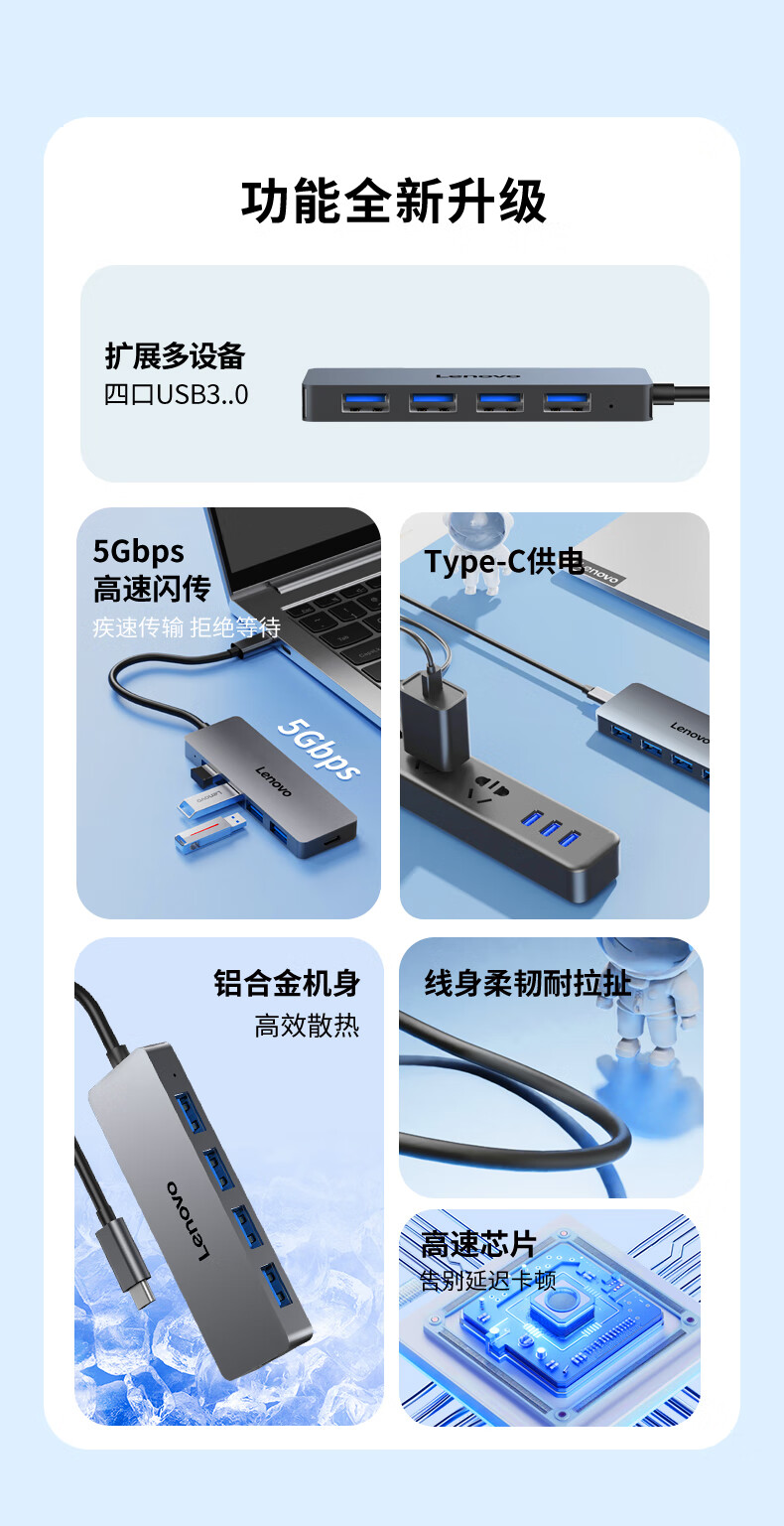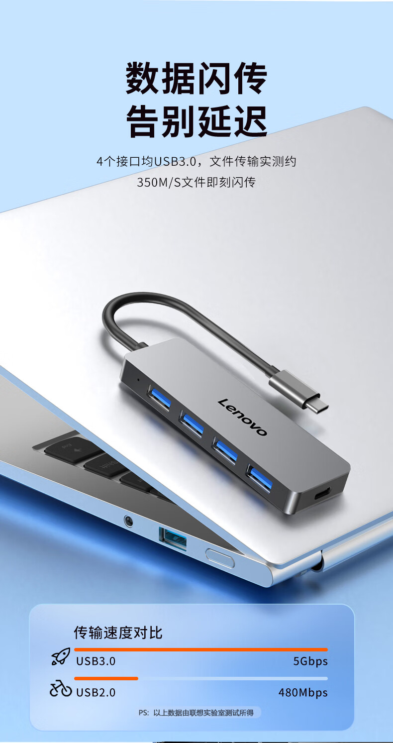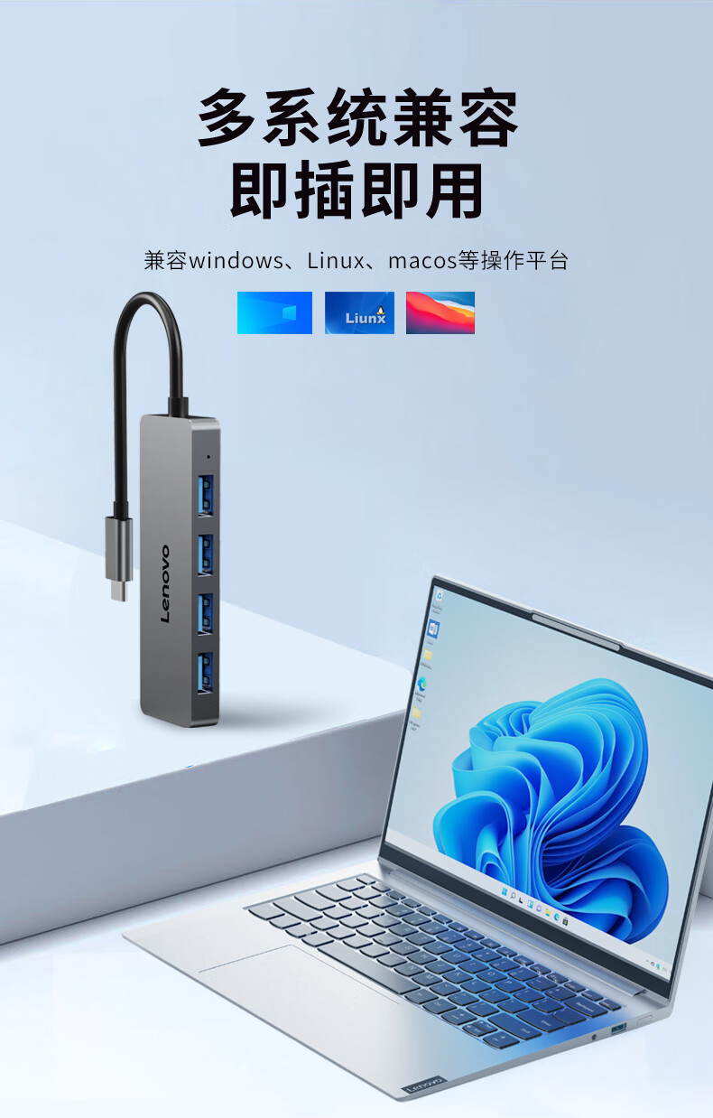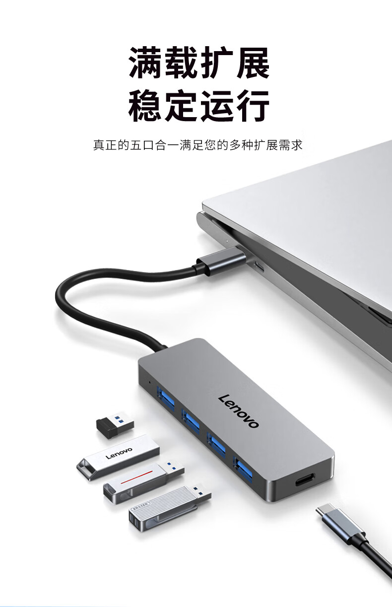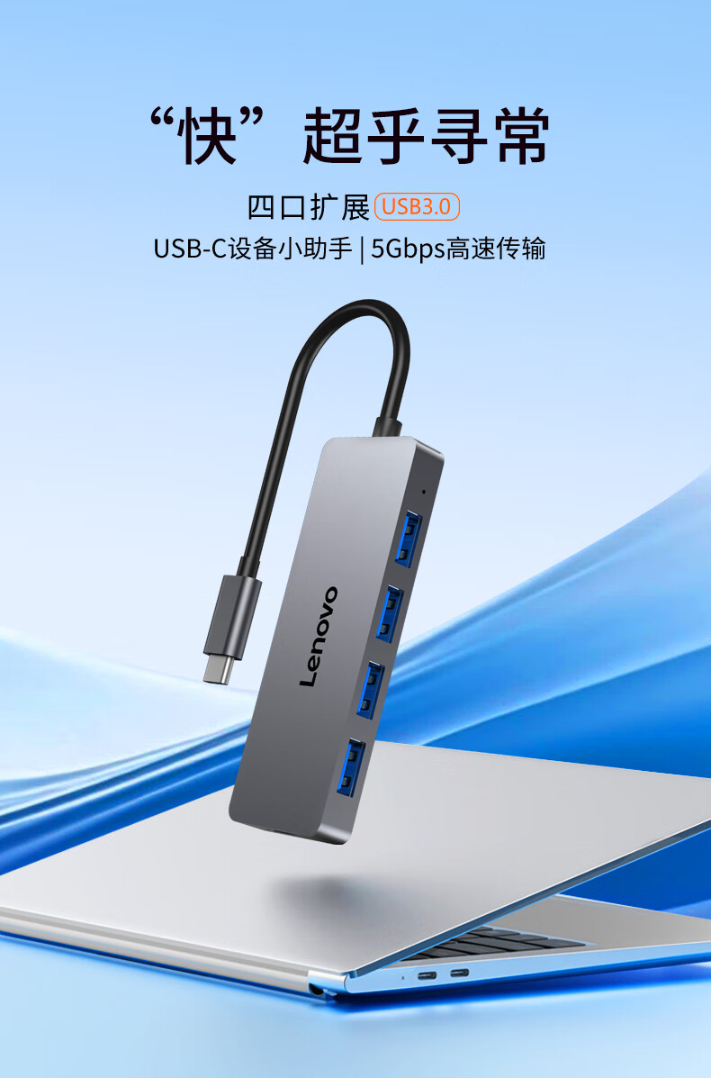 联想(Lenovo)Type-C扩展坞分线器4口高速拓展坞笔记本电脑延长线四合一转换器扩展器小新拯救者转换头通用