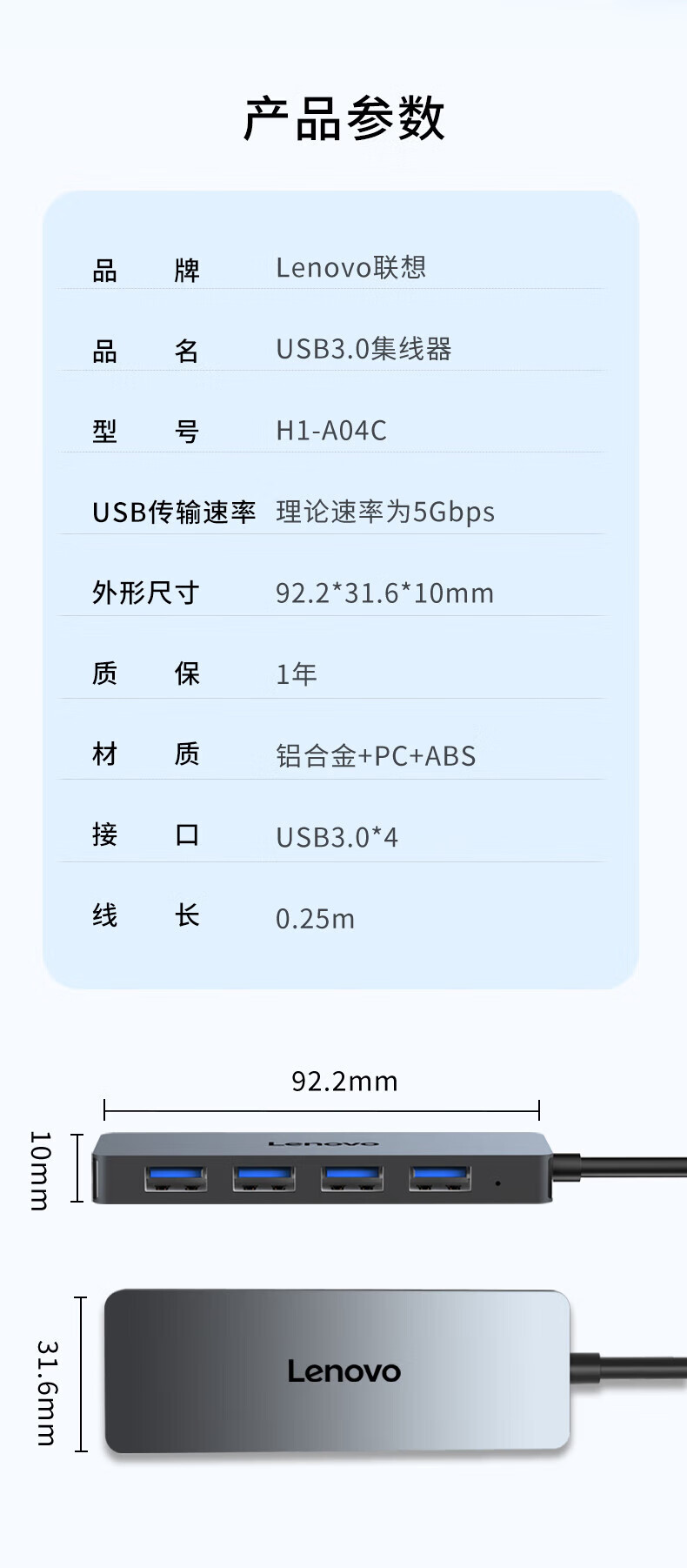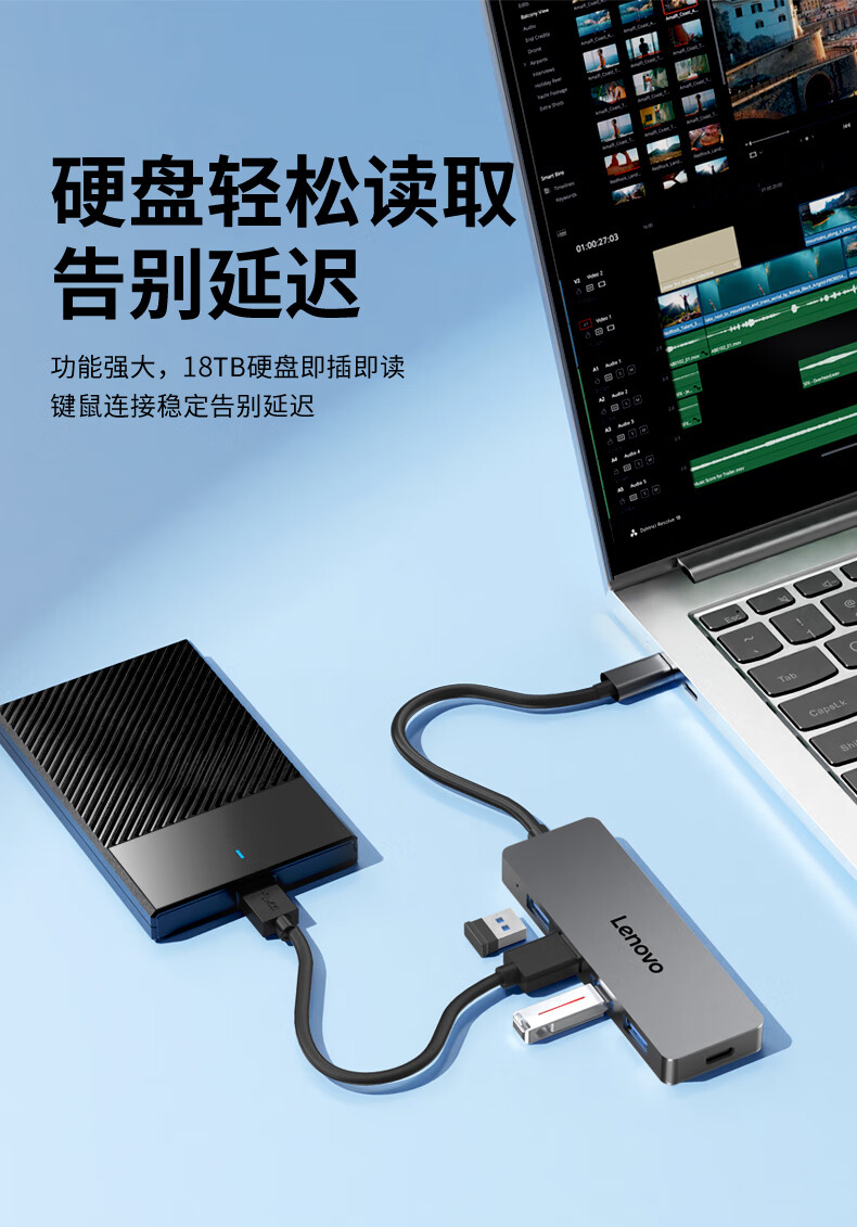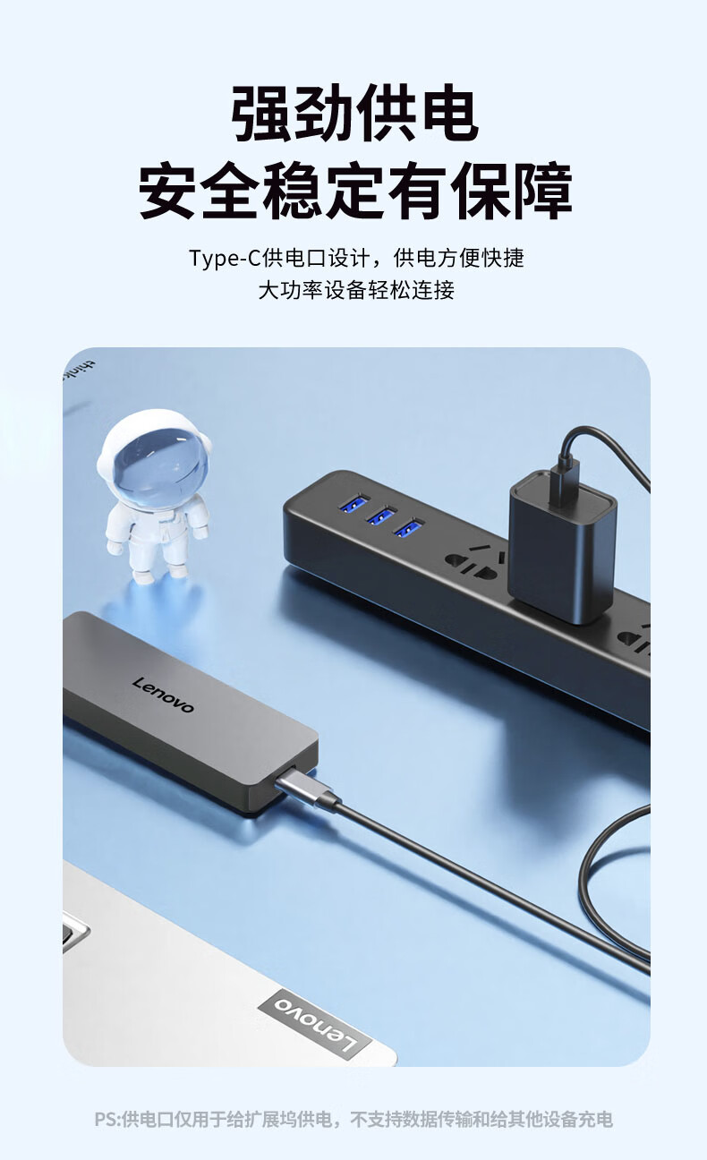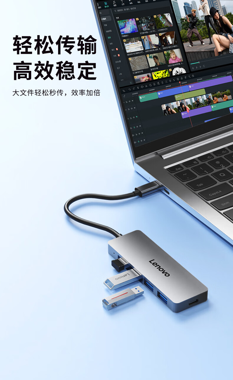 联想(Lenovo)Type-C扩展坞分线器4口高速拓展坞笔记本电脑延长线四合一转换器扩展器小新拯救者转换头通用