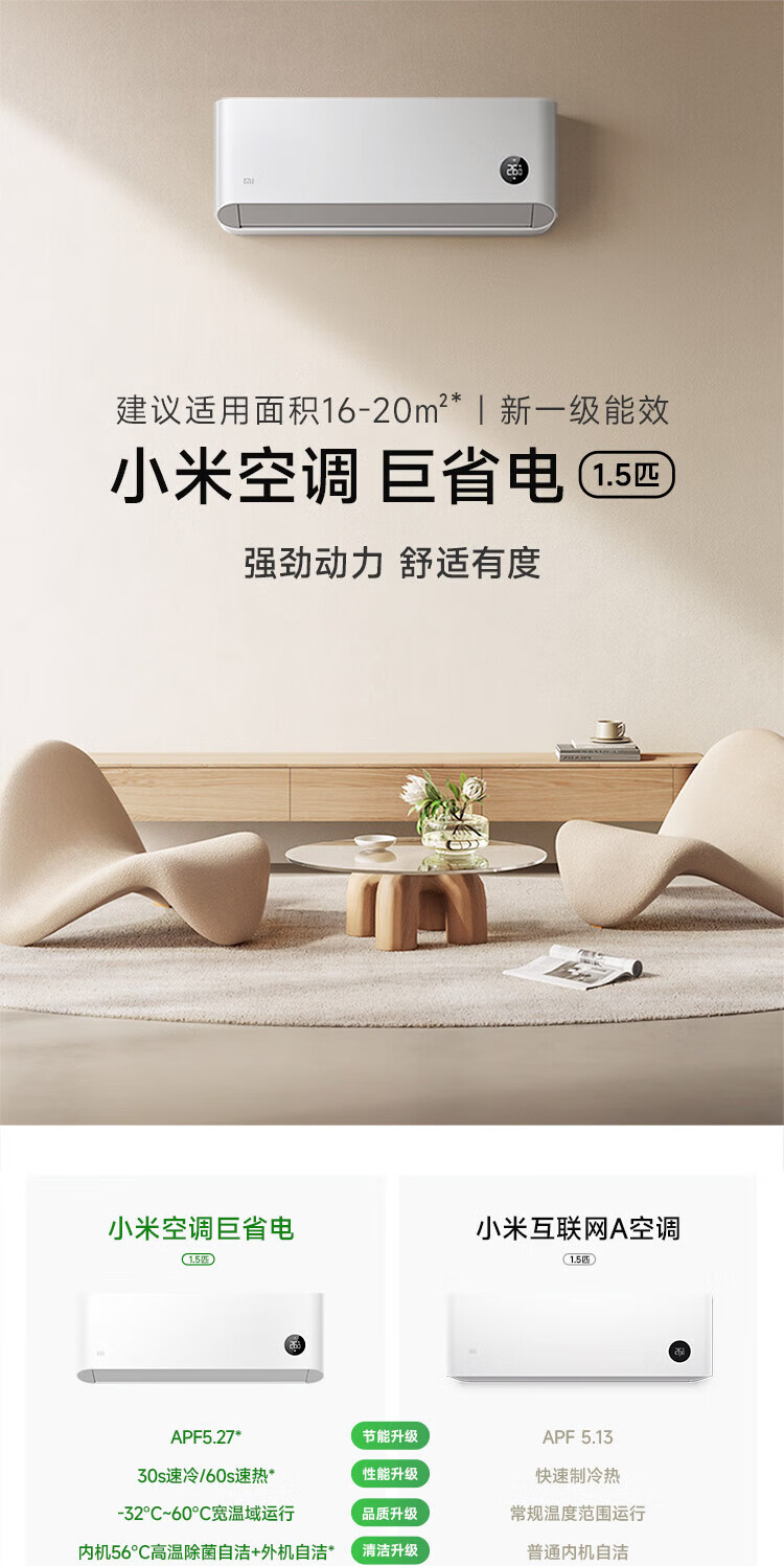 小米(MI)空调套装 两室一厅 巨省电 新一级能效 变频冷暖 壁挂式智能防直吹舒适家用空调柜挂套装 【两室一厅】3匹柜+1.5匹挂+大一匹挂