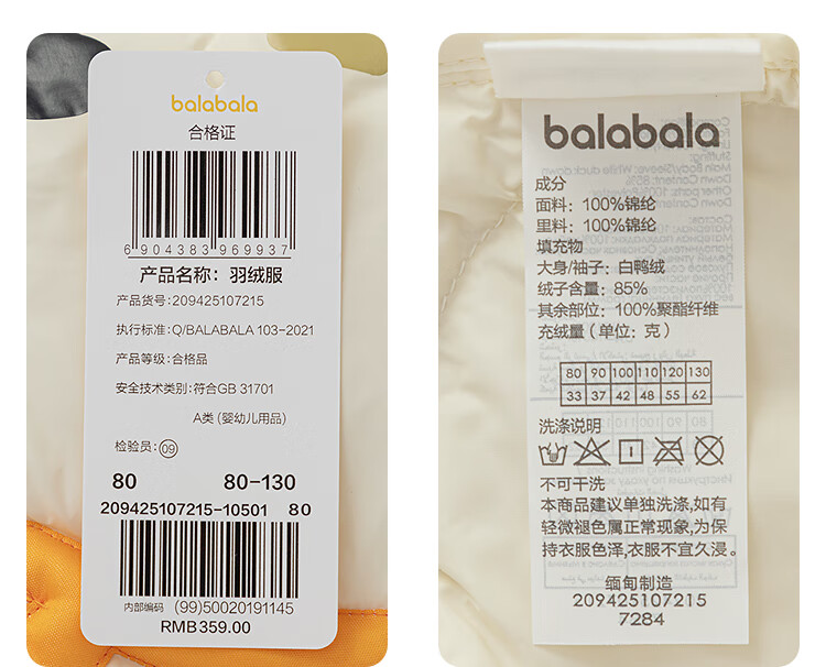 巴拉巴拉童装儿童羽绒服男童女童连帽外套2025秋冬装宝宝可爱209425107215