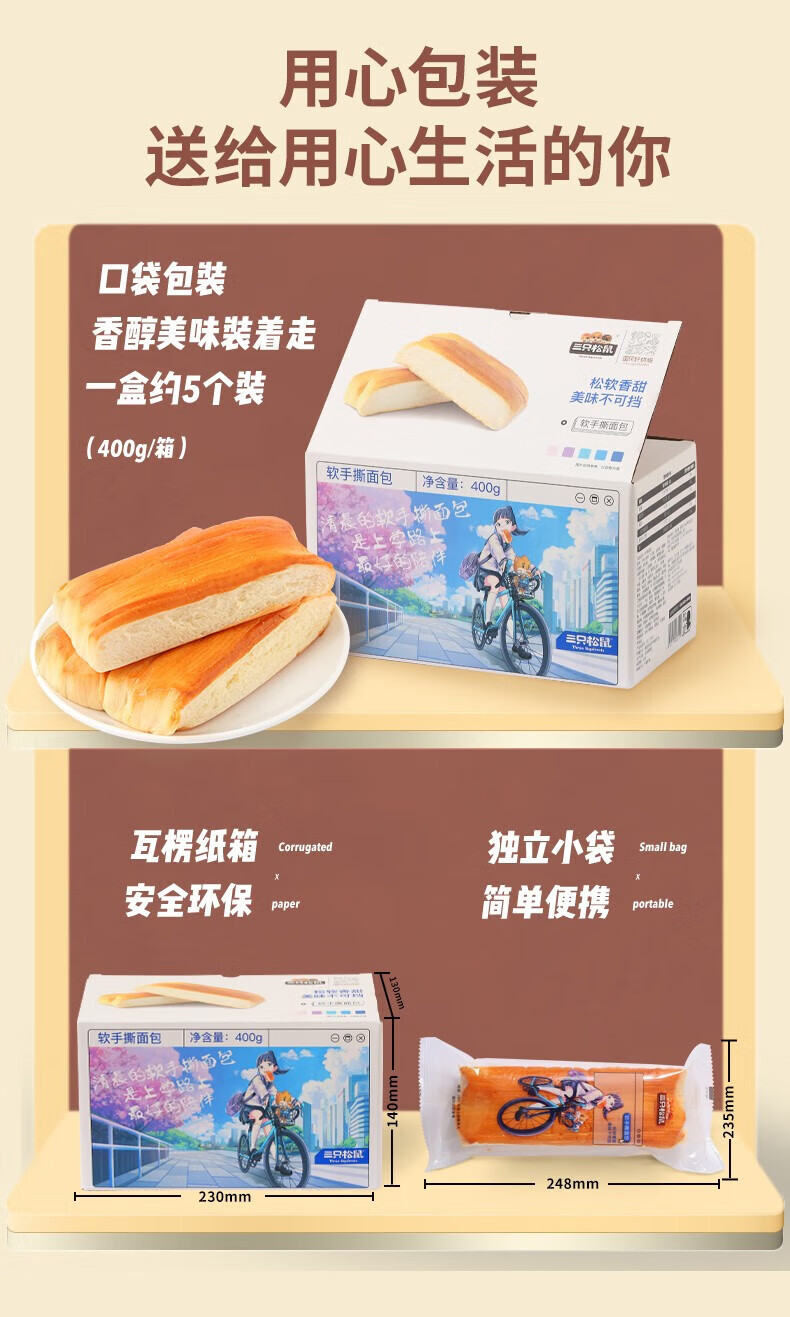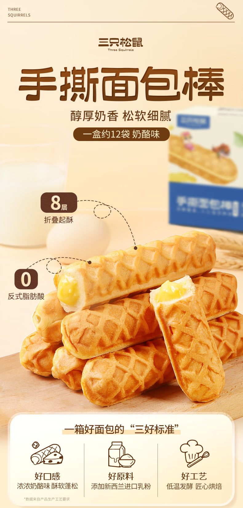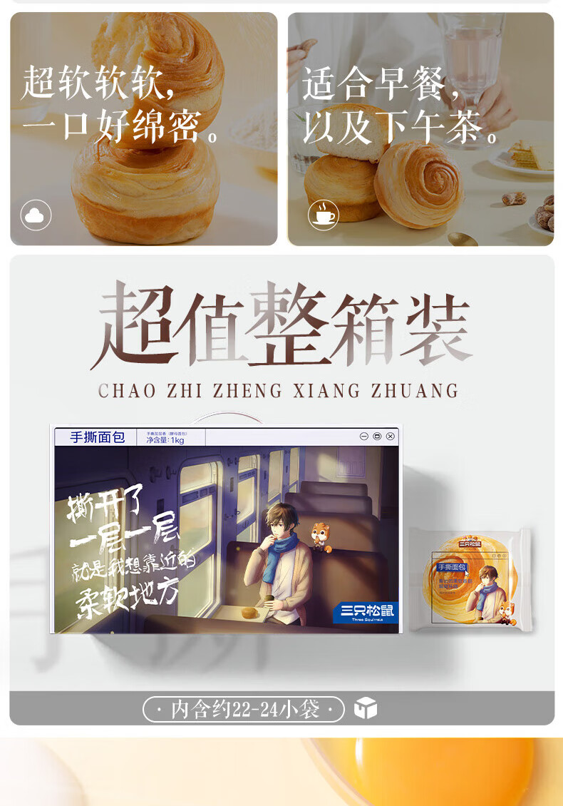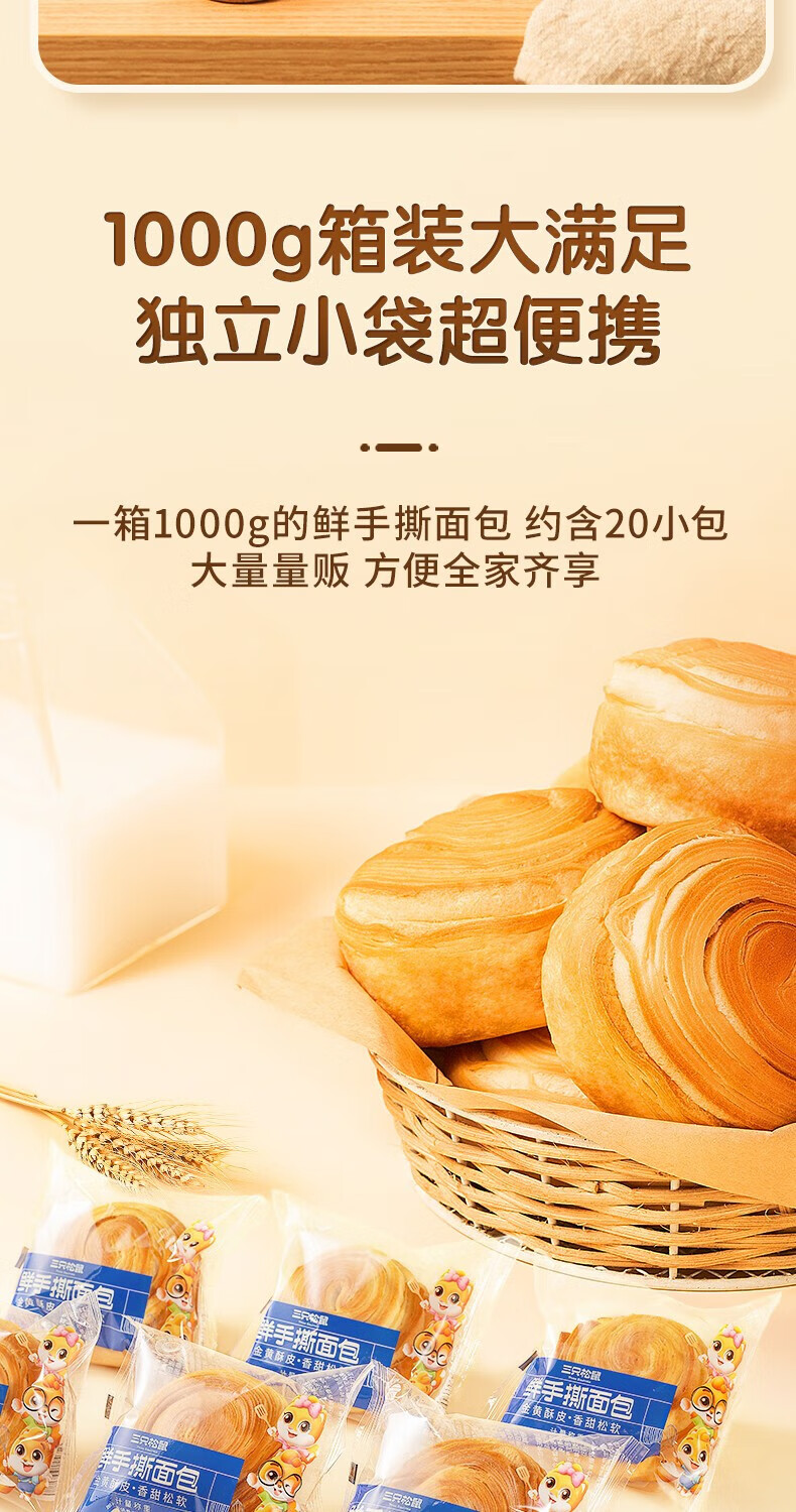 三只松鼠手撕面包代餐休闲零食点心孕妇儿童生日软面包早餐礼盒 【组合三箱款】手撕棒*1+蛋白棒*1+厚切吐司*1