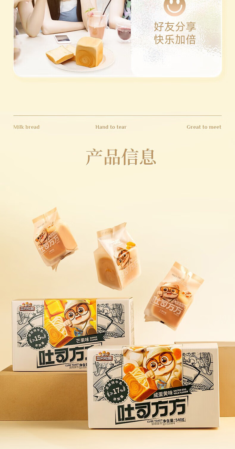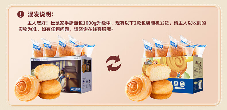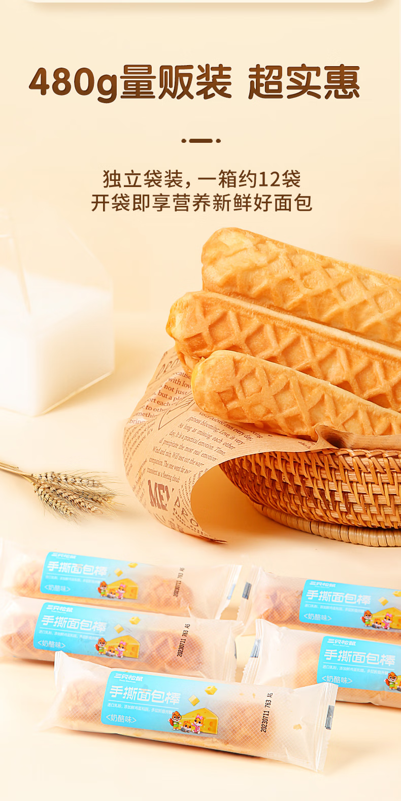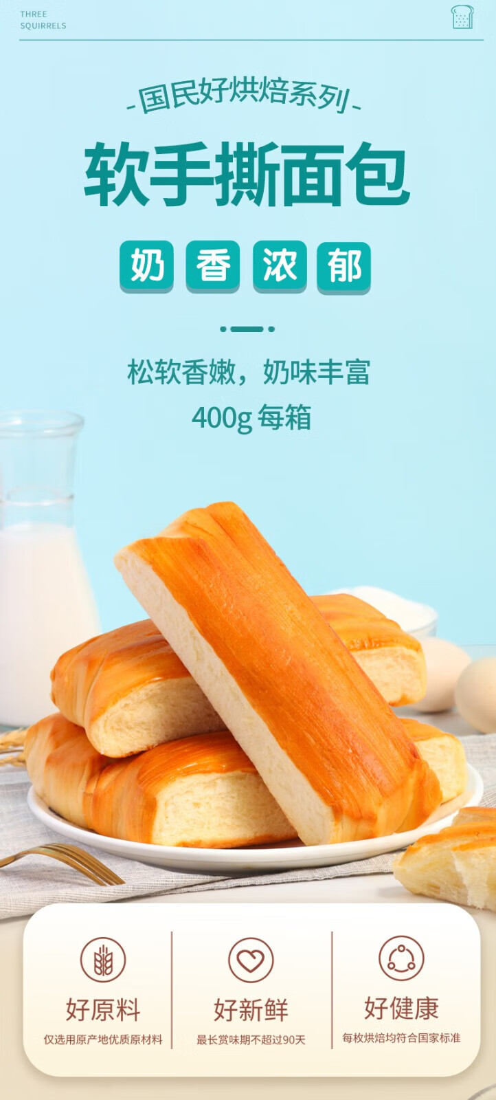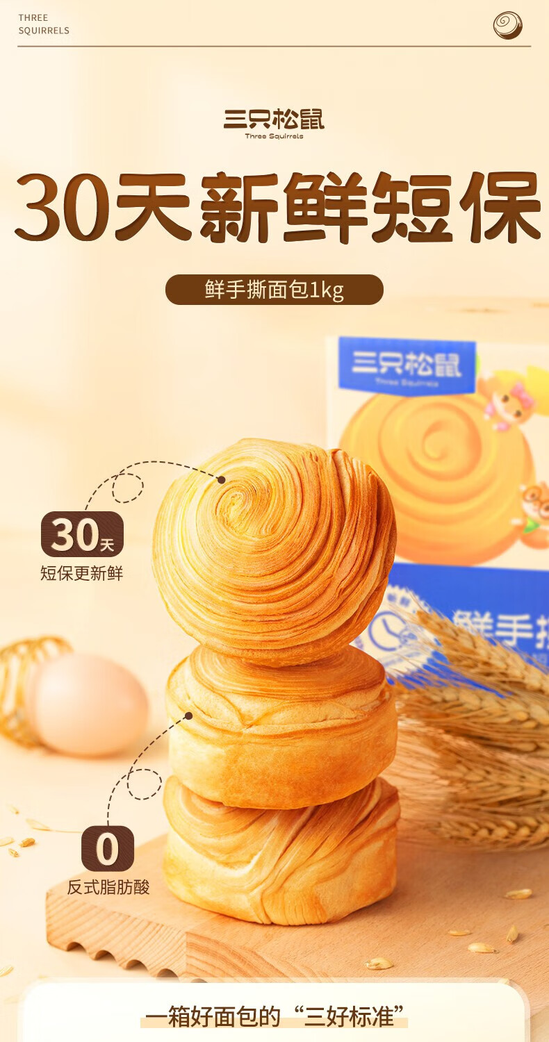 三只松鼠手撕面包代餐休闲零食点心孕妇儿童生日软面包早餐礼盒 【组合三箱款】手撕棒*1+蛋白棒*1+厚切吐司*1