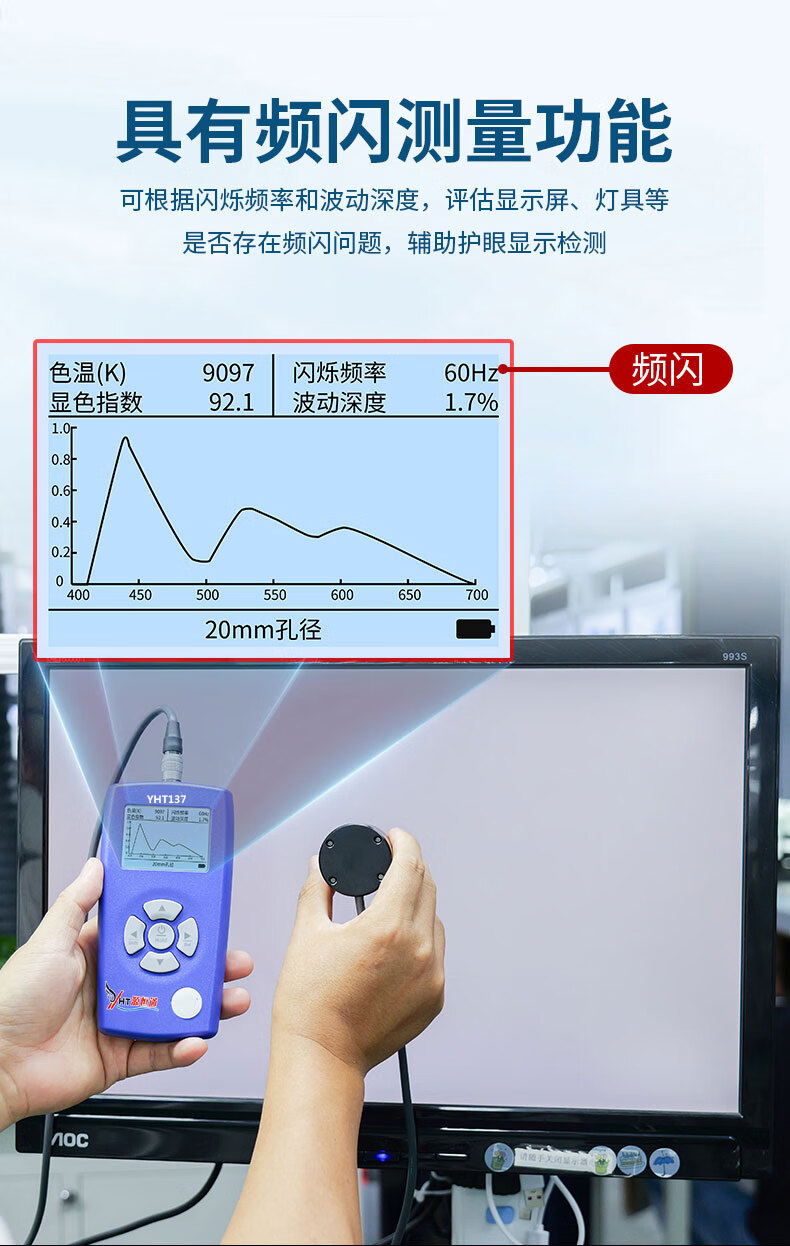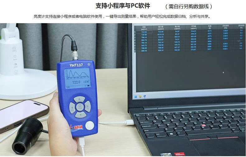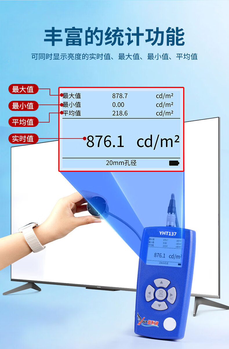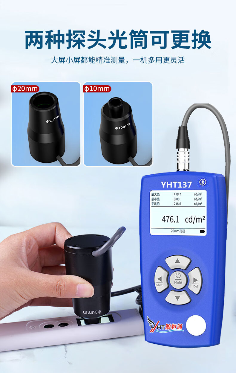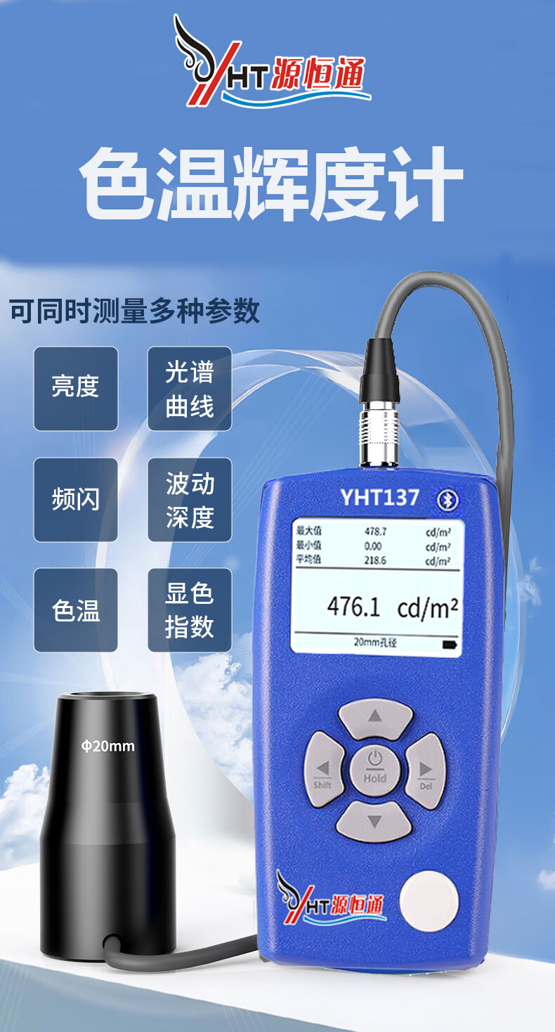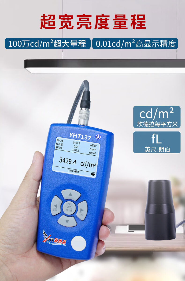 源恒通(YHT)蓝牙款辉度计路灯液晶屏幕亮度计CD坎德拉发光强度测试仪器测光仪 YHT137辉度值1-100万cd/㎡色温10万K