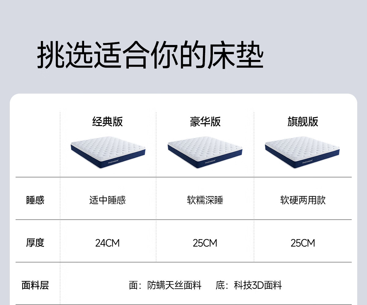 帕沙曼床垫独立弹簧家用乳胶软垫子黄麻偏硬席梦思厚床垫Z0053 软硬两用丨25cm厚】独立弹簧+乳胶+慢回弹记忆棉+黄麻 1500*2000mm