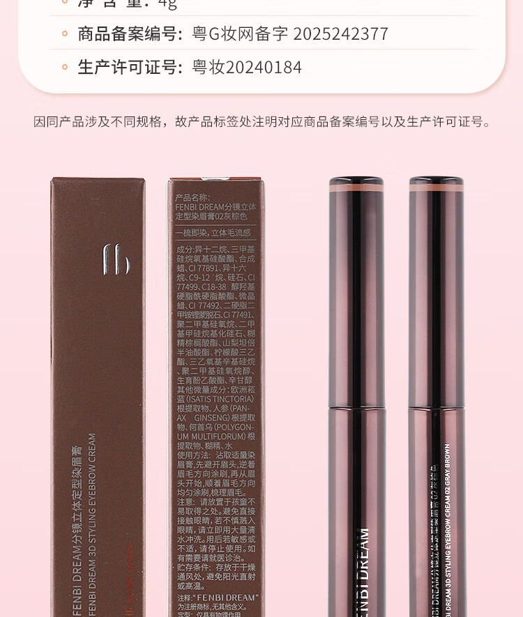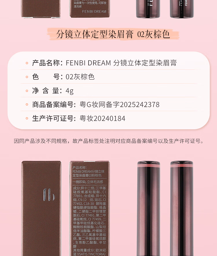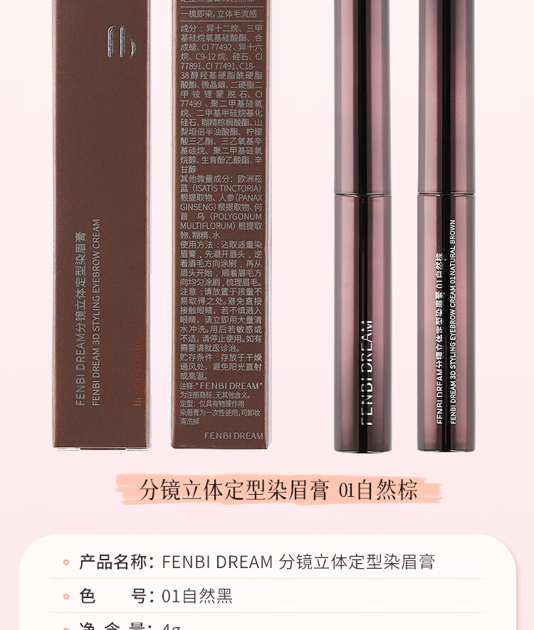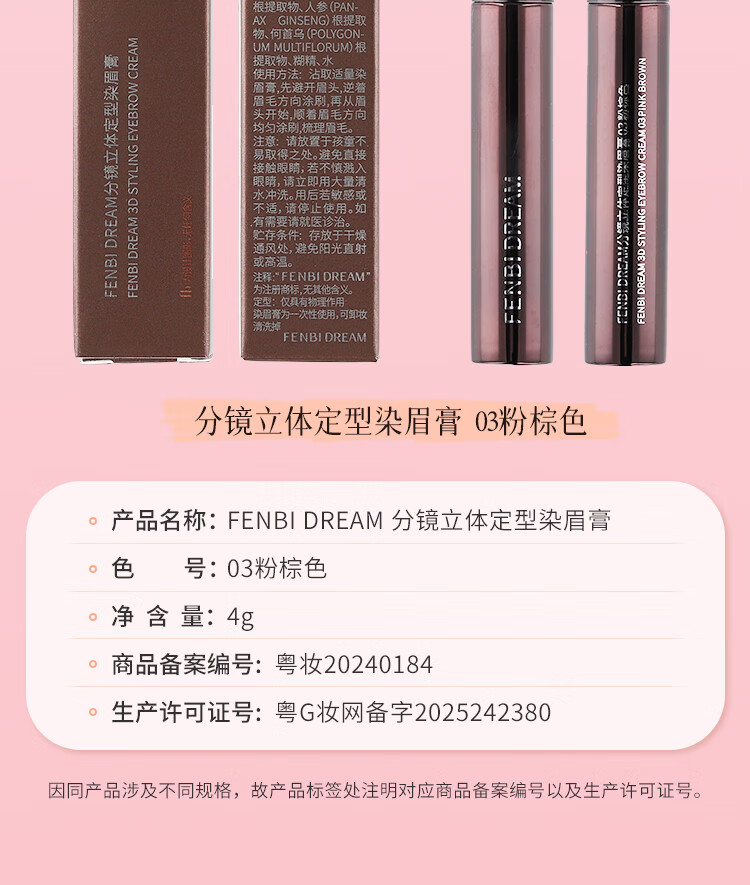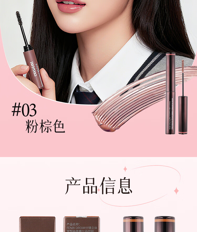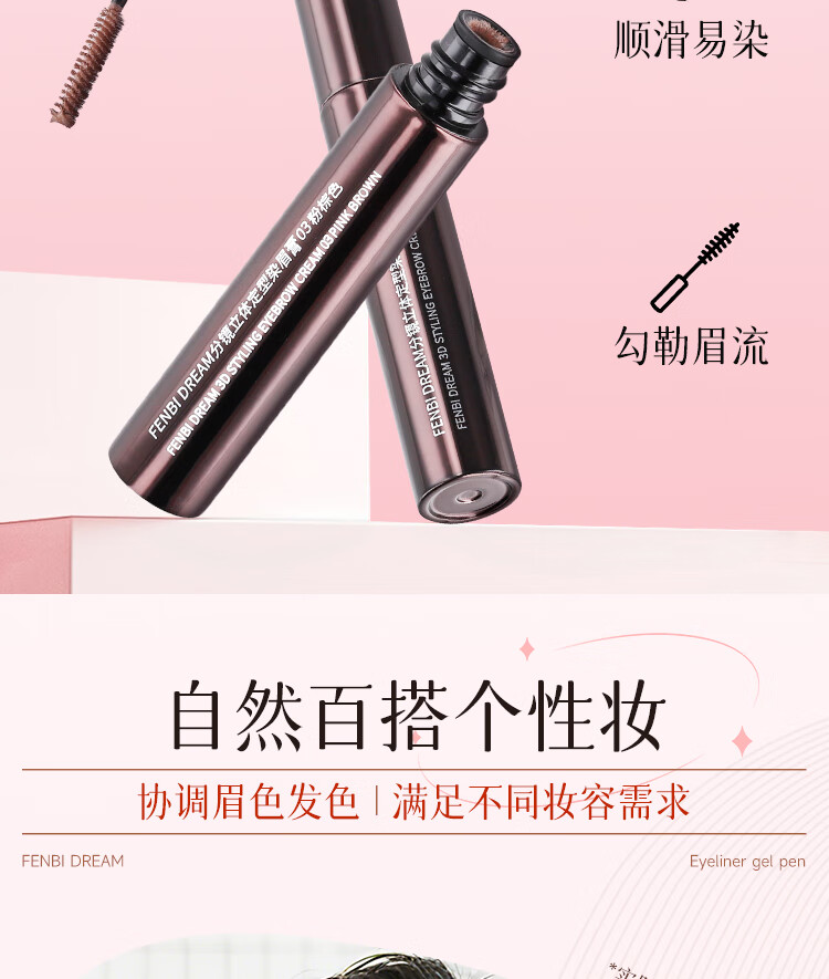 粉婢FENBI DREAM分镜立体定型染眉膏 眉毛染膏染眉剂野生眉新手友好 03粉棕色