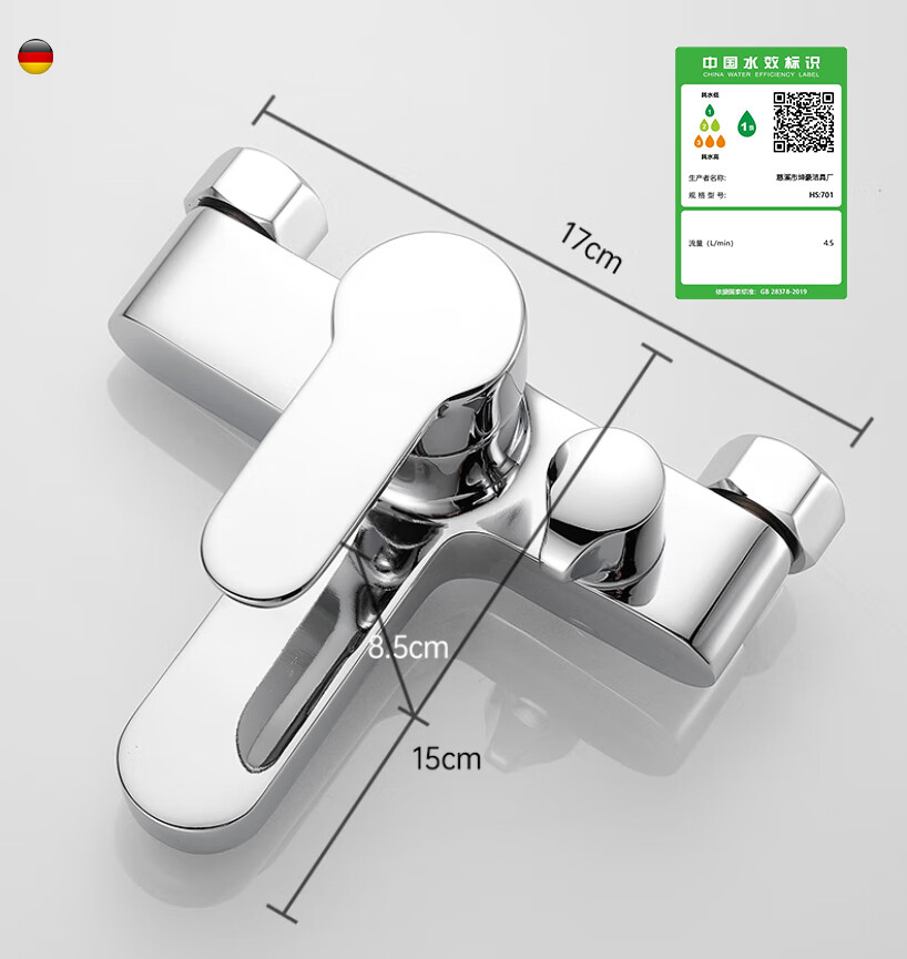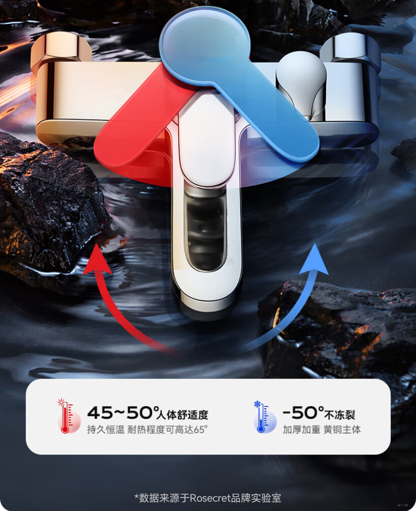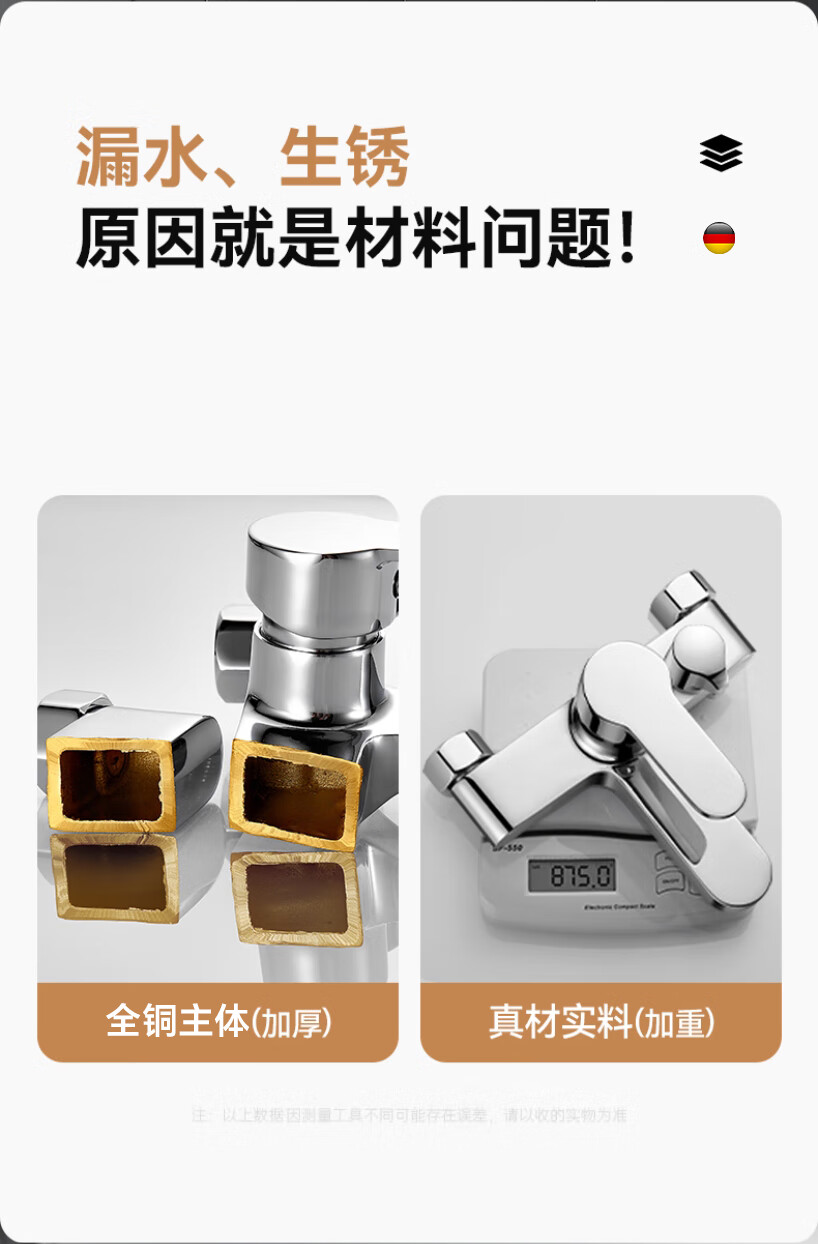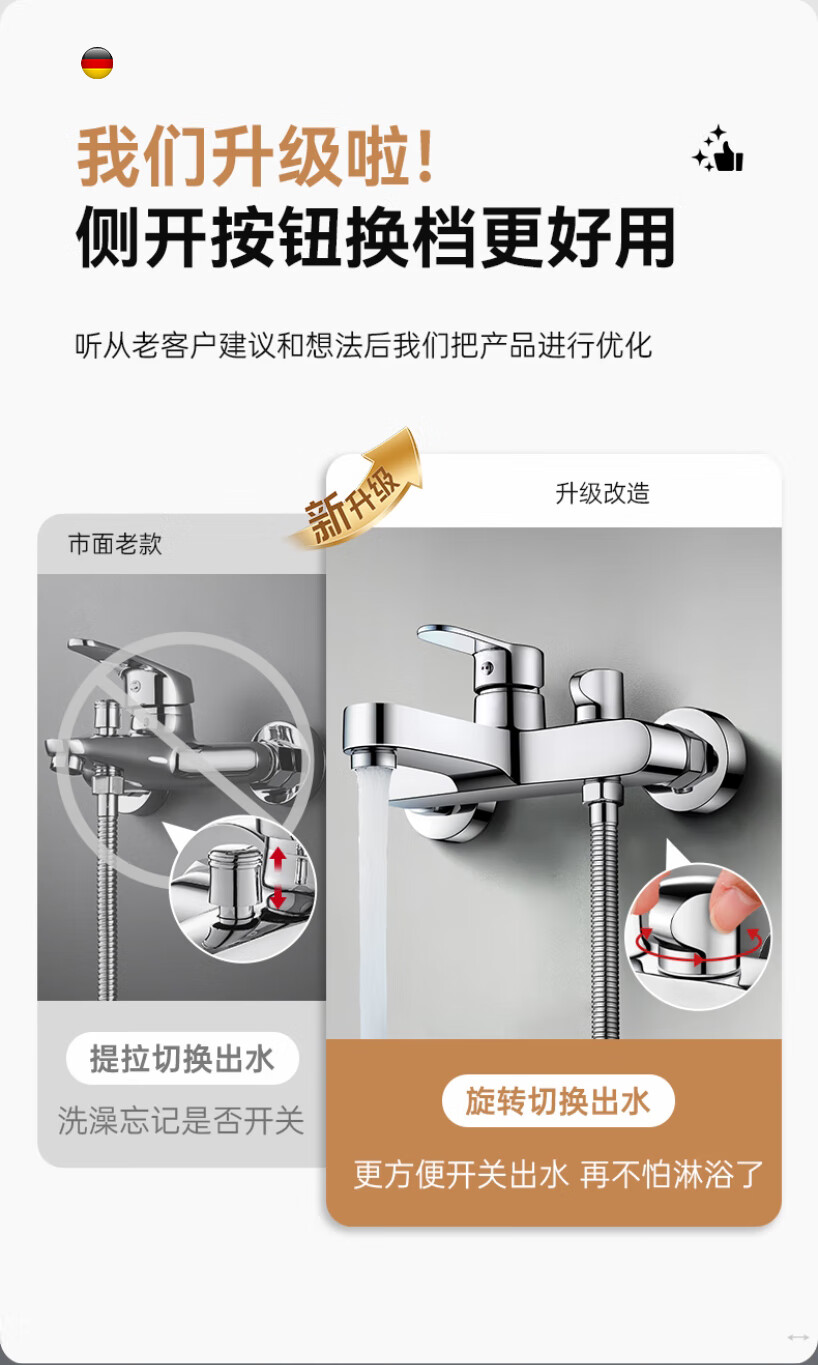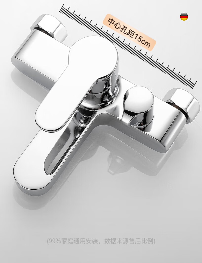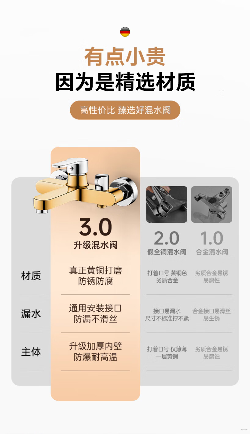 Rosecret【德国】淋浴花洒套装全铜主体浴室卫生间洗澡混水阀增压花洒一套 【旗舰款】3档淋浴混水阀套装-亮银色 配安装件包+自由升降杆