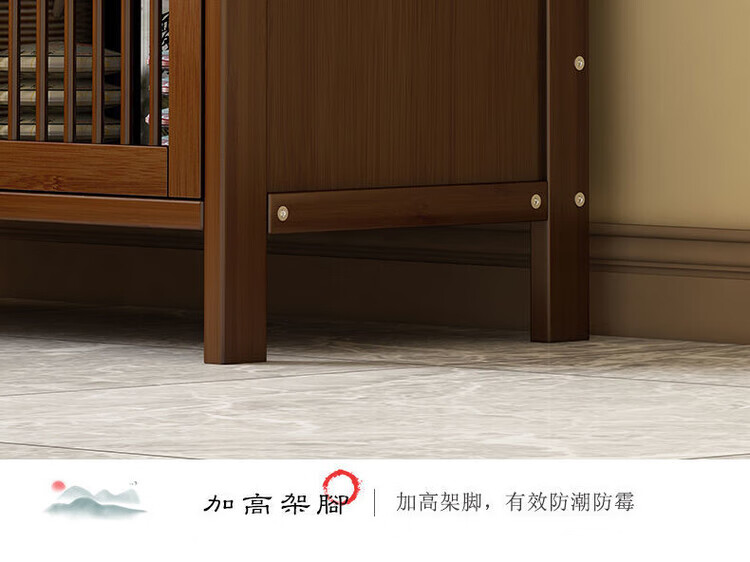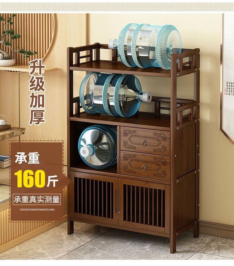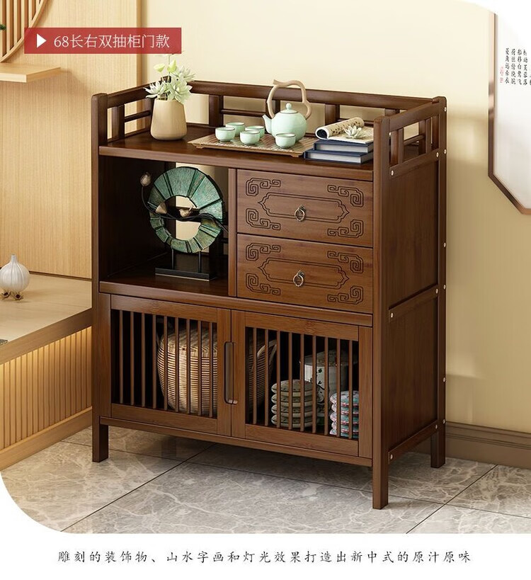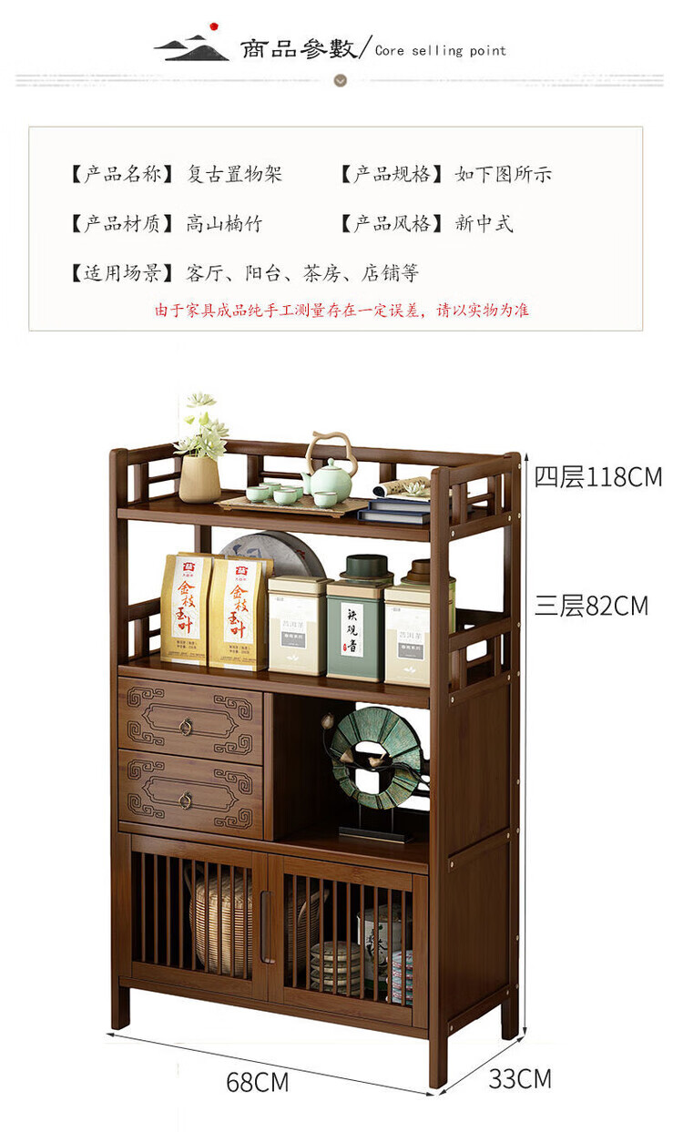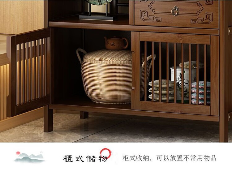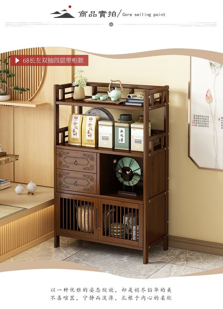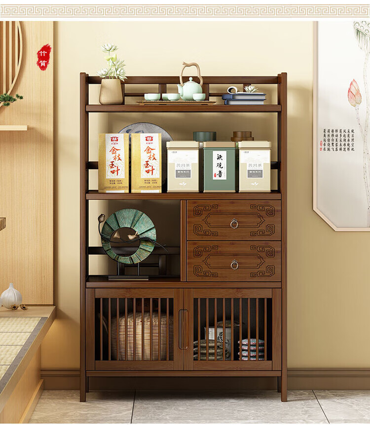 倘然之家博古架新中式茶架茶柜家用茶桌置物架茶叶收纳柜客厅沙发边柜边几 【底部加固】三层68简约款