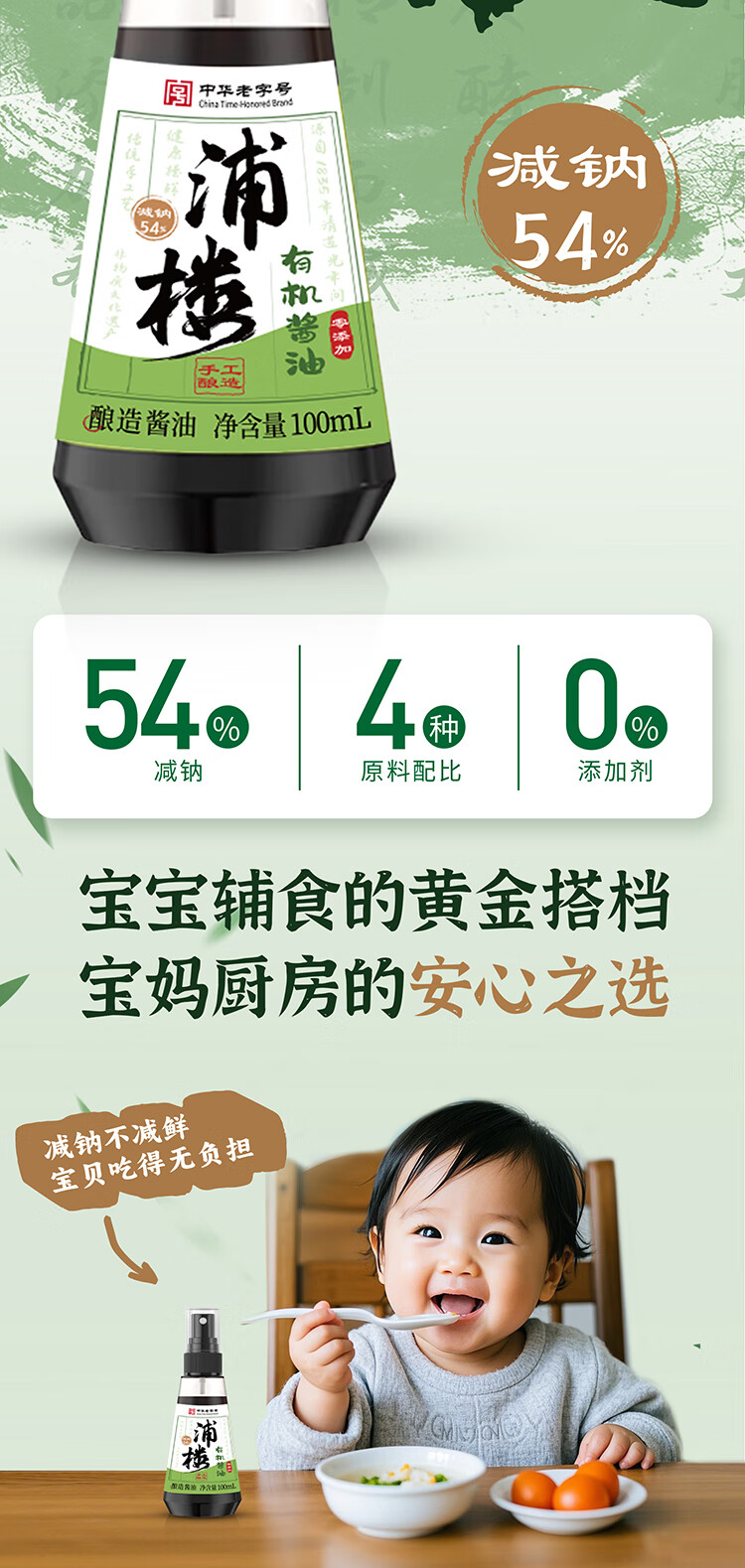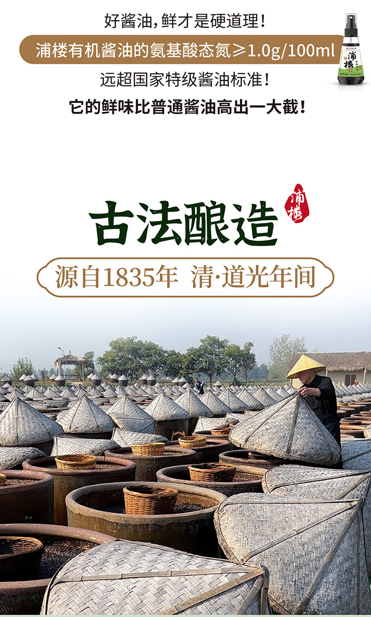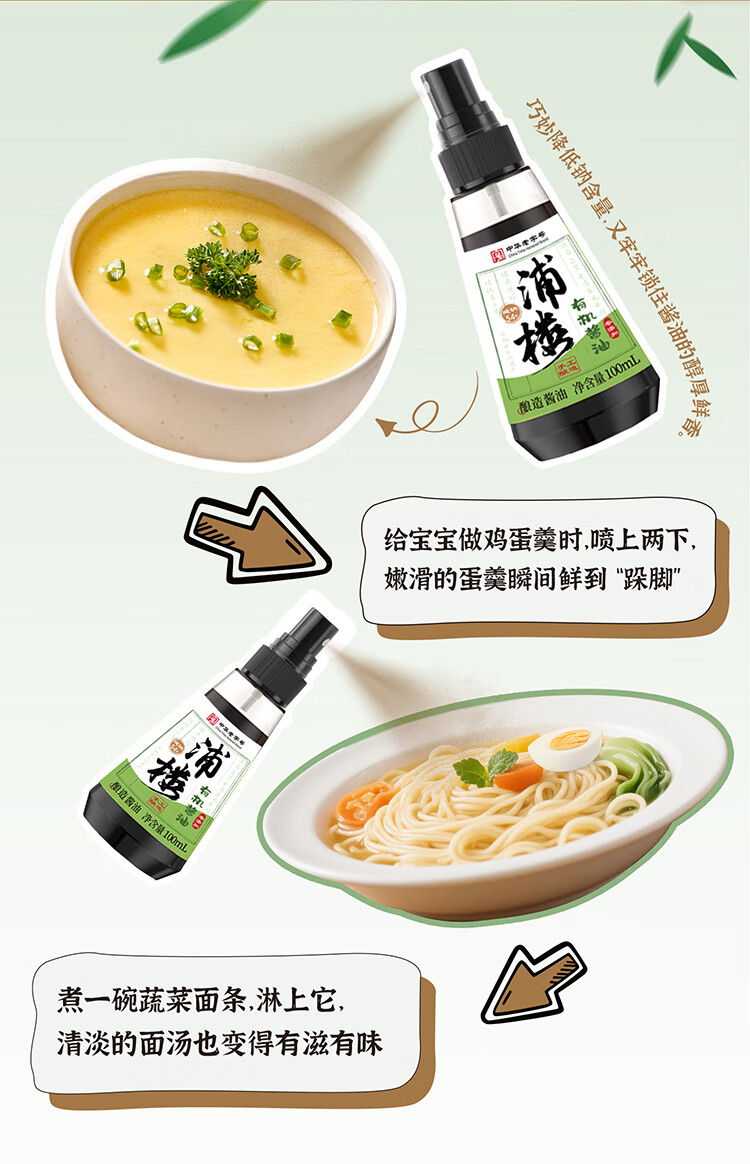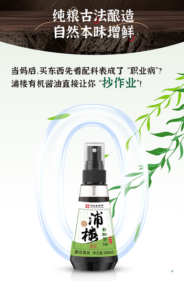 浦楼减盐减钠有机酱油手工古法酿造0无添加特级儿童小瓶专用生抽100ml