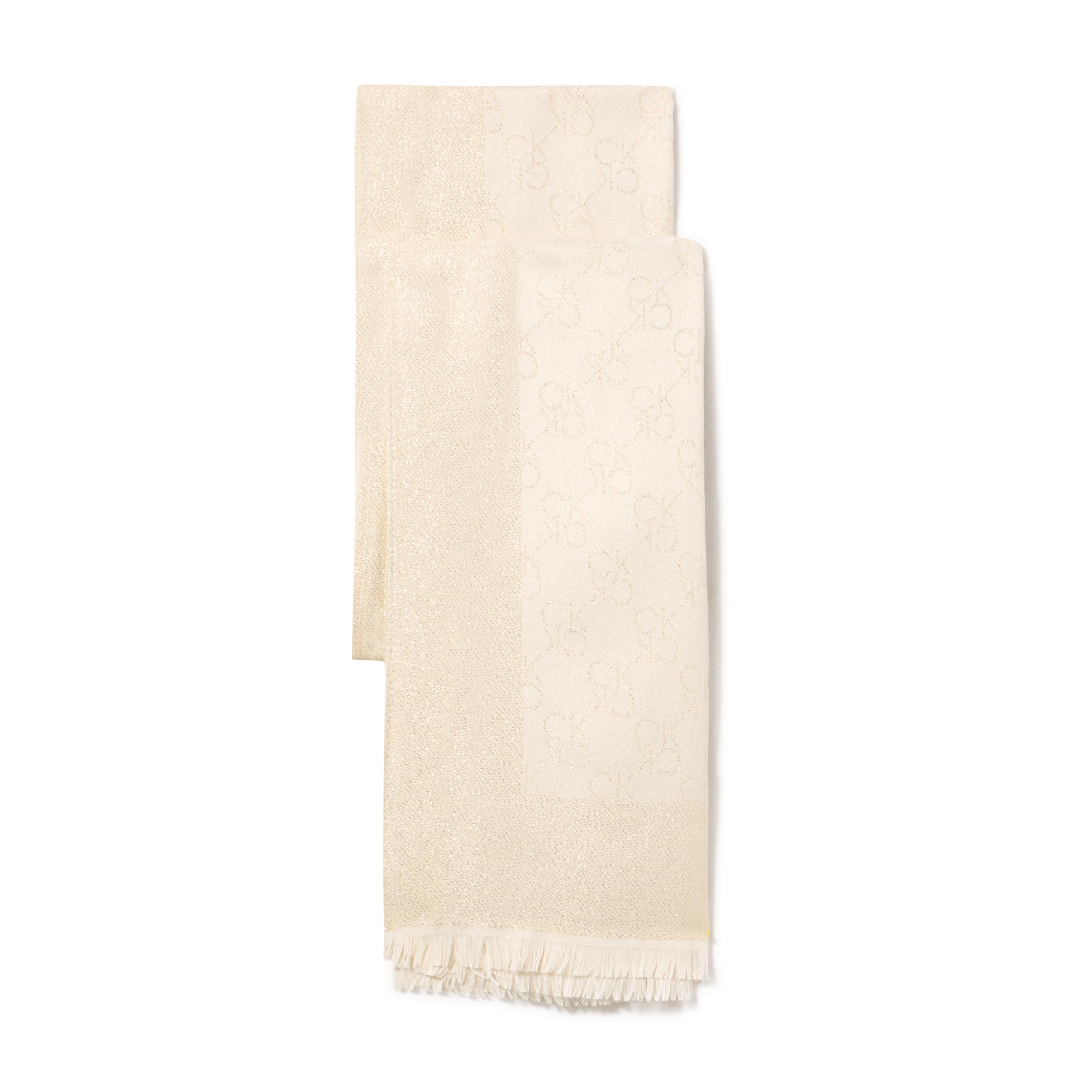 Calvin Klein 女式柔软日常纯色羊绒条纹围巾, 蛋壳白 蛋壳白 One Size