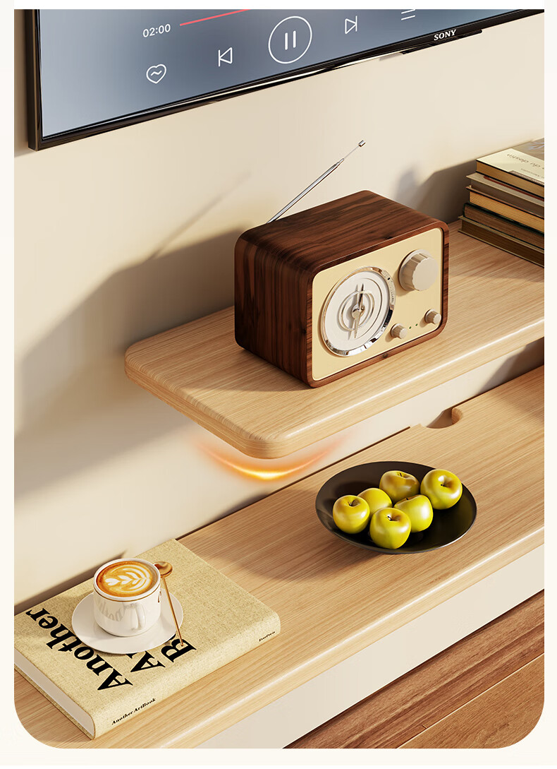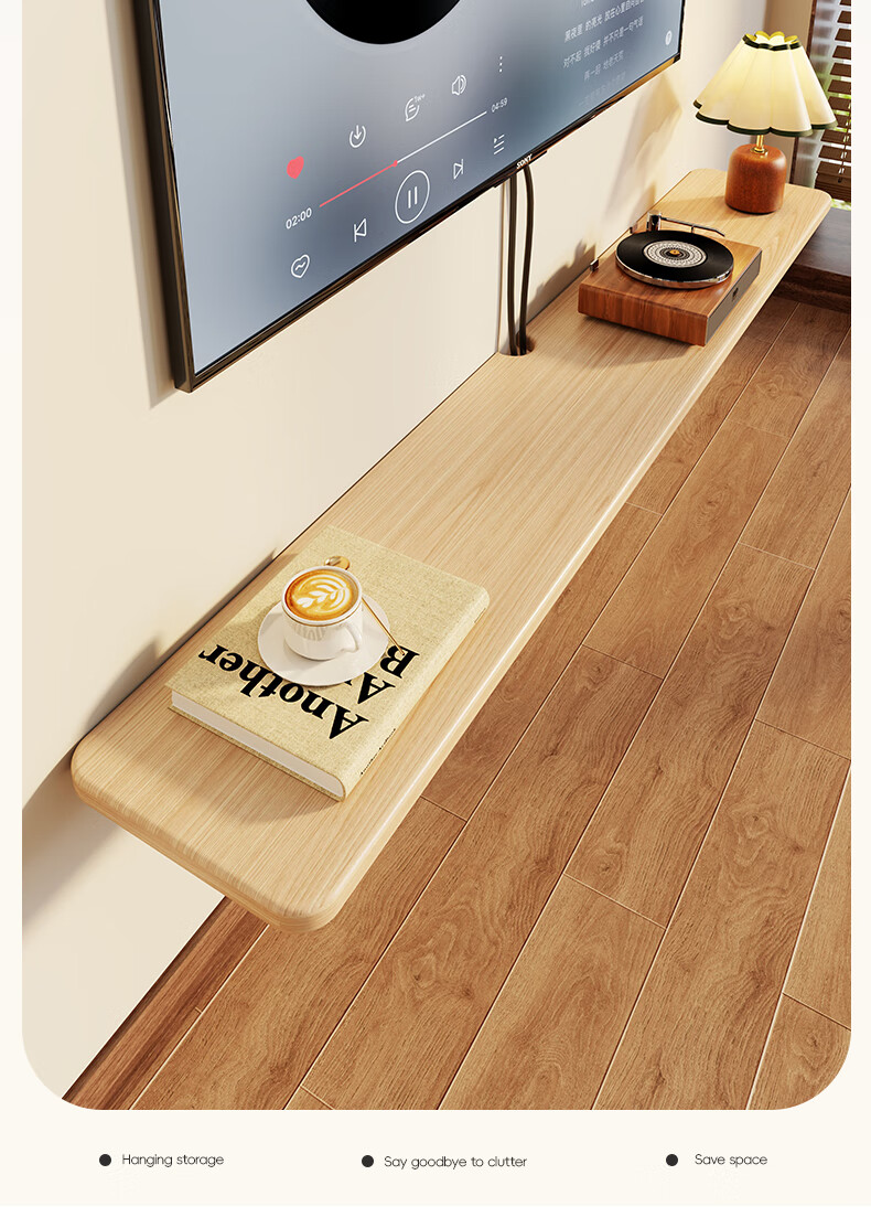 木格格电视柜客厅轻奢高级感2025新款悬空实木一字板置物架家用收纳架子 原木色24*180