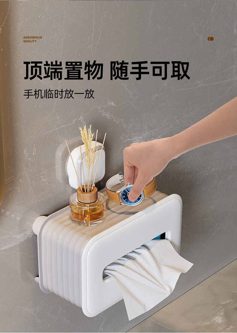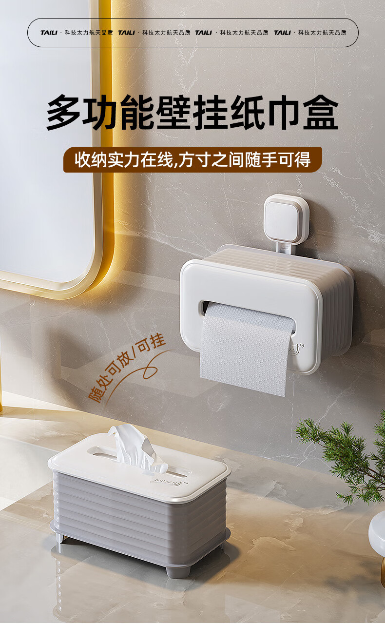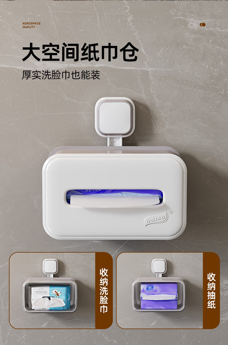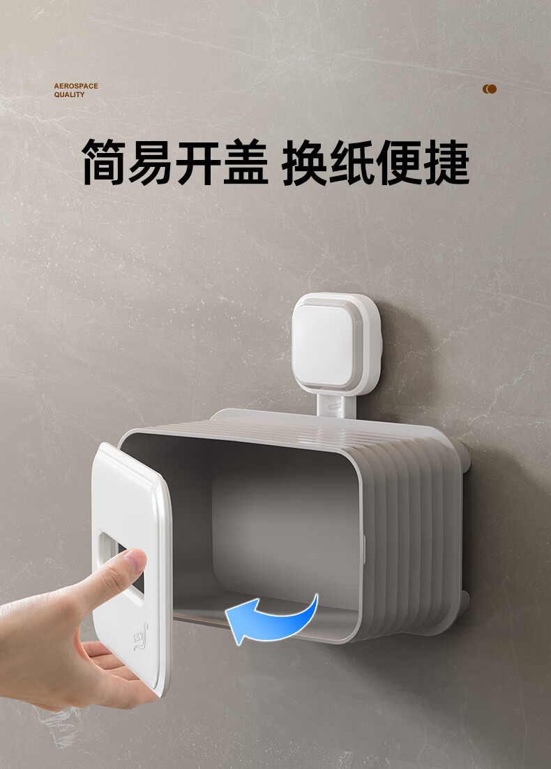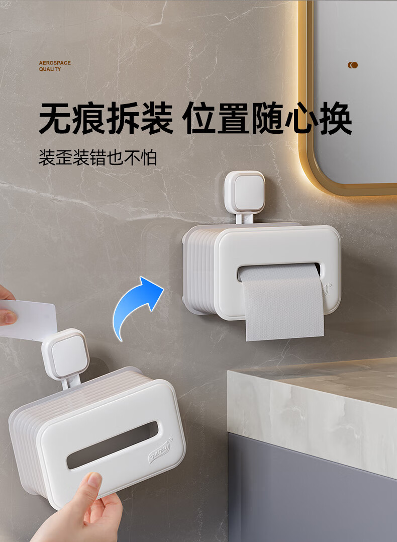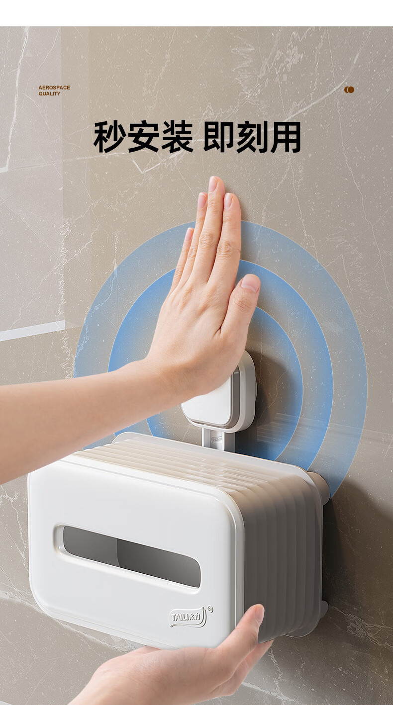 太力壁挂桌面两用纸巾盒免打孔吸盘强力免打孔浴室卫生间纸巾架 【灰白色】1个装
