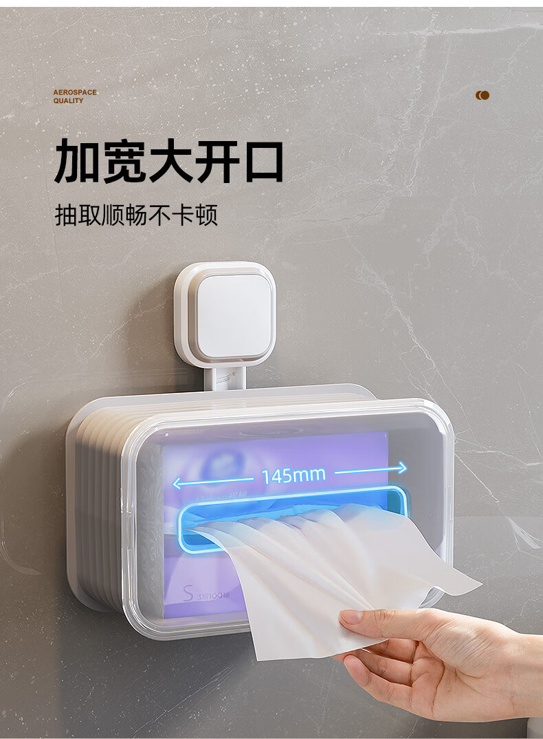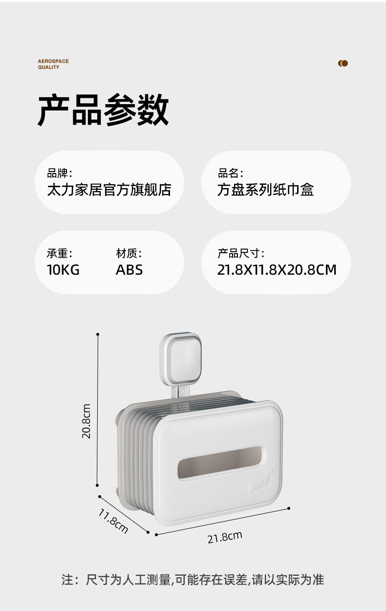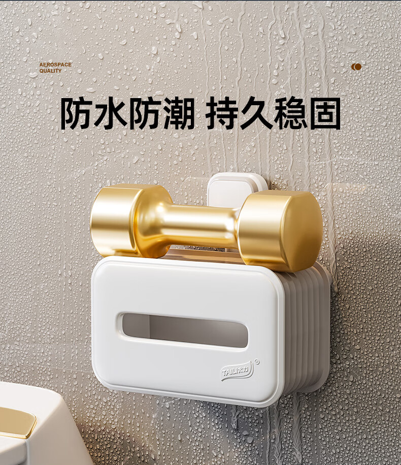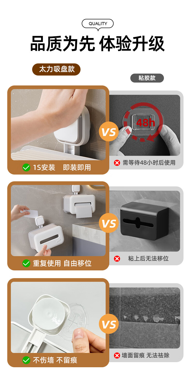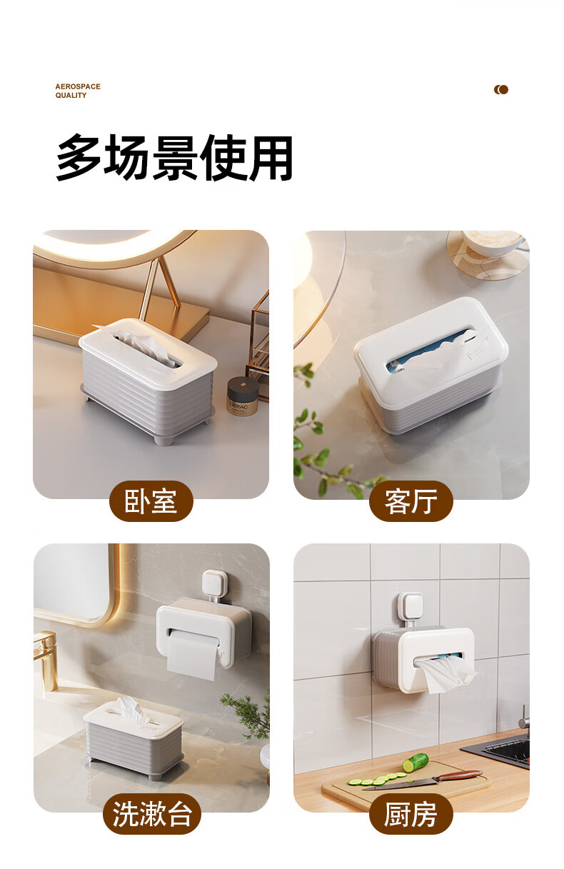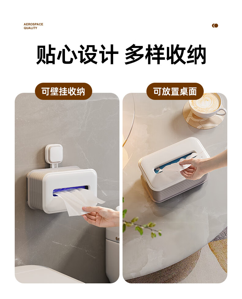 太力壁挂桌面两用纸巾盒免打孔吸盘强力免打孔浴室卫生间纸巾架 【灰白色】1个装