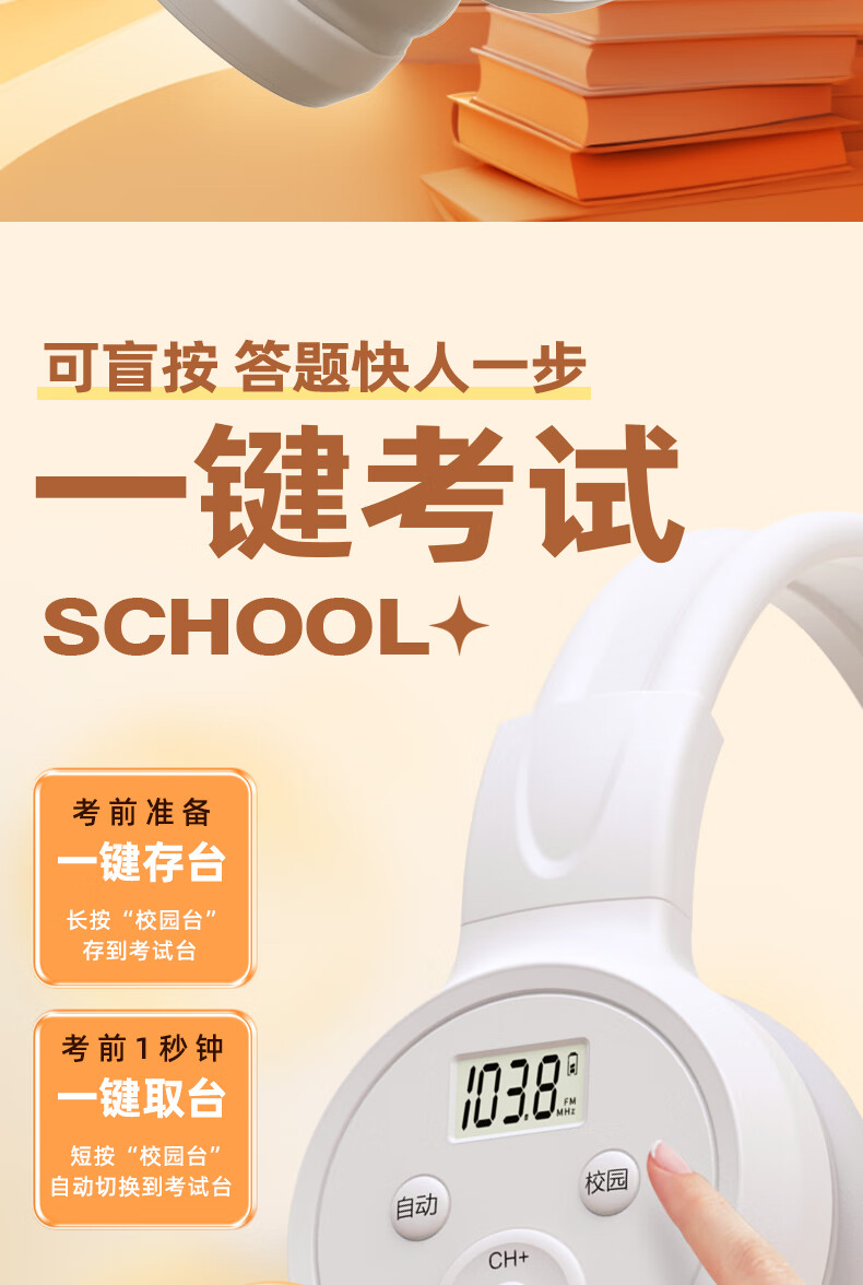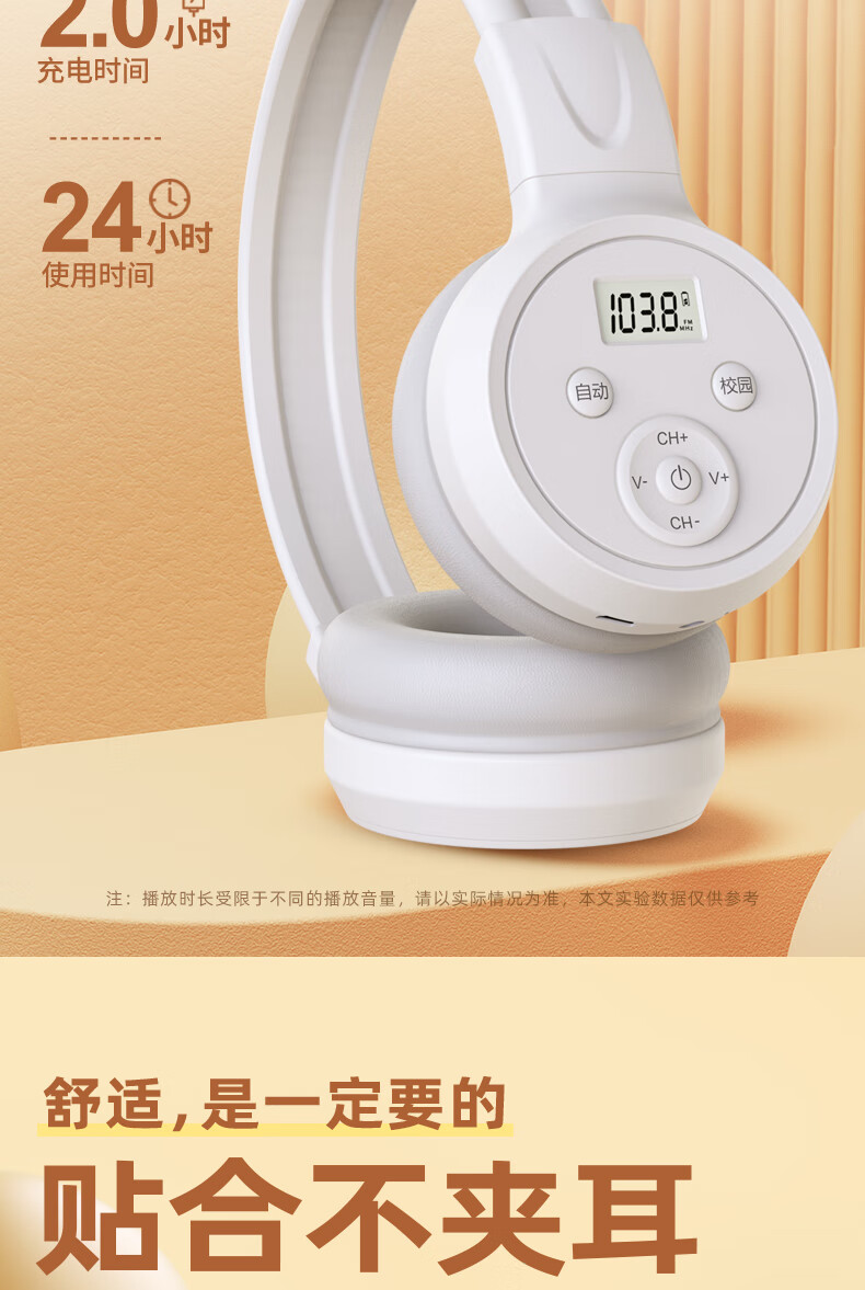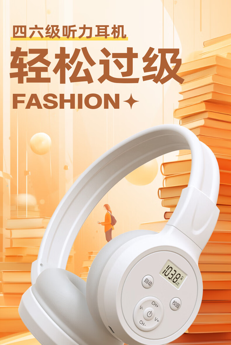 摩利奥 英语四六级听力耳机大学考试专用四级六级三级调频FM头戴式4级6级46级校园耳机专四专八大英赛 白色充电款【送充电线】 【老师推荐】FM调频/一键考试