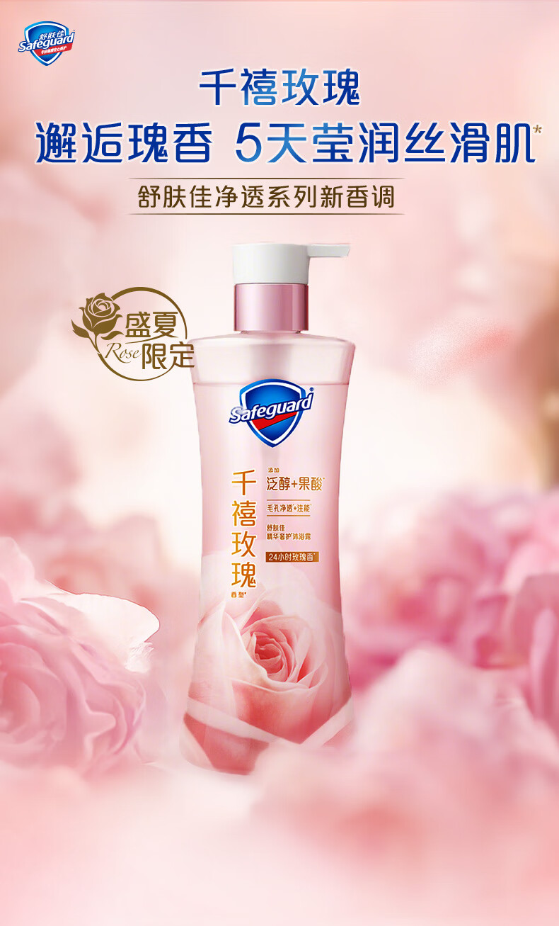 舒肤佳【王楚钦同款】全新净透沐浴露千禧玫瑰香380g【送家政两小时】
