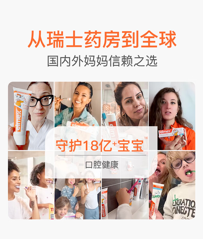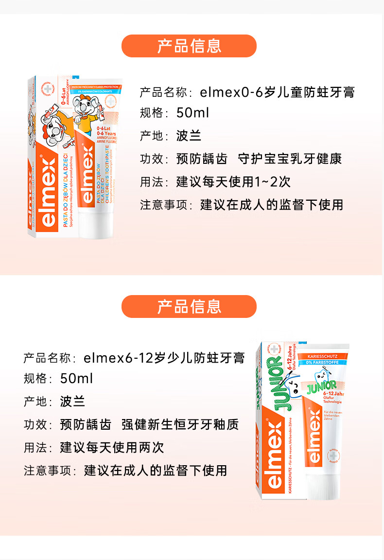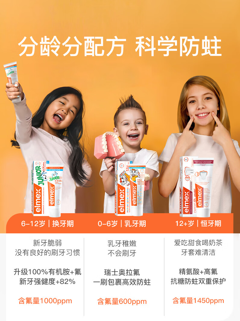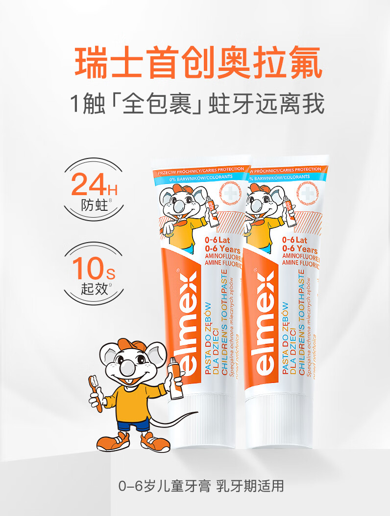ELMEX艾美适0-6-12岁儿童牙膏 含氟少儿牙膏防蛀固齿温和不刺激50ml*2 儿童牙膏50ml*2
