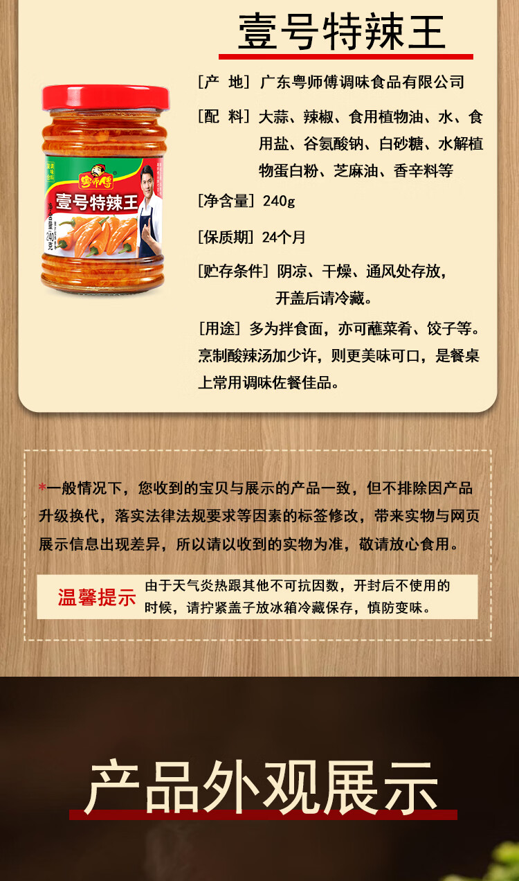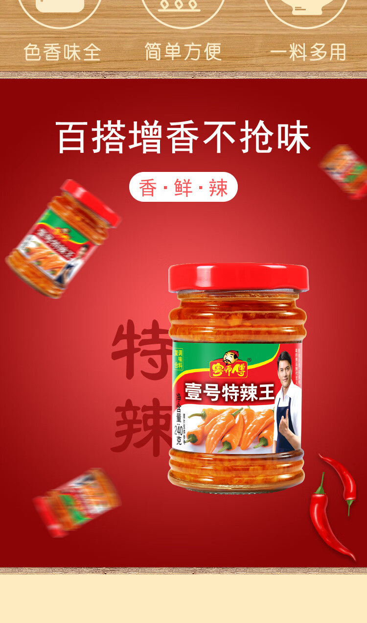 粤师傅壹号特辣王辣椒酱240g云南特辣黄辣椒下饭拌饭拌面酱火锅调料蘸料