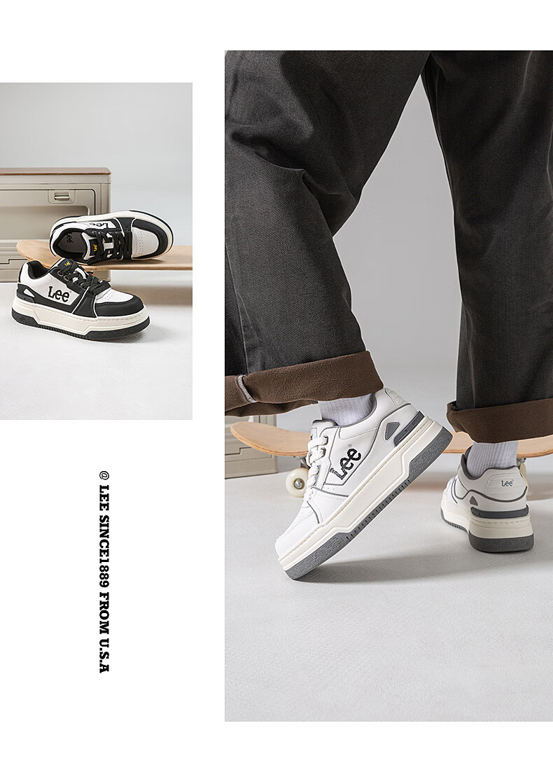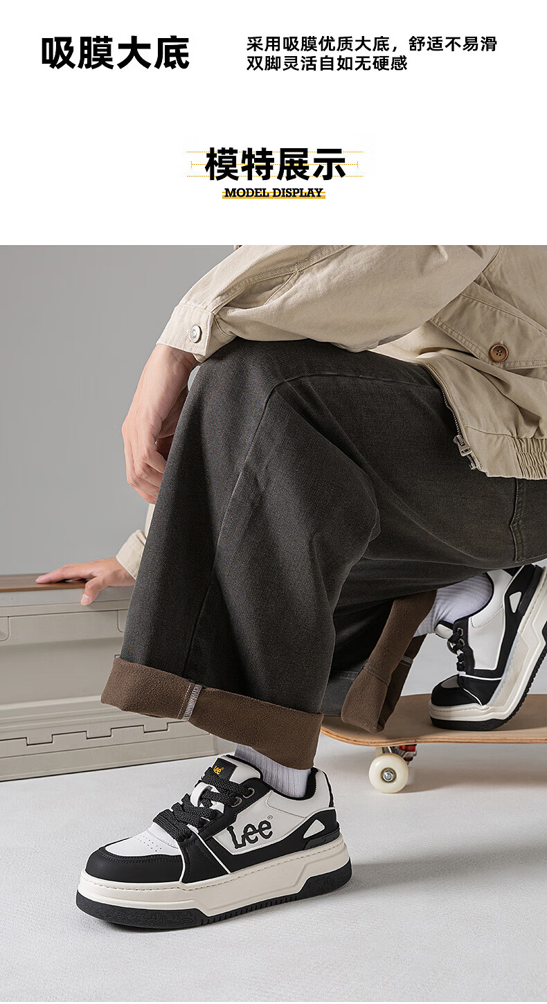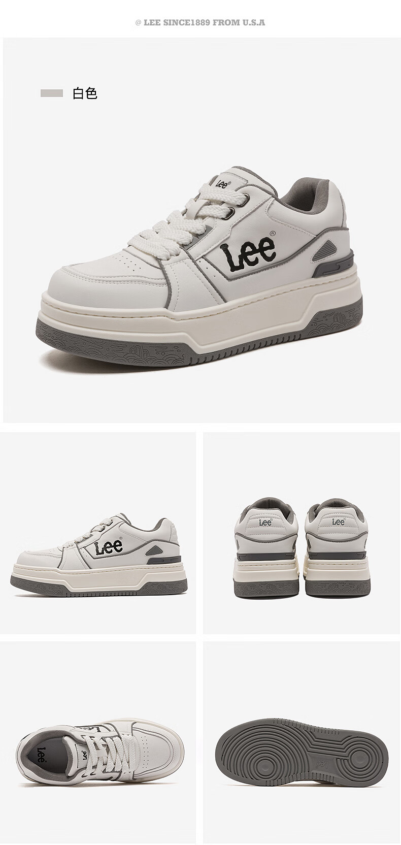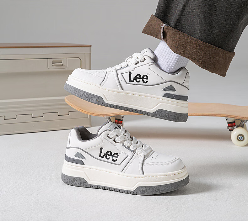 Lee男鞋秋季新款增高休闲鞋时尚经典板鞋百搭舒适鞋子低帮轻便运动鞋 白色 38 【偏大/请拍小一码】