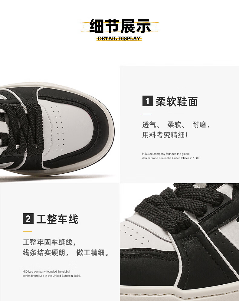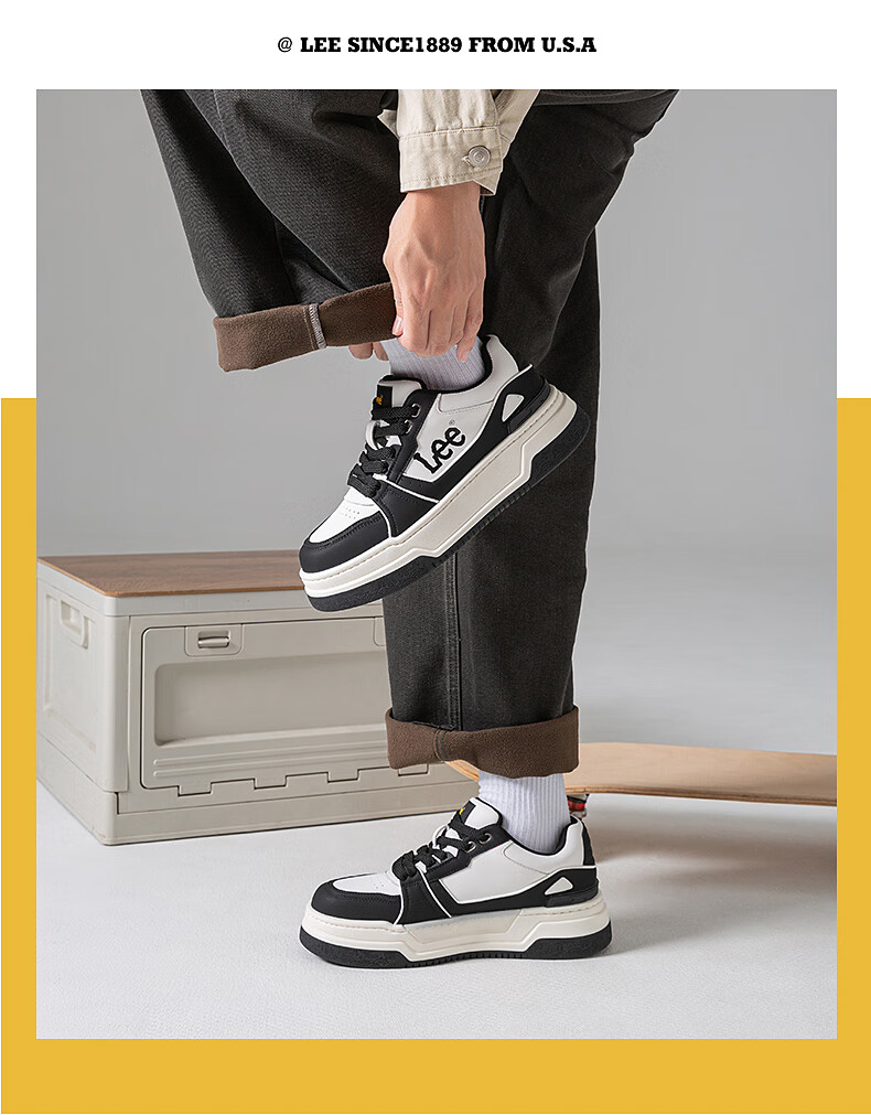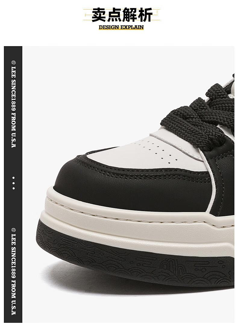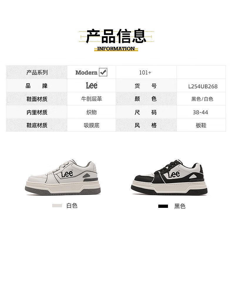 Lee男鞋秋季新款增高休闲鞋时尚经典板鞋百搭舒适鞋子低帮轻便运动鞋 白色 38 【偏大/请拍小一码】