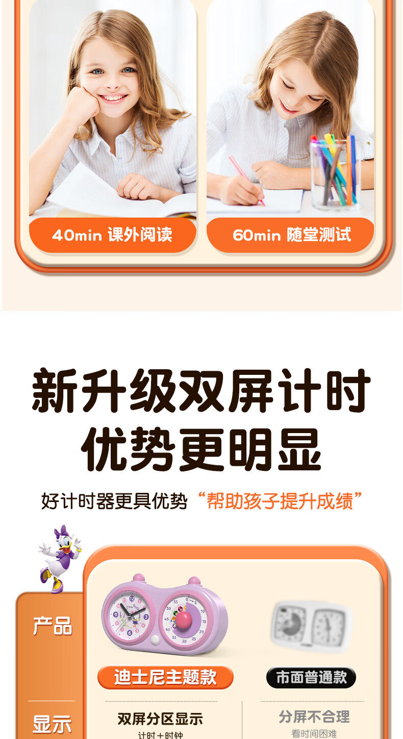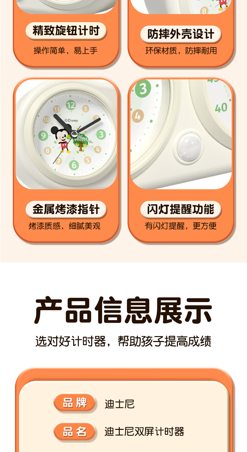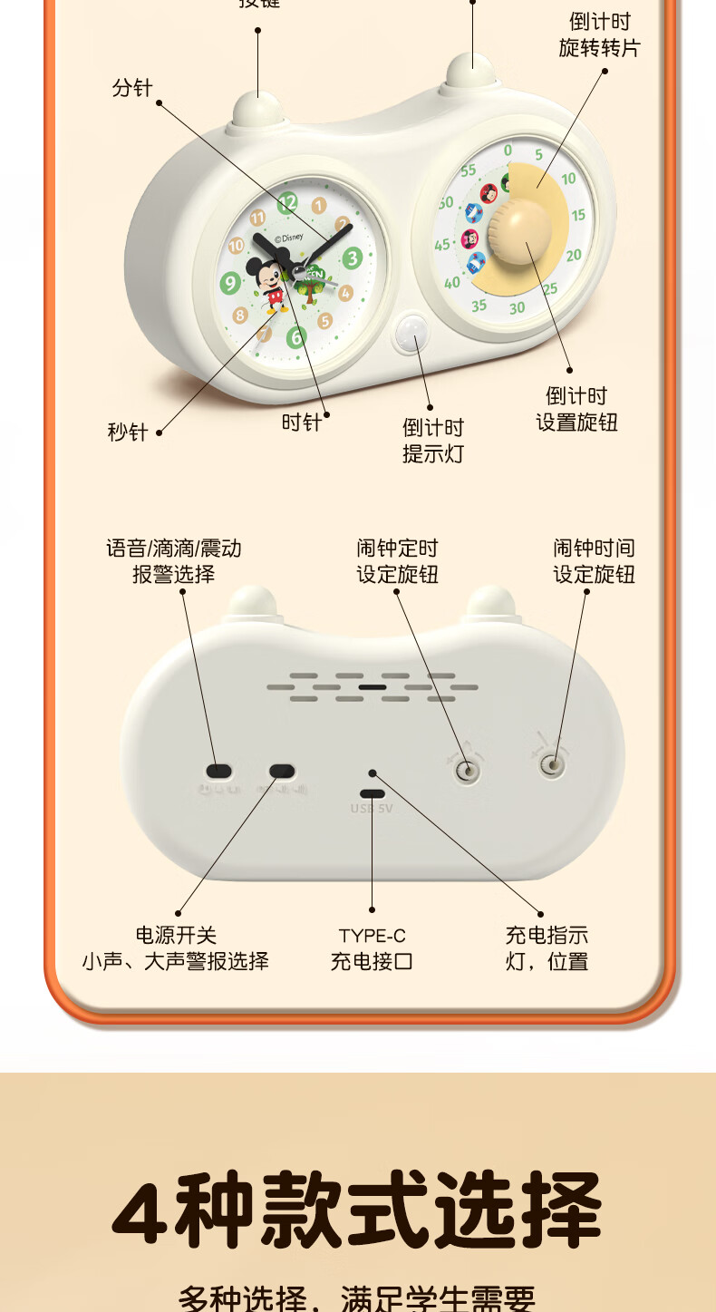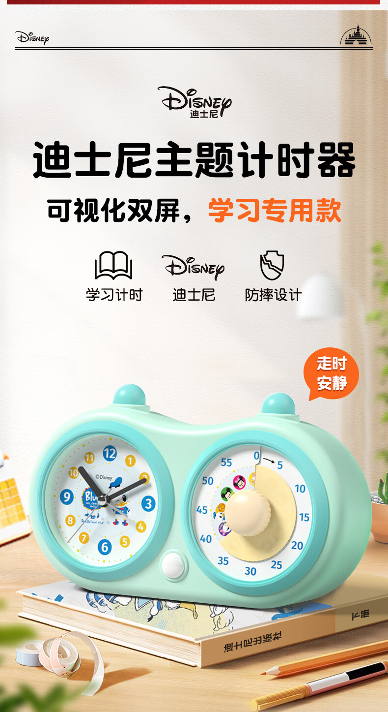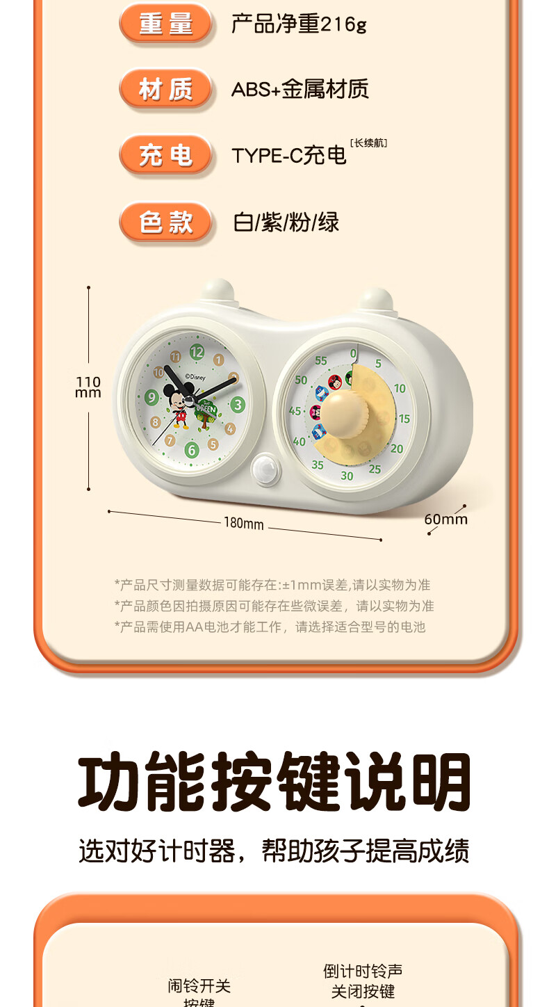 Timess迪士尼Disney联名款可视化计时器儿童学生专用闹钟厨房烹饪定时器时间管理器直播间计时器