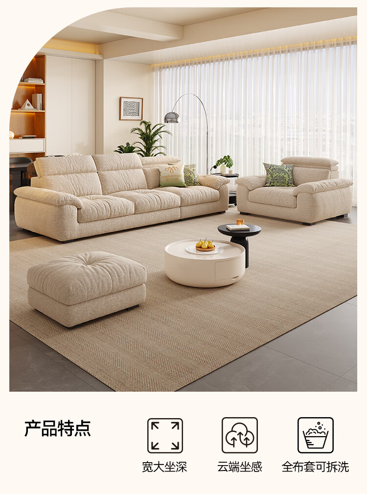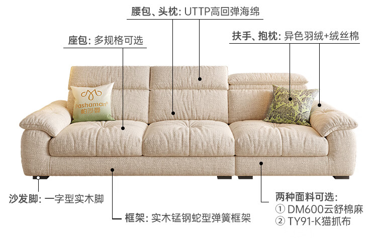 帕沙曼可拆洗布艺沙发小户型客厅新款现代简约可调节云朵沙发棉麻2911ZF 2.5米多人位【可调节头靠 全拆洗设计】 豪华版 [猫抓布TY91]紫罗兰+记忆棉+海绵