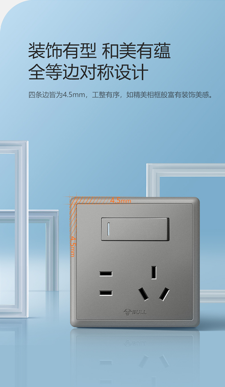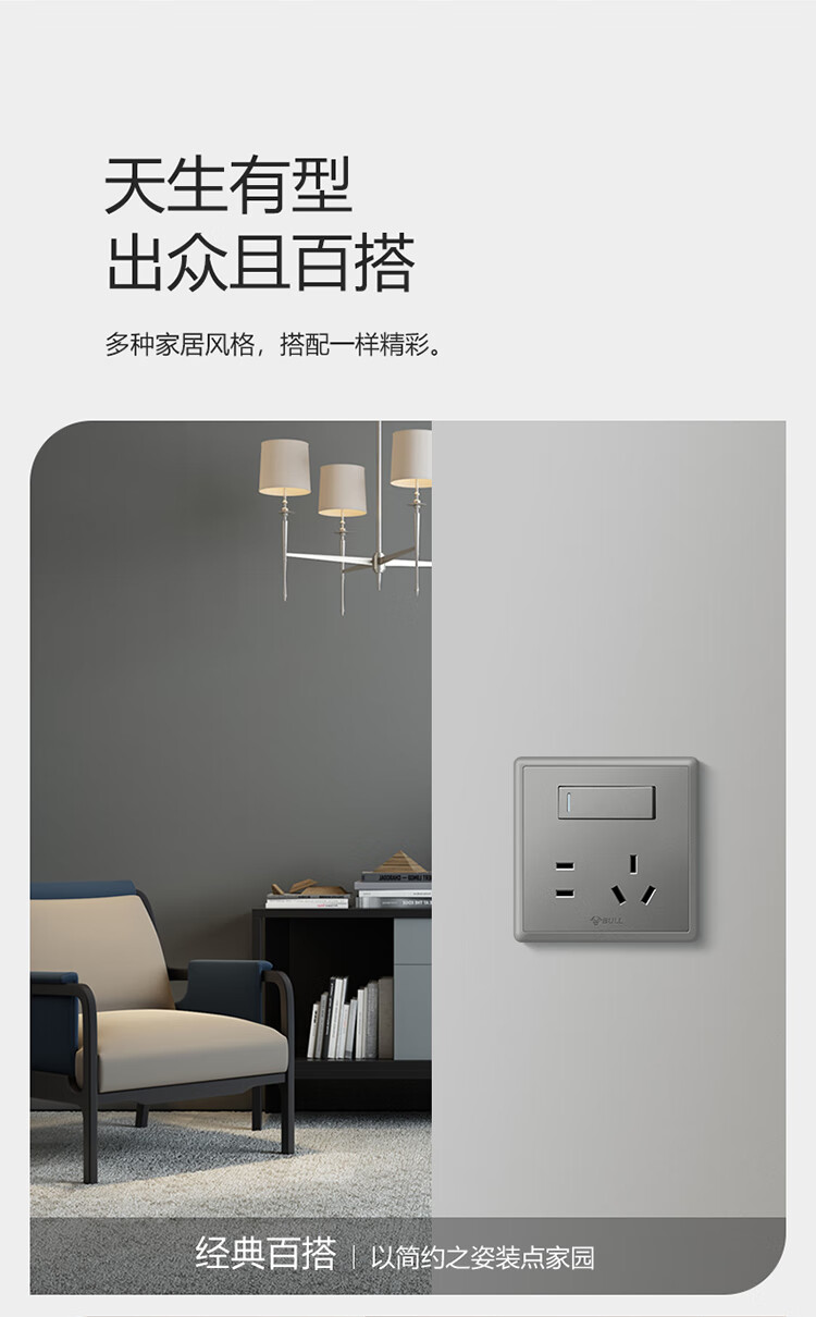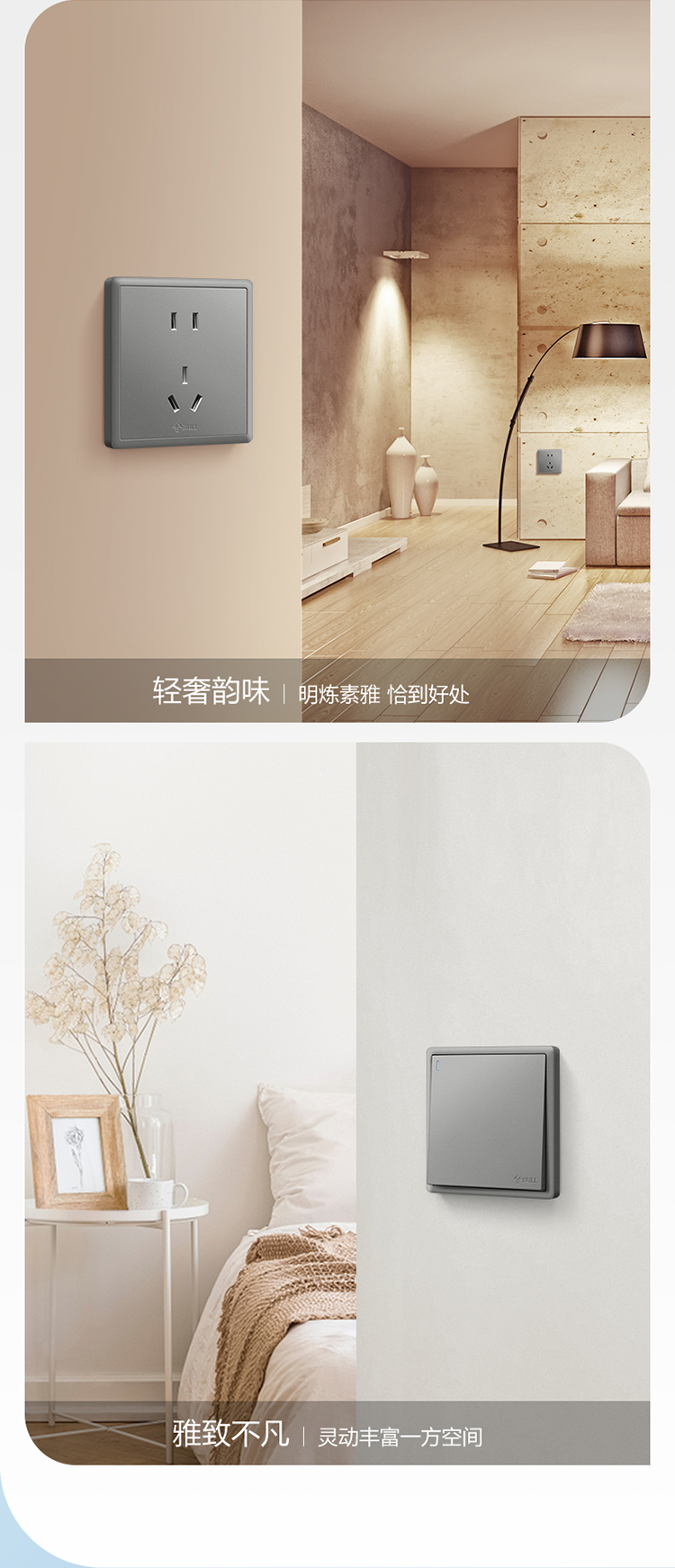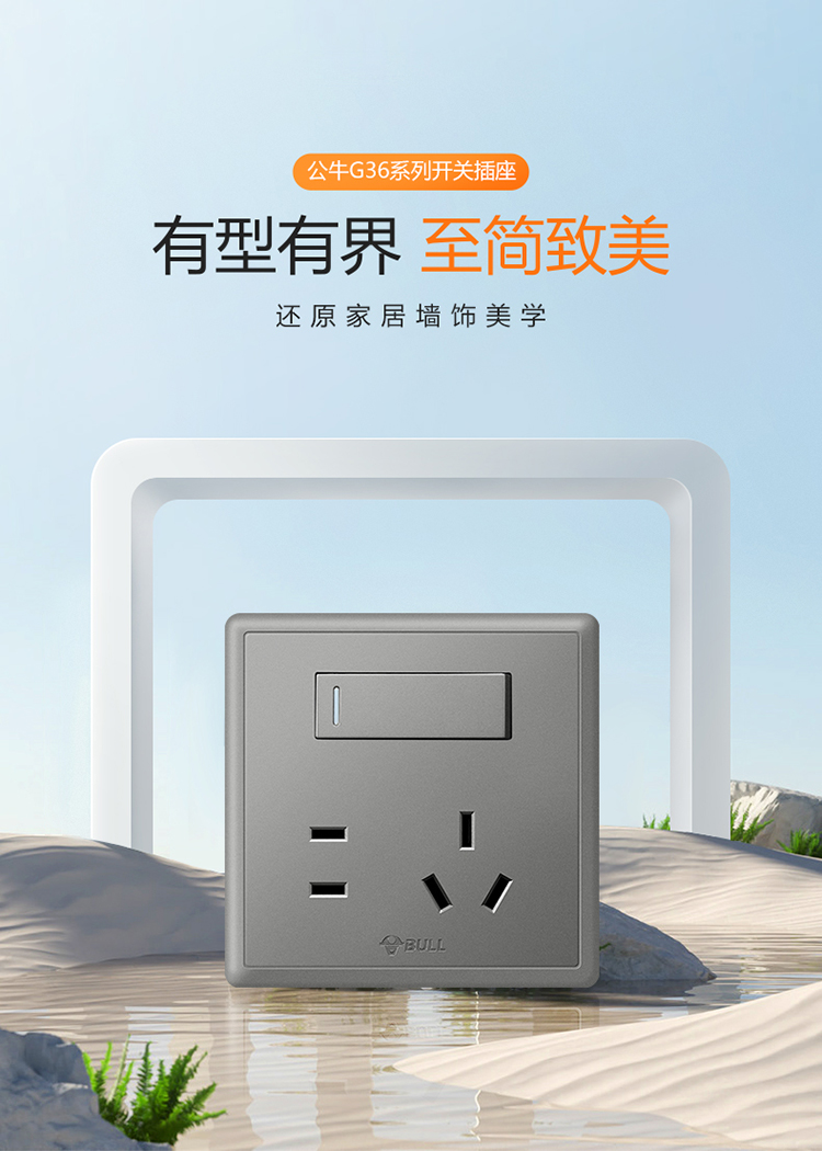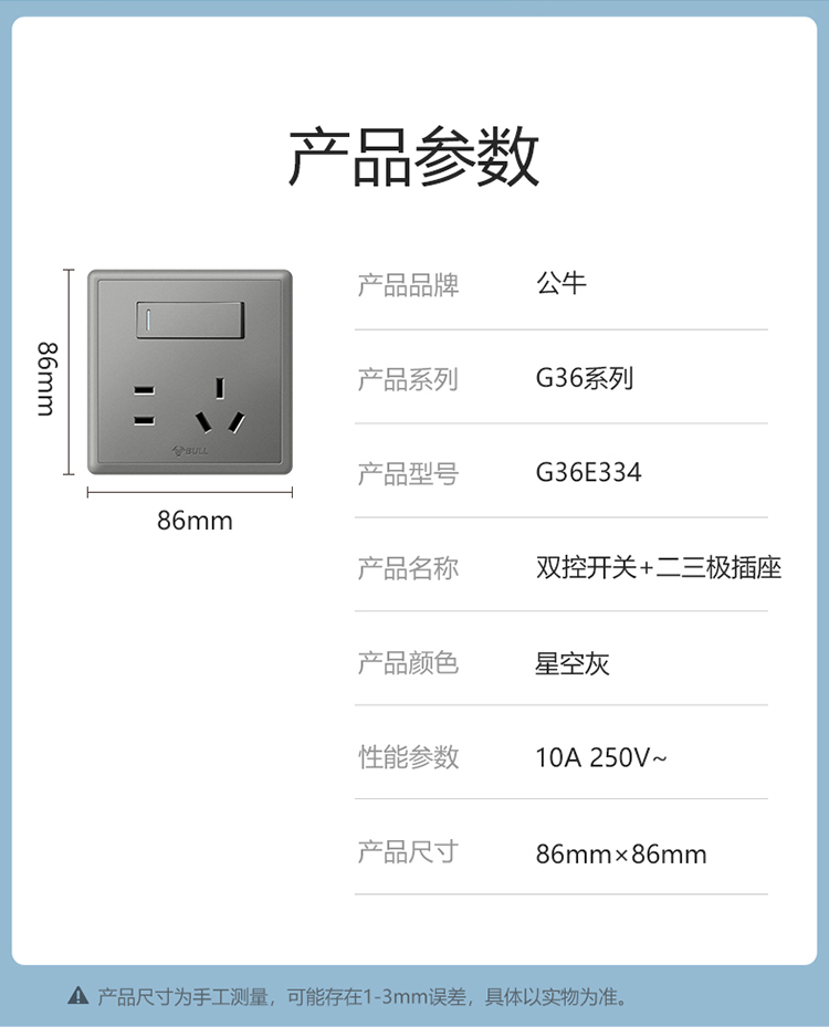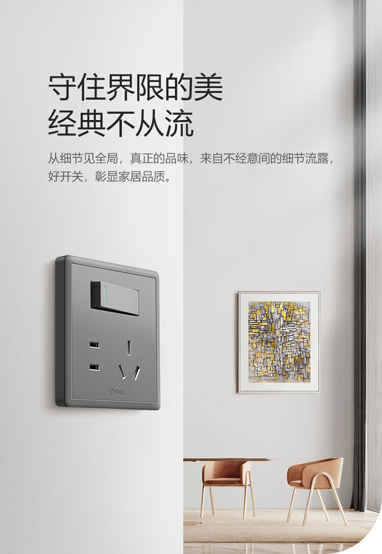 公牛(BULL)开关插座G36系列一开双控五孔带开关插座G36E334星空灰暗装
